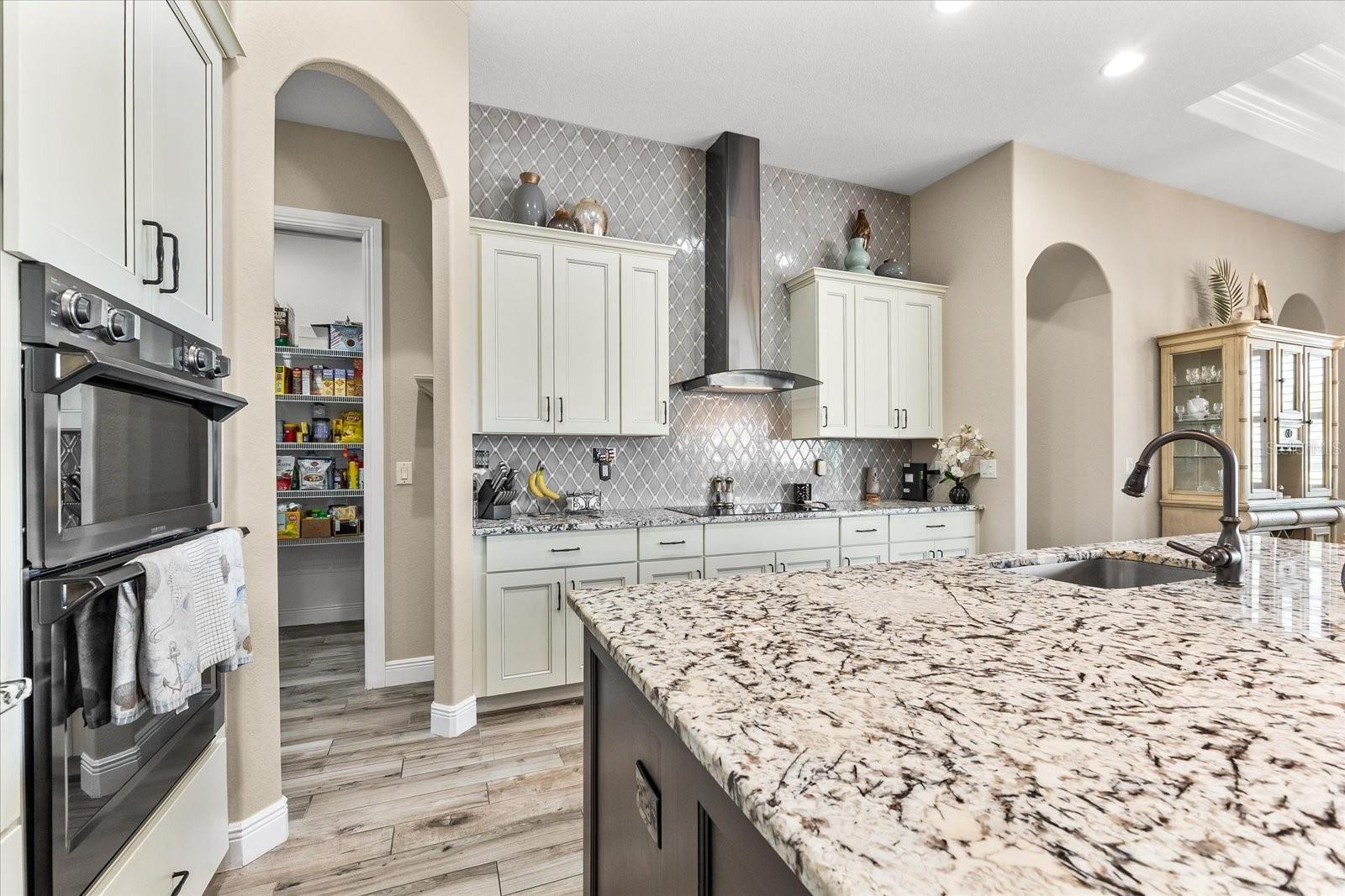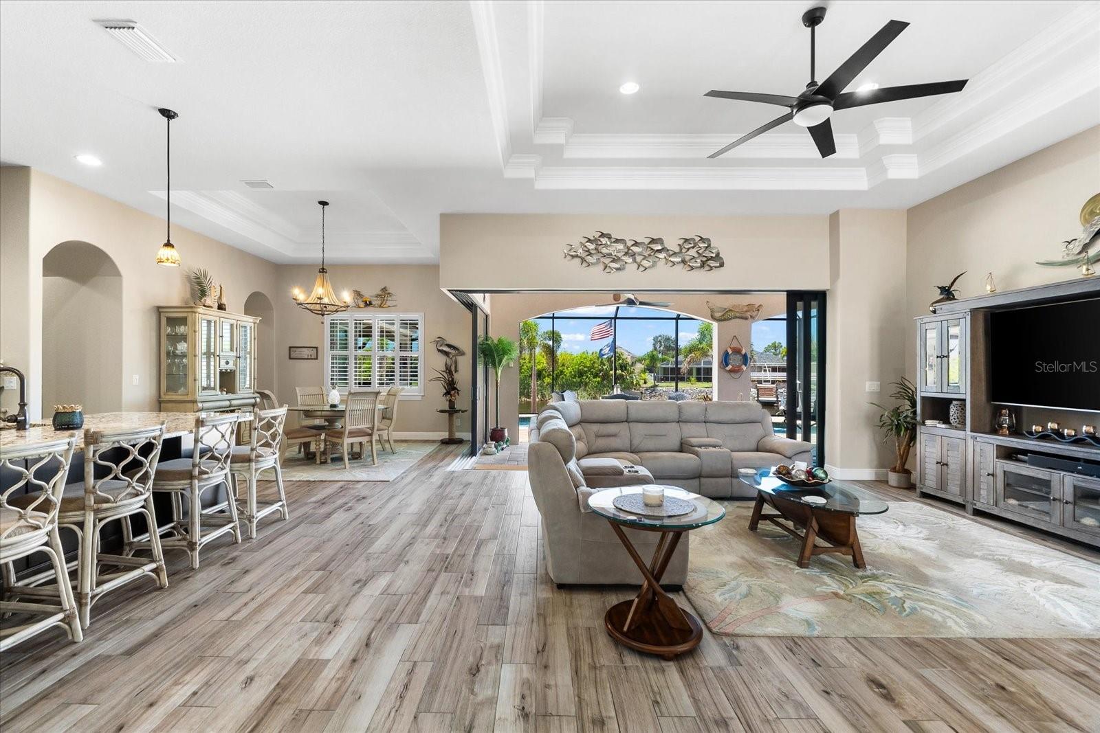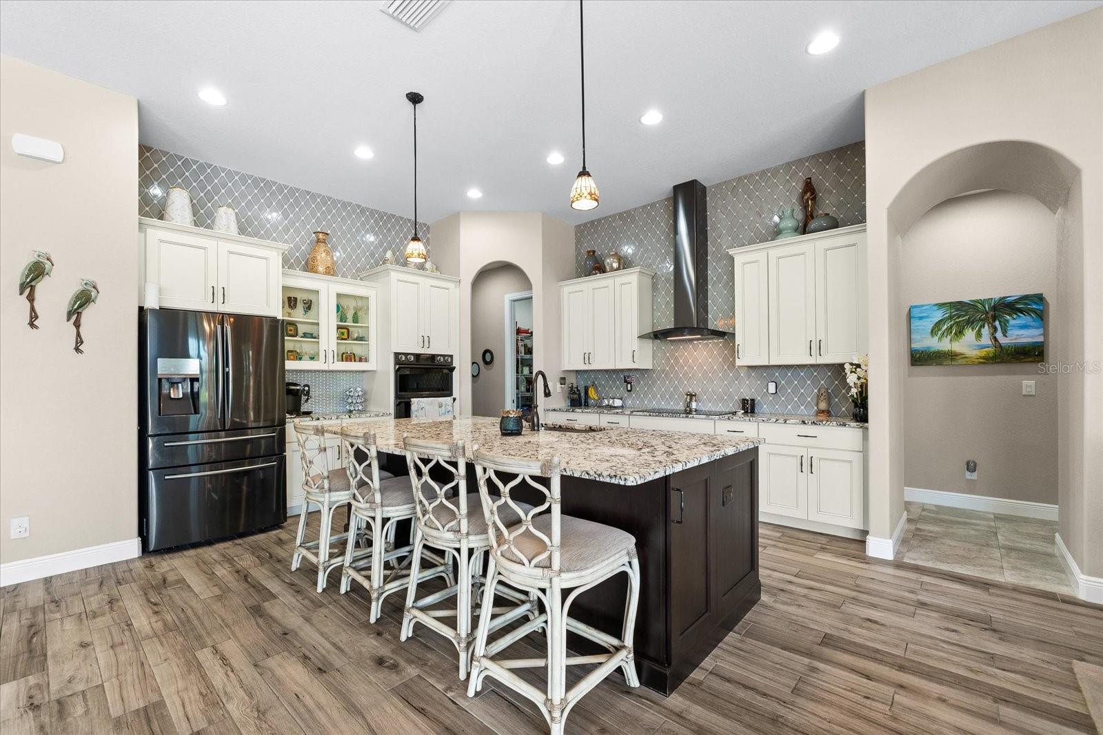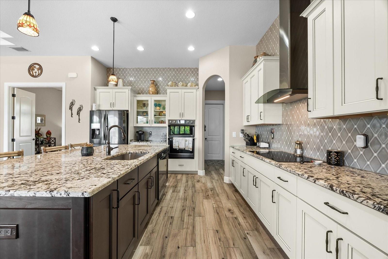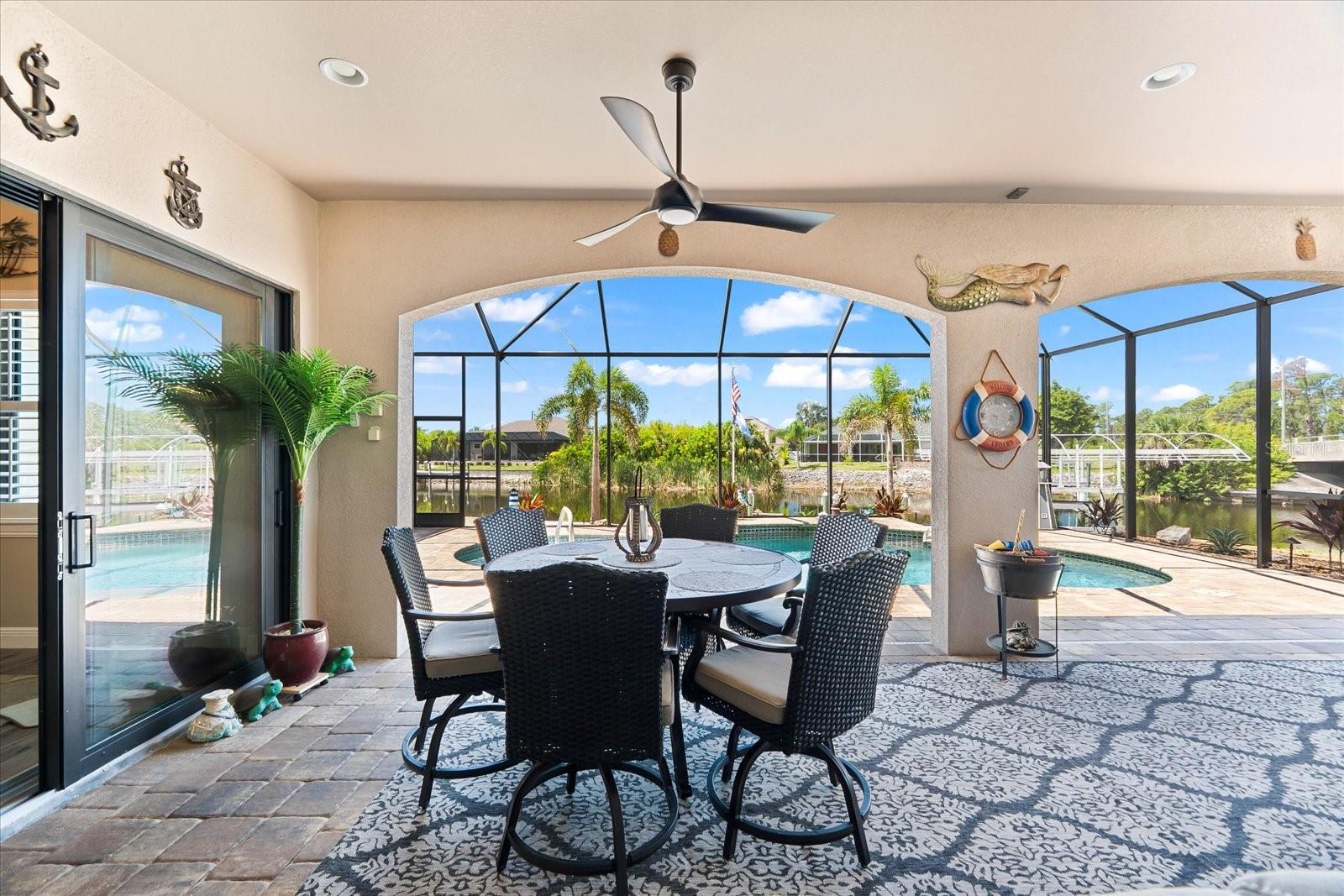 Experience the best of Florida living in this custom-built estate home, featuring 4 bedrooms, 3.5 baths, and a den, beautifully positioned on 1.25 acres along the Zephyr Waterway with 125 feet of sea-walled waterfront and ideal southern exposure. Built in 2018, this 2,681 sq ft estate offers the perfect blend of luxury, privacy, and easy access to both boating and nearby golf courses in the highly desirable South Gulf Cove community. Enjoy stunning views and vibrant boat traffic from your backyard on one of the area’s most sought-after wide canals. Inside, the home boasts a thoughtfully designed open floor plan with a double tray volume ceiling, gorgeous plank flooring throughout, and expansive 0° sliders that flood the main living areas with natural light, offering seamless indoor-outdoor living. A den with French doors provides an ideal space for a home office or cozy retreat. The heart of the home is the gourmet kitchen, designed to impress with upgraded granite countertops, a dramatic 10-foot island, staggered cabinetry, and decorative backsplash tile that extends to the ceiling. A spacious walk-in pantry and a state-of-the-art 2023 induction stove complete this high-end culinary space, perfect for both everyday living and entertaining. The expansive primary suite serves as a serene retreat, featuring a decorative ceiling, ample space for a seating area, and large windows that allow natural light to fill the room. The spa-like ensuite bath offers a luxurious walk-through shower with dual showerheads, double vanities, and a deep soaking tub—creating the perfect blend of comfort, elegance, and functionality. For added privacy, the guest bedrooms are located on the opposite side of the home, each with convenient access to their own bathrooms, making them ideal for family or visitors. Outdoor living is a true highlight of this property. Relax in the heated pool, surrounded by mature landscaping and protected by roll-down shutters on the lanai. A separate bar area with a refrigerator, sink, and icemaker makes entertaining a breeze. The full irrigation system keeps the expansive yard green year-round. Waterfront amenities include a 10,000 lb covered boat lift, water and electric at the dock, and a paver pad running the full 125 feet of sea-walled waterfront, providing a clean, polished look and convenient access along the shoreline. Additional upgrades include a new roof (2023), impact windows and doors, Bahama shutters, electric remote-controlled room-darkening shades, and a whole-house generator plug for added peace of mind. The three-car garage boasts a durable epoxy floor, and two outdoor sheds provide convenient extra storage. Don’t miss this rare opportunity—schedule your private showing today!