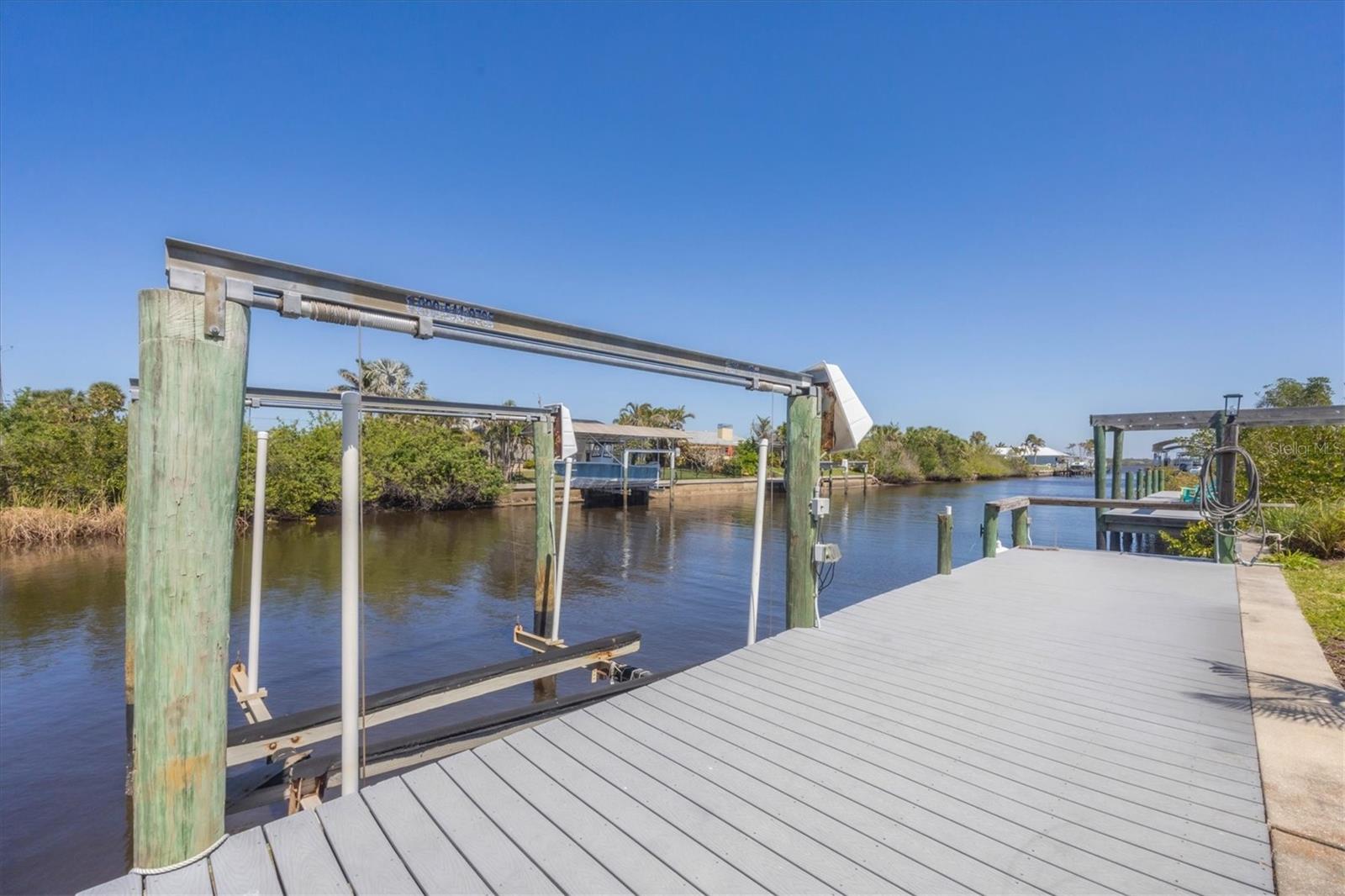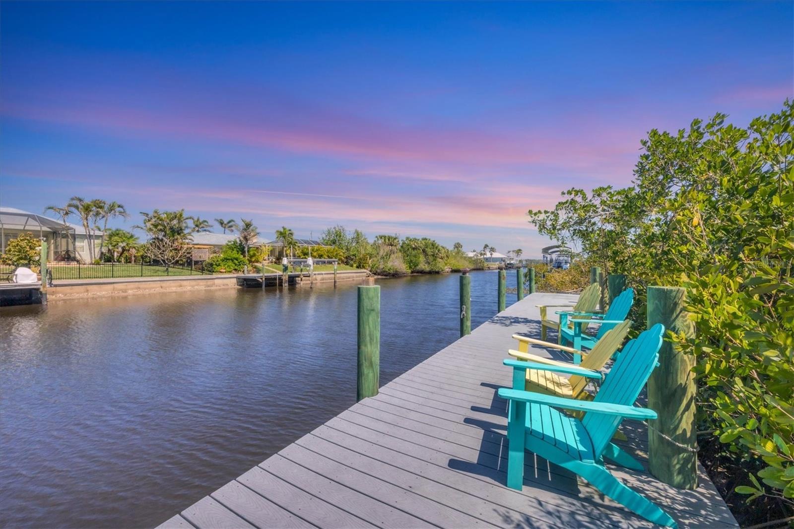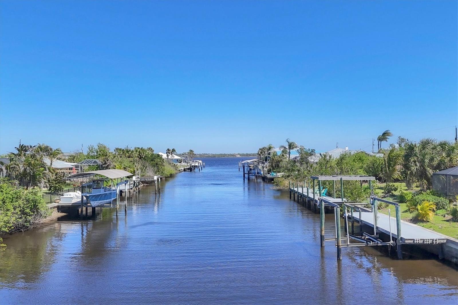 Welcome to coastal elegance at its finest-a beautiful waterfront estate with 160 feet of direct saltwater frontage and unmatched access to Charlotte Harbor, the Gulf of Mexico and exclusive barrier islands. This impeccably maintained residence delivers a seamless blend of refined indoor living & resort-style outdoor amenities. Situated on a 1/2 acre tropical lot, this home is a boater's haven with two private docks, running water, electric and a 6000 lb boat lift. All designed for your sportfishing pursuits. The framework for a tiki cabana awaits your vision and offers even more potential for outdoor entertaining. The recently resurfaced pebble tech solar heated pool is encircled by an expansive paver terrace, ideal for sun-soaked days and starlit evenings. A covered outdoor lanai extends the living space with its outdoor stainless steel kitchen. Inside the home are 3 oversized bedrooms, 2 renovated bathrooms and a kitchen featuring quartz countertops, stainless-steel appliances, LED lighting and custom finishes throughout. Additional upgrades include: 2023 architectural roof, Solar pool heating system (2023), impact-resistant windows, whole-home surge protection, solar tubes for natural light, and a freshly painted exterior. There is an oversized 2-car garage that includes room for a work area. Lush tropical landscaping that includes native flora, coconut palms, Meyers lemon, kumquat, loquat, surinam cherry, & persian lime, all create a botanical retreat. Most of the furniture is included so this can be move-in-ready. Whether you seek a luxury vacation home, a full-time waterfront residence or an investment lifestyle, this home represents the pinnacle of Coastal Florida living.