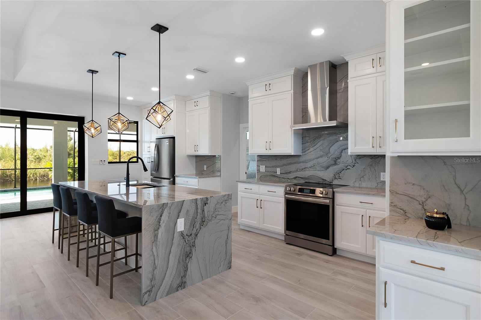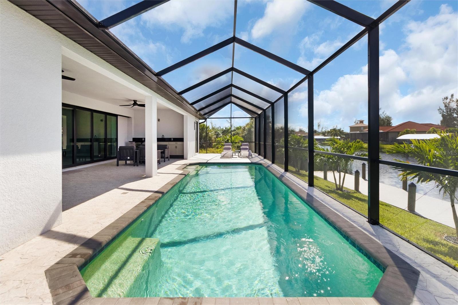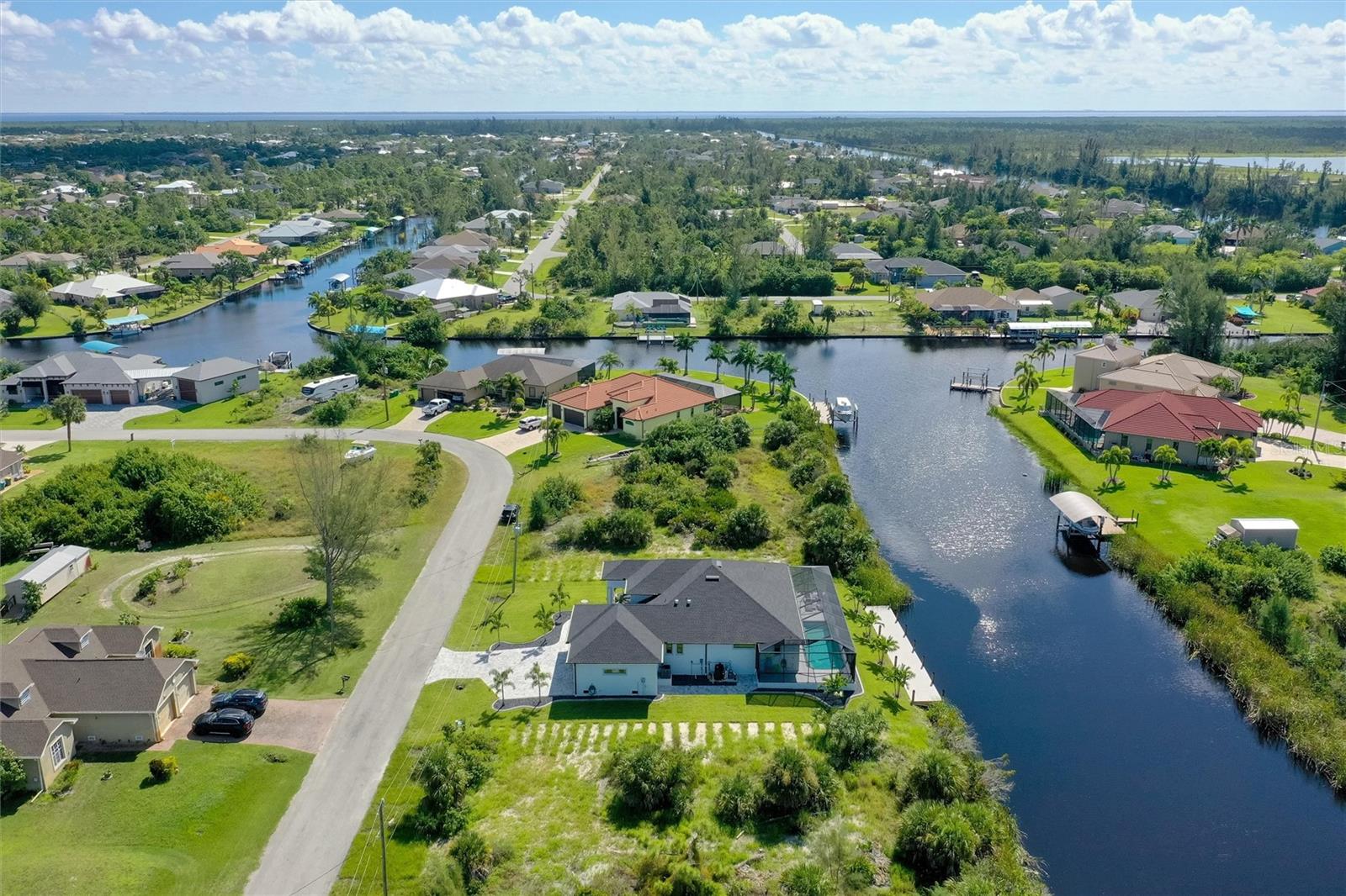 ENJOY "THE FLORIDA LIFESTYLE' in this Beautiful FURNISHED CUSTOM BUILT Pool Home located in the WATERFRONT BOATING COMMUNITY of SOUTH GULF COVE. This LIKE NEW CONSTRUCTION Home is Elegantly appointed and enveloped with a COASTAL FLAIR!!!and is on a SAILBOAT LOT with a SOUTHERN exposure and a BOATERS DREAM!!! Features include 3 BEDROOMS, PLUS BONUS OFFICE/DEN and 2 1/2 BATHS. This home is for the distinguished buyer and Boasts a spacious OPEN CONCEPT design. Kitchen is tastefully appointed with gorgeous QUARTZITE countertops, Beautiful Back Splash, LARGE ISLAND with BREAKFAST BAR, sink, storage, wine cooler, dishwasher and beautiful PENDANT lighting, coastal style wood cabinets, soft close drawers and STAINLESS STEEL appliances. Beautiful PLANK TILE flooring throughout. Living room with DECORATIVE FIREPLACE and Sliders across the back lead to pool area. Split Bedrooms, Primary Suite has a Large Walk-in Closet, Primary Bath has Dual Vanities and Walk Through Tiled shower. Elegant Light Fixtures and Ceiling Fans. Nice laundry room with Stack washer/dryer, and cabinetry. Enjoy outdoor Living on spacious Lanai with Decorative Tile, HEATED POOL, Outdoor Kitchen with refrig. and wine Cooler. Nicely landscaped, Irrigation system is from canal, 8X60' Composite DOCK, 3 CAR GARAGE, Covered front porch, Paver driveway.....AND SO MUCH MORE!!! SOUTH GULF COVE is only minutes away from Beautiful Southwest FLORIDA BEACHES in BOCA GRANDE and MANASOTA KEY with BOATING access to the GULF of MEXICO and surrounding ISLANDS. Community offers several nice parks, BOAT RAMP, Marinas and a CLUBHOUSE and YACHT CLUB you can join!!! With several GOLF COURSES, WORLD CLASS FISHING, Shopping and GREAT Restaurants only minutes away !!! EXPERIENCE THE FLORIDA LIFESTYLE!!!