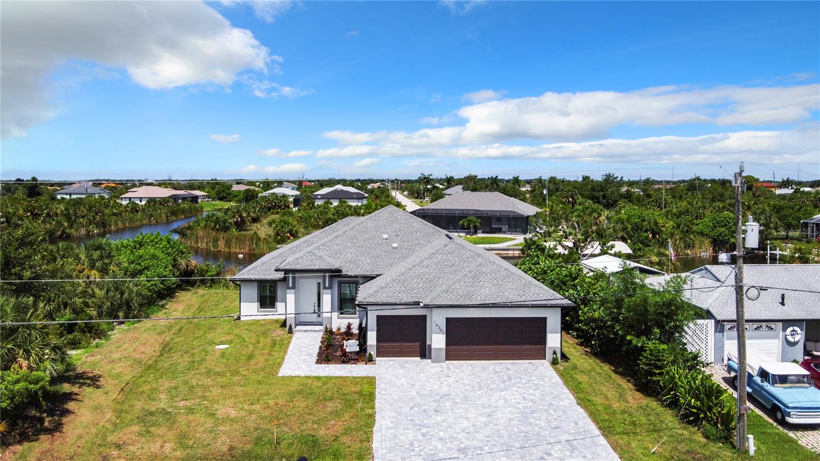 One or more photo(s) has been virtually staged. NEW NEVER BEFORE OCCUPIEDOne or more photo(s) has been virtually staged. Just completed. Never occupied. No bridges to the ocean. SAILBOAT COUNTRY. CONVENIENT TO PUBLIX and local shopping. Beaches and Boca Grande nearby. Adjacent lot listed for $280,000, land only. The elevation certificate shows the main floor at 10.0 feet in an 8.5AE zone. Impact windows and doors of course. Nicely finished and awaiting an owner.LIST OF UPGRADES.New dockSalt water heated pool with spaAll impact rated windows with insulated glassAll impact rated French doors to lanai with insulated glass and mini blind insertsPlantation shutters on all windowsHuge 24x48 porcelain tile throughoutUrethane flake finish on garage floorWaterfall granite on kitchen islandGlass mosaic finish on backsplash and islandLED lights over and under counter in kitchen and islandPaver driveway and pool deck