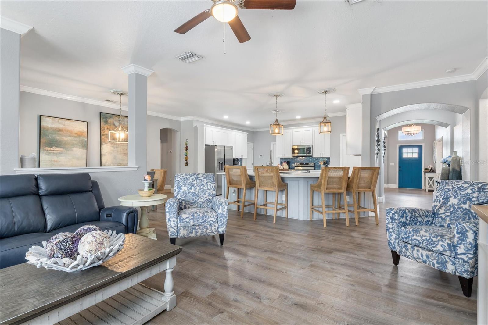 Short Sale. SHORT SALE! BEST PRICE!! Looking for your Florida dream home? This spacious, well-maintained 3 bed, 3 bath PLUS office PLUS flexspace home with 2,522 sq ft under air offers comfort, style, and the laid-back coastal lifestyle Florida is known for. Set on a private 10,000 sq ft lot in the popular waterfront community of South Gulf Cove, this home combines quality upgrades with the perfect location for enjoying year-round sunshine. Built in 2007, the home features exterior stacked stone accents and a charming covered front porch to add to the curb appeal. Inside, you'll love the luxury vinyl plank flooring throughout and a flexible layout that includes a separate office/den with French glass doors, an additional flex space and a formal dining room – ideal for hosting guests or family gatherings. The beautifully updated kitchen is a true standout with white shaker cabinets, quartz countertops, stainless steel appliances, subway tile backsplash, a large center island with contrasting cabinetry, recessed lighting, and designer pendant lights. The open-concept design flows into a large family room with a shiplap accent wall and casual dining space, perfect for everyday living. New impact glass sliders lead out to a screened lanai with cedar plank flooring, offering a peaceful spot to enjoy your morning coffee or Florida evenings overlooking the pool. The split floor plan gives privacy to the spacious primary suite, which features its own shiplap detail and a stunning en-suite bath with a huge tiled walk-in shower with dual rain heads, seamless glass doors, and extra tower cabinetry. Bedrooms 2 and 3 are located on the opposite side of the home and share a unique flex space – ideal as a playroom, teen lounge, homework area, or in-law suite. All bathrooms have been tastefully updated with floor-to-ceiling tile and granite or quartz countertops. The fully fenced backyard is a private oasis with a gorgeous inground pool and paver deck added in 2023 – perfect for cooling off on hot days or entertaining friends and family. Recent upgrades include a new roof (2022) and new A/C (2021), giving peace of mind and energy efficiency. Located on a quiet, low-traffic circular street across from waterfront homes, this home offers a tranquil setting without sacrificing convenience. South Gulf Cove is a sought-after Gulf-access community with an optional HOA and a laid-back, active Florida lifestyle. Residents enjoy a private boat ramp, multiple parks, walking paths, and a community center with events and social activities. Boating, fishing, kayaking, and enjoying the Gulf beaches are all just minutes away. In this location, you are close to everything - beaches, Boca Grande, Wellen Park, Spring Training stadiums (Braves and Rays), golf, boating, trails, shopping and restaurants. Whether you're relocating, retiring, or looking for your own piece of paradise – this home checks all the boxes. Don’t miss this opportunity to enjoy Florida living at its finest!