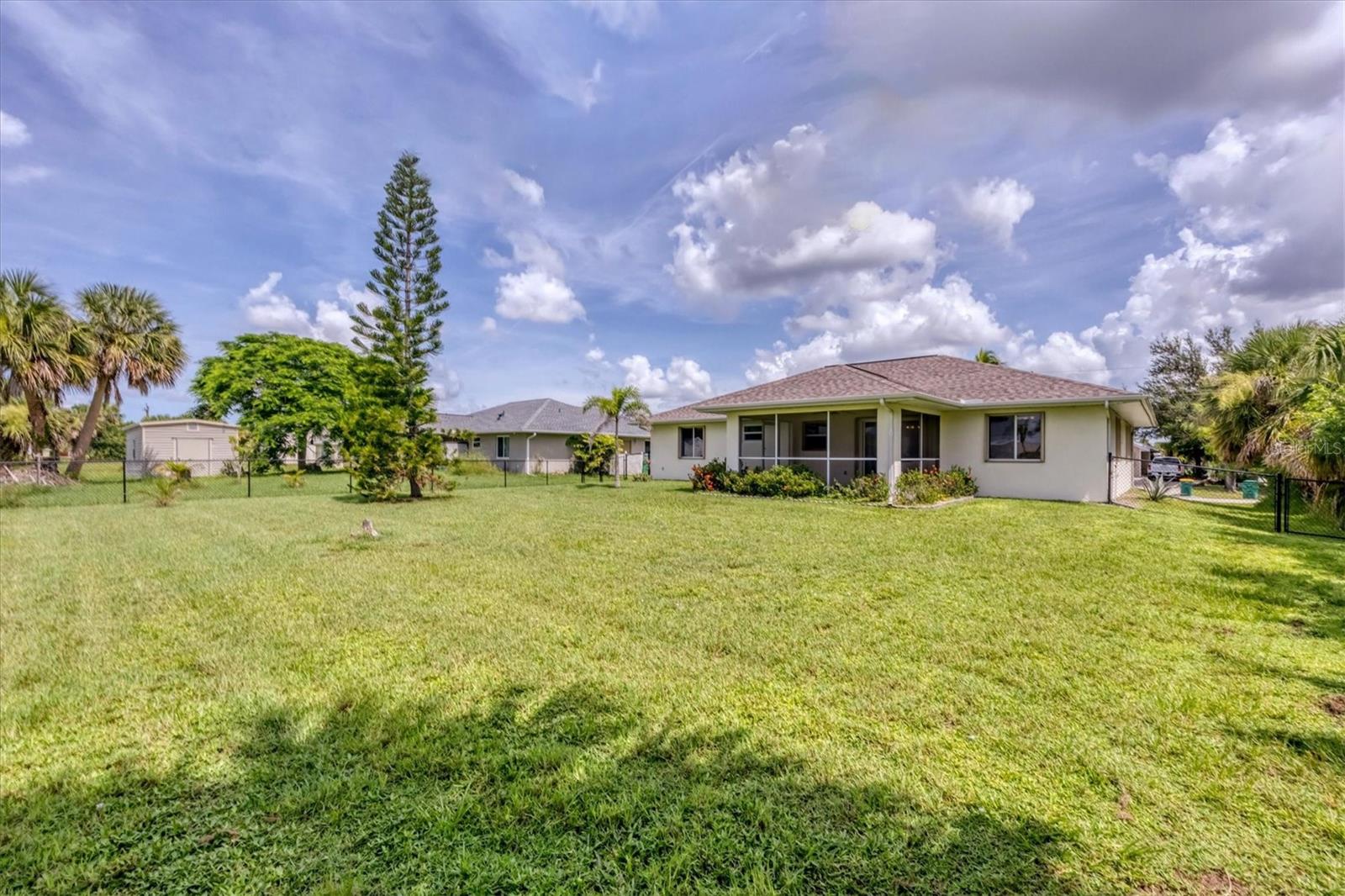 Welcome to this turn-key furnished beautifully maintained 3-bedroom, 2-bathroom home located in a quiet neighborhood of Port Charlotte that offers privacy without sacrificing easy access to local resources and nearby conveniences. This home boasts a 2022 Roof, a 2020 Water Heater and for additional Hurricane protection Accordion Storm Shutters & Impact-Glass Windows. Offering a light and open floor plan with neutral tile flooring throughout, this move-in ready home features a thoughtful layout perfect for comfortable living and entertaining. The well-appointed kitchen includes ample cabinetry, generous counter space, and a pass-through to the dining area, ideal for daily mealtime or hosting guests. A dedicated indoor laundry room adds convenience to daily life. A split floorplan offers privacy for residents and guests, while each of the three bedrooms offers plenty of natural light and closet space. The primary suite serves as a peaceful retreat with an en-suite bathroom for additional comfort and relaxation. The additional bedrooms are perfect for guests, a home office, or multi-purpose use. Step outside to an expansive and fully fenced backyard, offering the perfect space for pets, or outdoor entertaining. With room for a future pool or garden, this private outdoor space is a true highlight and invites you to add your own personal touch. Convenient to Gulf beaches, world-class golf courses, fishing and boating access, and an array of shopping, dining, and entertainment options, this home offers the best of Florida living in an ideal location. Whether you're a first-time buyer, part-time resident, or investor, this charming property offers comfort, value, and proximity to everything Port Charlotte and the surrounding areas has to offer. If the idea of a peaceful Florida retreat with easy access to a day’s entertainment is appealing to you, call today and schedule your private tour!