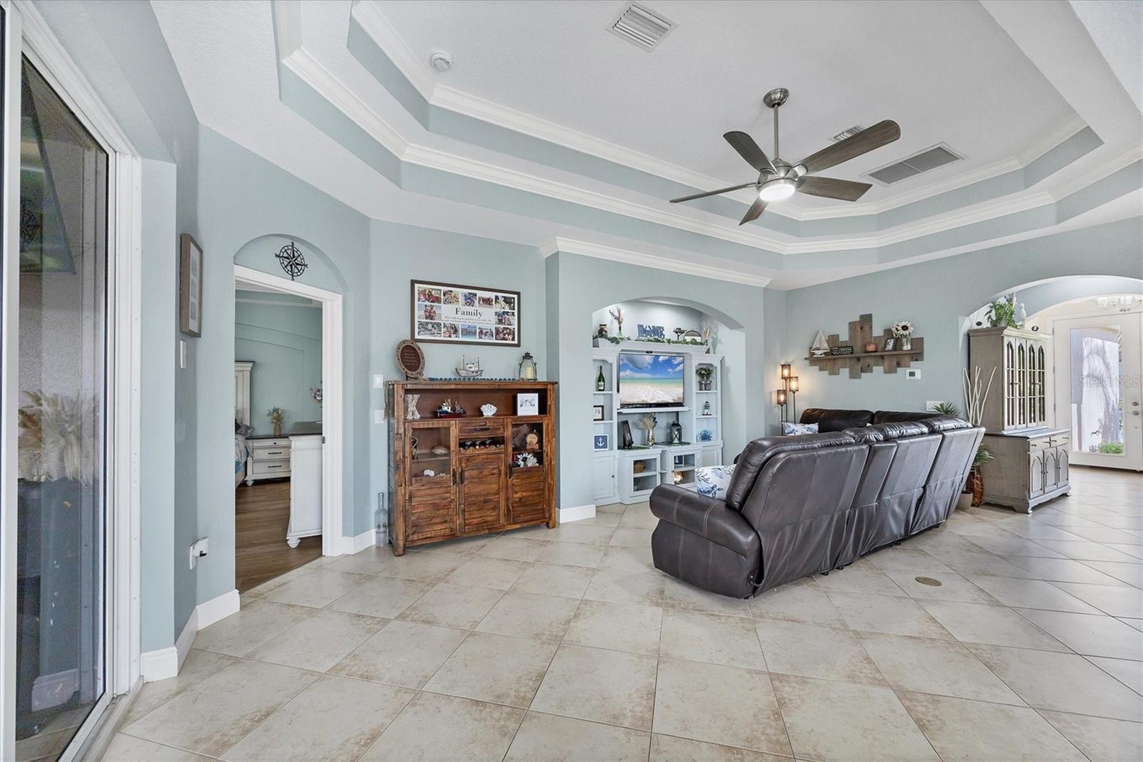 BACK ON THE MARKET DUE TO BUYERS' HOME SALE CONTINGENCY FALLING THROUGH-THEIR LOSS IS YOUR OPPORTUNITY! Welcome to Villa Milano – A Peaceful Retreat in a Prime Location! Tucked inside the charming gated, pet-friendly community of Villa Milano, this beautifully maintained custom-built home blends comfort, character, and thoughtful design. Situated on a desirable corner lot just steps from the community pool, it offers an ideal setting at the intersection of North Port, Port Charlotte, and El Jobean. Built in 2007 with a host of quality upgrades, this light-filled home features a tile roof, paver driveway, and an inviting Great Room floor plan designed for easy living and entertaining. Throughout the home, you'll find stylish architectural touches such as decorative wall accents and elegant double tray ceilings, adding depth and charm to every room. The spacious split-bedroom layout includes two bedrooms, two full baths, and a large den—perfect for a home office or guest overflow. The kitchen is a true showstopper, featuring 45-inch cabinetry, granite countertops, top-of-the-line appliances, and an oversized walk-in pantry. The primary suite is a peaceful retreat with high double tray ceilings, three beautiful, oversized windows that bathe the space in natural light, and direct access to the lanai. The luxurious ensuite bath includes a large walk-in closet, dual vanities, a soaking tub, and a Roman-style walk-in shower for a spa-like experience at home. Step outside to your private lanai, where you'll find a propane-heated, saltwater spa and a fully equipped outdoor kitchen with granite counters, a sink, and refrigerator. This expanded outdoor space is screened with a soaring cathedral cage, finished with elegant pavers, and surrounded by lush landscaping for added privacy. Pet lovers will appreciate the fenced turf area—perfect for Fido to enjoy the Florida sunshine in comfort and luxury. Additional highlights include a large interior laundry room, a two-car garage, public water and sewer, and access to a lovely community clubhouse and pool just a short stroll away. Unlike other homes in the community, this property is uniquely irrigated from the pond—meaning no additional watering expense for your landscaping. Warm, bright, and beautifully cared for—this Villa Milano home is a true gem waiting to welcome you home.