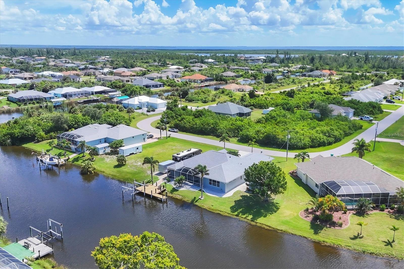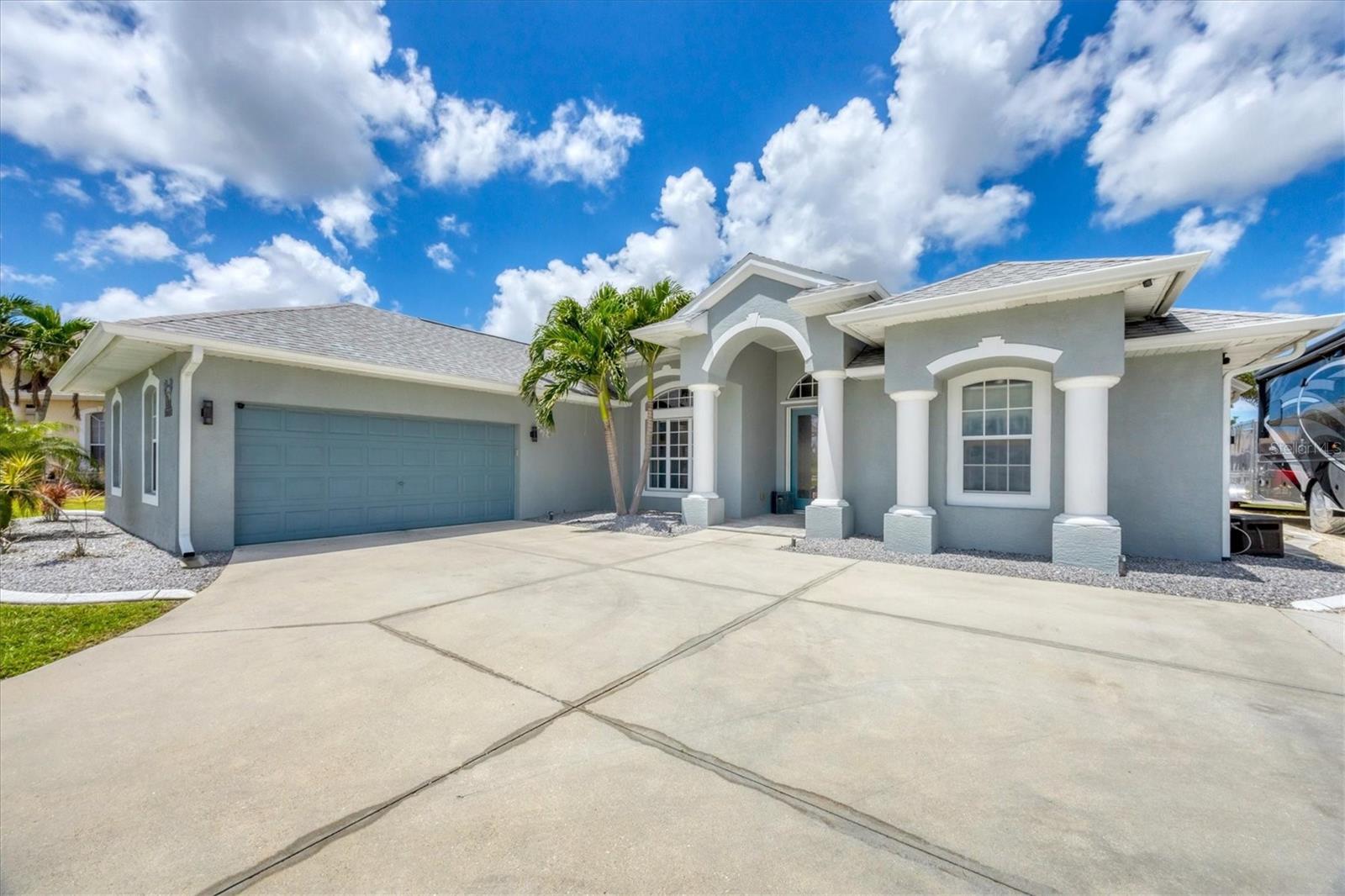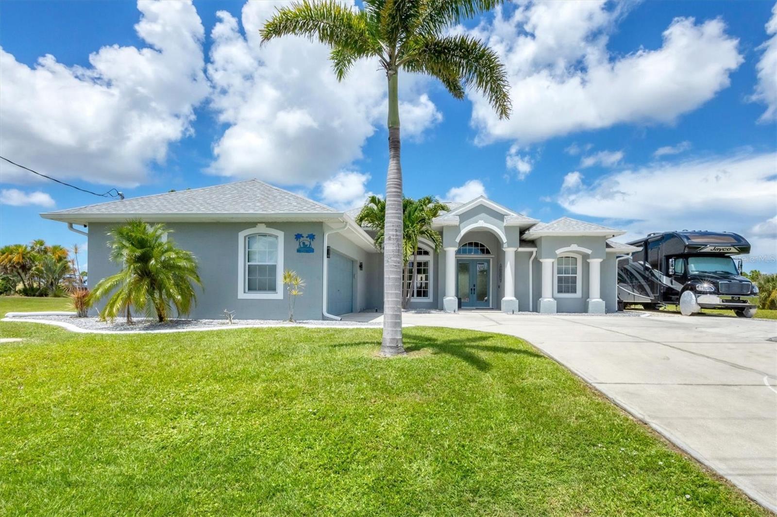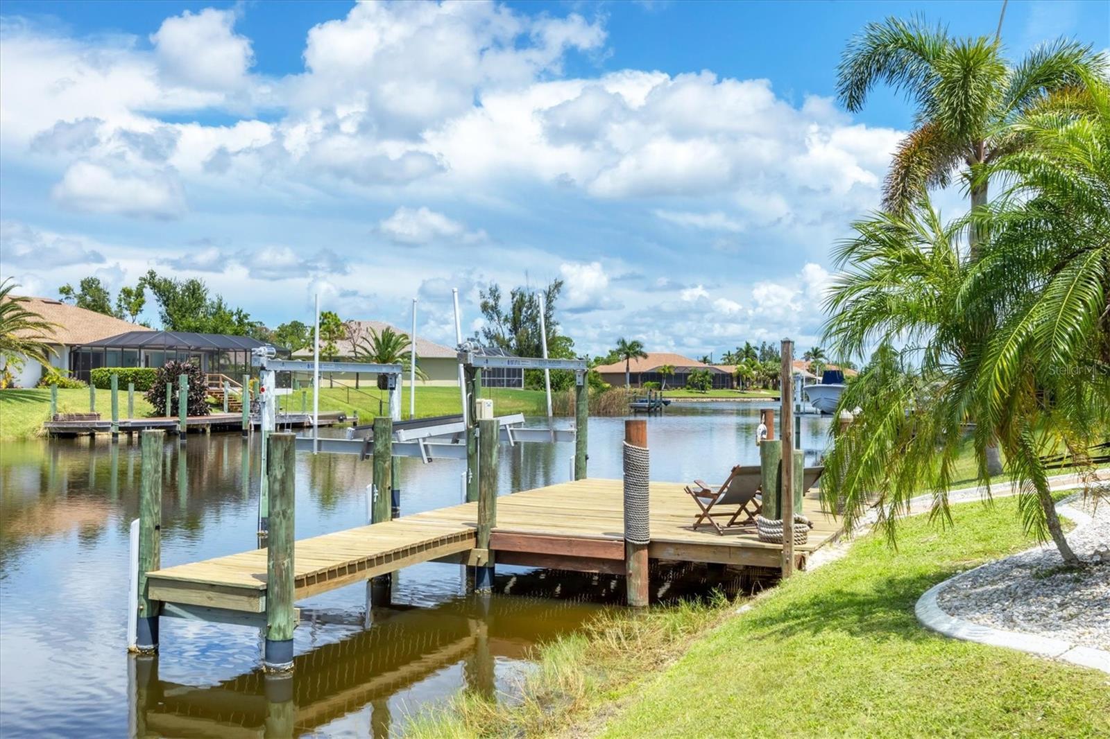 **MAJOR PRICE IMPROVEMENT**Stunning waterfront Oasis with Heated saltwater pool plus a DOCK with LIFT! Welcome to your Florida dream home in the waterfront boating community of South Gulf Cove. Preview with the 3D VIRTUL TOUR (#2 above) to get the true feel of this home. This beautifully appointed 3-bedroom, 3-bath residence sits on an oversized lot and offers 2,483 sq ft of open, light-filled living space with breathtaking views of intersecting canals. Enjoy the luxury of being minutes from the lagoon with open water speed and a quick ride to Charlotte Harbor and the Gulf. Enter through elegant double glass entry doors into a spacious, split floor plan featuring a tray-ceiling Great Room, diagonal tile throughout, and seamless flow between the kitchen, family room, Great room, and dining area — all centered around panoramic views of the saltwater heated pool and canal beyond. Gourmet kitchen with granite counters, stone backsplash, breakfast bar, and abundant storage. Primary suite with tray ceiling, lanai access, walk-in closet, and a spa-like en-suite with dual vanities, whirlpool tub, and walk-in tiled shower with bench. Two guest bedrooms (one with a walk-in closet) and well-appointed guest bath with granite vanity and tiled tub/shower combo. Full pool bath with walk-in tiled shower for rinsing off after a swim or day on the water. Flexible space ideal for a home office or formal dining.Laundry room with utility sink and cabinetry. Ceiling fans, window treatments, and storage throughout 8' interior doors. Saltwater heated pool under a screened lanai with roll-down sun/privacy screens. Private dock with 10,000 lb boat lift, water and electric hookups — ideal for cleaning up after a boat day or relaxing by the water. Side-entry, oversized 2-car garage with epoxy flooring, workbench, and screen enclosure. Extended driveway with RV/boat pad and 50-amp hookup (2024), New roof (2023) and new front door (2023). Hurricane-rated shed for additional storage This sought after community, South Gulf Cove, is a waterfront community with voluntary HOA, residents on the water enjoy access to the Myakka River, Charlotte Harbor, ICW, and Gulf of Mexico. As well as day trips to Fisherman's Village or Cabbage Key. A nice boat ride out to Boca Grande to enjoy the beaches, sandbars, resturuants and more! A community boat ramp, parks, walking trails, and bike paths Close proximity to the pristine beaches of Boca Grande and a short drive to Manasota Key, with its charming shops, dining, and laid-back beach vibes This home delivers Florida lifestyle at its finest — whether you're a boater, beach lover, entertainer, or simply looking for serenity by the water. Book your appointment now and Live in Paradise!!!