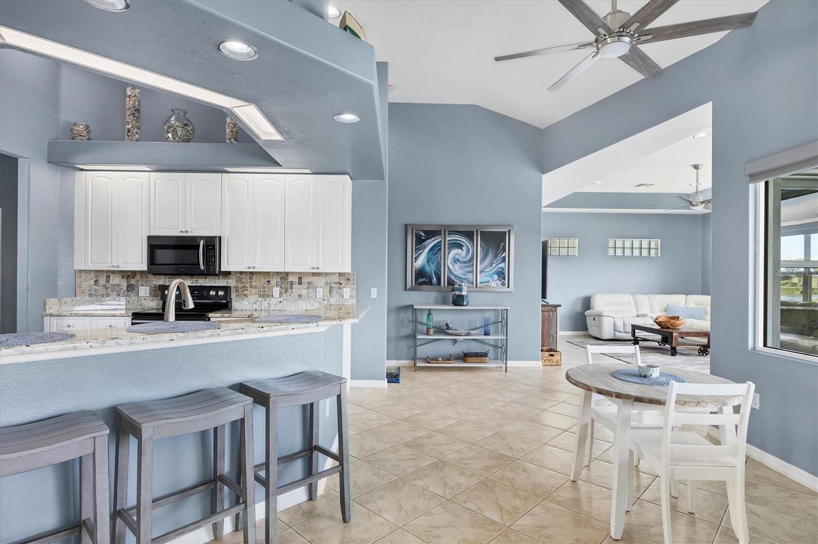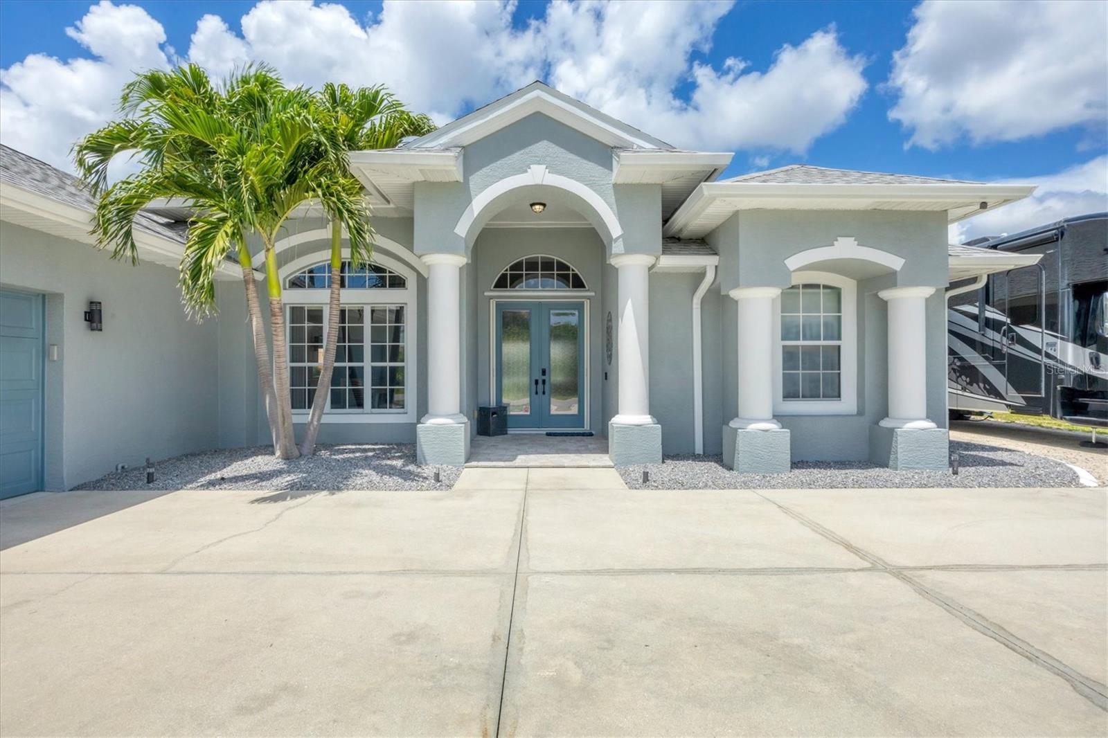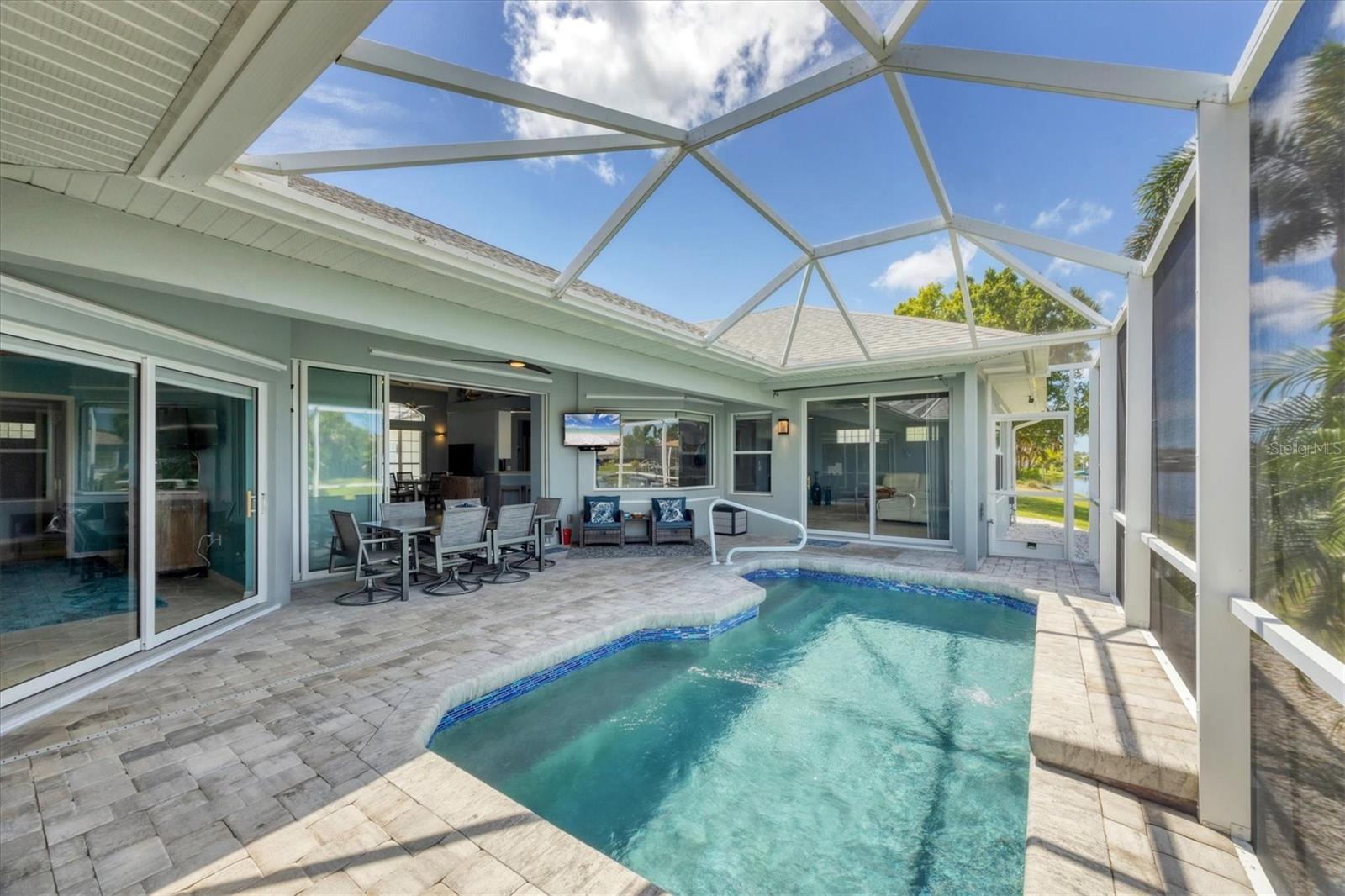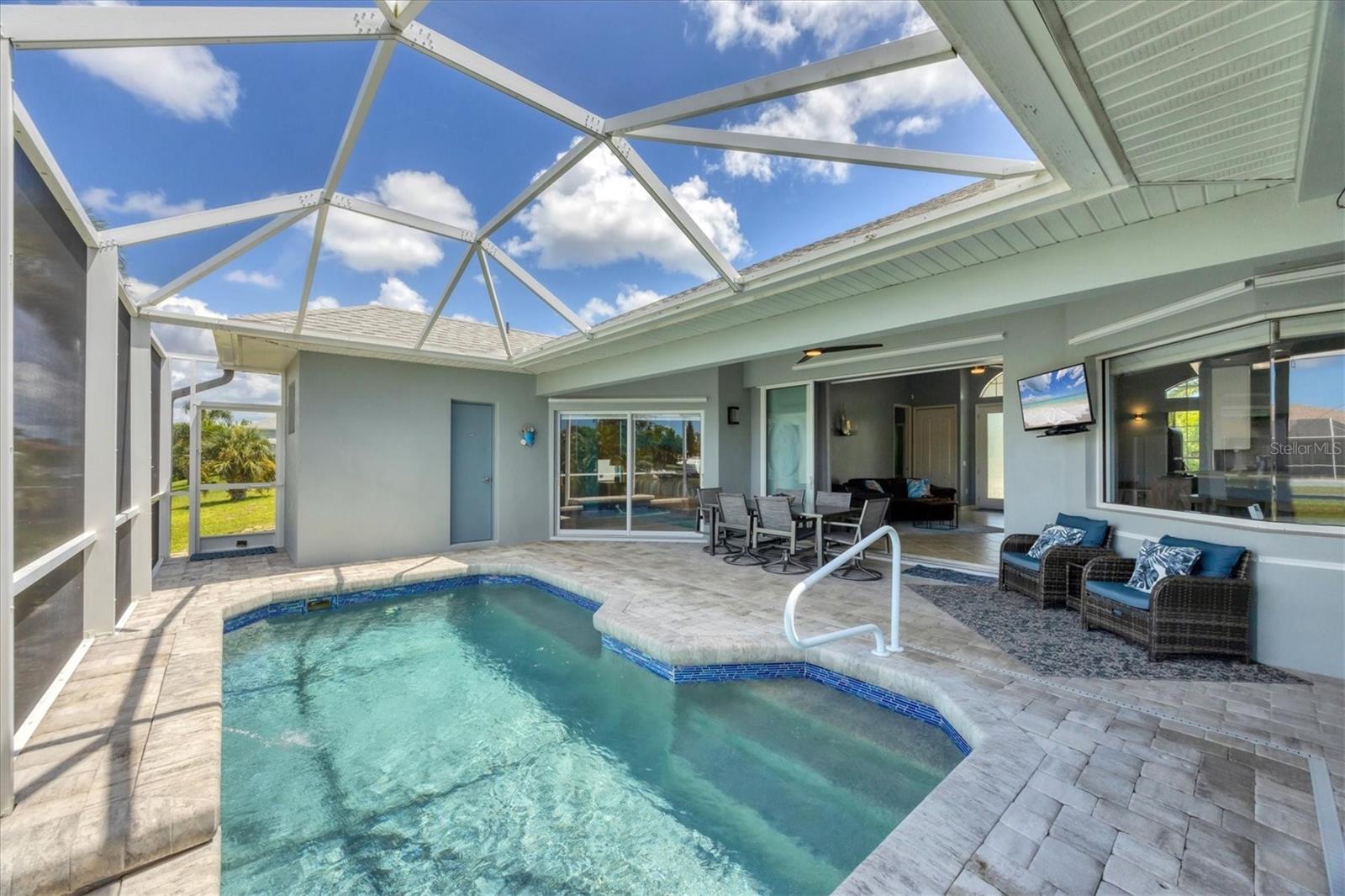 **MAJOR PRICE IMPROVEMENT**Stunning waterfront Oasis with Heated saltwater pool plus a DOCK with LIFT! Welcome to your Florida dream home in the waterfront boating community of South Gulf Cove. Preview with the 3D VIRTUL TOUR (#2 above) to get the true feel of this home. This beautifully appointed 3-bedroom, 3-bath residence sits on an oversized lot and offers 2,483 sq ft of open, light-filled living space with breathtaking views of intersecting canals. Enjoy the luxury of being minutes from the lagoon with open water speed and a quick ride to Charlotte Harbor and the Gulf. Enter through elegant double glass entry doors into a spacious, split floor plan featuring a tray-ceiling Great Room, diagonal tile throughout, and seamless flow between the kitchen, family room, Great room, and dining area — all centered around panoramic views of the saltwater heated pool and canal beyond. Gourmet kitchen with granite counters, stone backsplash, breakfast bar, and abundant storage. Primary suite with tray ceiling, lanai access, walk-in closet, and a spa-like en-suite with dual vanities, whirlpool tub, and walk-in tiled shower with bench. Two guest bedrooms (one with a walk-in closet) and well-appointed guest bath with granite vanity and tiled tub/shower combo. Full pool bath with walk-in tiled shower for rinsing off after a swim or day on the water. Flexible space ideal for a home office or formal dining.Laundry room with utility sink and cabinetry. Ceiling fans, window treatments, and storage throughout 8' interior doors. Saltwater heated pool under a screened lanai with roll-down sun/privacy screens. Private dock with 10,000 lb boat lift, water and electric hookups — ideal for cleaning up after a boat day or relaxing by the water. Side-entry, oversized 2-car garage with epoxy flooring, workbench, and screen enclosure. Extended driveway with RV/boat pad and 50-amp hookup (2024), New roof (2023) and new front door (2023). Hurricane-rated shed for additional storage This sought after community, South Gulf Cove, is a waterfront community with voluntary HOA, residents on the water enjoy access to the Myakka River, Charlotte Harbor, ICW, and Gulf of Mexico. As well as day trips to Fisherman's Village or Cabbage Key. A nice boat ride out to Boca Grande to enjoy the beaches, sandbars, resturuants and more! A community boat ramp, parks, walking trails, and bike paths Close proximity to the pristine beaches of Boca Grande and a short drive to Manasota Key, with its charming shops, dining, and laid-back beach vibes This home delivers Florida lifestyle at its finest — whether you're a boater, beach lover, entertainer, or simply looking for serenity by the water. Book your appointment now and Live in Paradise!!!