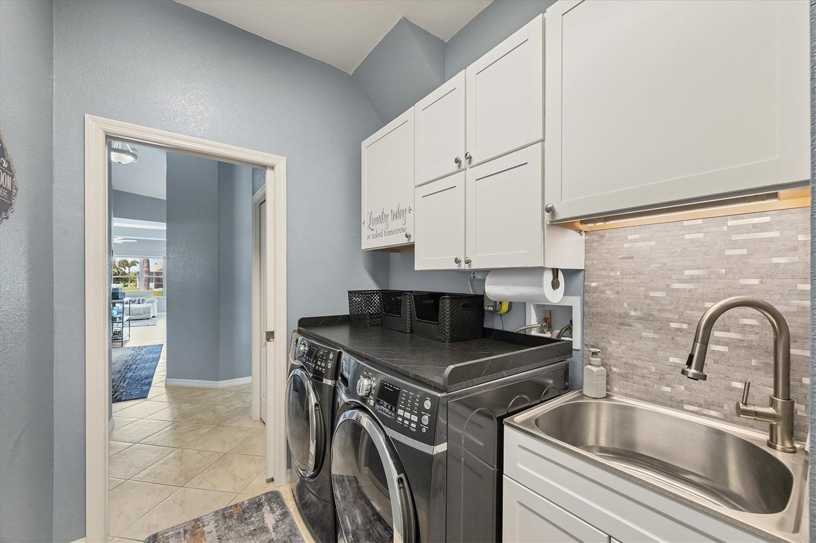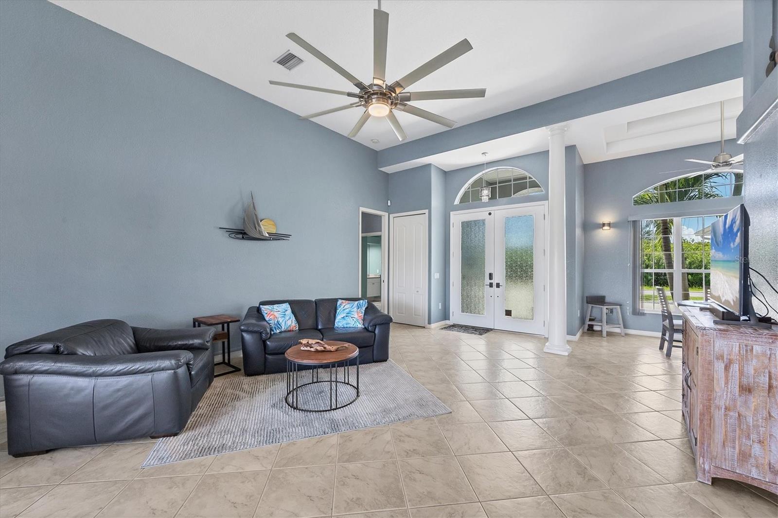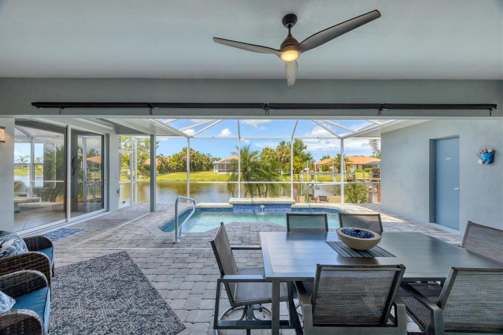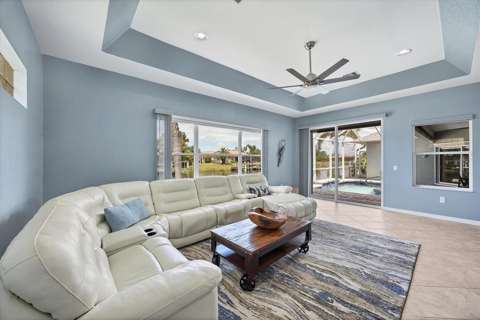 **MAJOR PRICE IMPROVEMENT**Stunning waterfront Oasis with Heated saltwater pool plus a DOCK with LIFT! Welcome to your Florida dream home in the waterfront boating community of South Gulf Cove. Preview with the 3D VIRTUL TOUR (#2 above) to get the true feel of this home. This beautifully appointed 3-bedroom, 3-bath residence sits on an oversized lot and offers 2,483 sq ft of open, light-filled living space with breathtaking views of intersecting canals. Enjoy the luxury of being minutes from the lagoon with open water speed and a quick ride to Charlotte Harbor and the Gulf. Enter through elegant double glass entry doors into a spacious, split floor plan featuring a tray-ceiling Great Room, diagonal tile throughout, and seamless flow between the kitchen, family room, Great room, and dining area — all centered around panoramic views of the saltwater heated pool and canal beyond. Gourmet kitchen with granite counters, stone backsplash, breakfast bar, and abundant storage. Primary suite with tray ceiling, lanai access, walk-in closet, and a spa-like en-suite with dual vanities, whirlpool tub, and walk-in tiled shower with bench. Two guest bedrooms (one with a walk-in closet) and well-appointed guest bath with granite vanity and tiled tub/shower combo. Full pool bath with walk-in tiled shower for rinsing off after a swim or day on the water. Flexible space ideal for a home office or formal dining.Laundry room with utility sink and cabinetry. Ceiling fans, window treatments, and storage throughout 8' interior doors. Saltwater heated pool under a screened lanai with roll-down sun/privacy screens. Private dock with 10,000 lb boat lift, water and electric hookups — ideal for cleaning up after a boat day or relaxing by the water. Side-entry, oversized 2-car garage with epoxy flooring, workbench, and screen enclosure. Extended driveway with RV/boat pad and 50-amp hookup (2024), New roof (2023) and new front door (2023). Hurricane-rated shed for additional storage This sought after community, South Gulf Cove, is a waterfront community with voluntary HOA, residents on the water enjoy access to the Myakka River, Charlotte Harbor, ICW, and Gulf of Mexico. As well as day trips to Fisherman's Village or Cabbage Key. A nice boat ride out to Boca Grande to enjoy the beaches, sandbars, resturuants and more! A community boat ramp, parks, walking trails, and bike paths Close proximity to the pristine beaches of Boca Grande and a short drive to Manasota Key, with its charming shops, dining, and laid-back beach vibes This home delivers Florida lifestyle at its finest — whether you're a boater, beach lover, entertainer, or simply looking for serenity by the water. Book your appointment now and Live in Paradise!!!