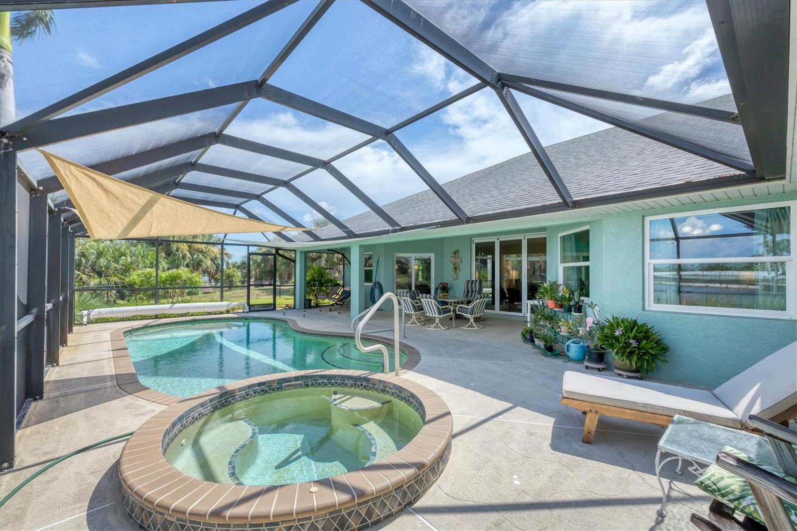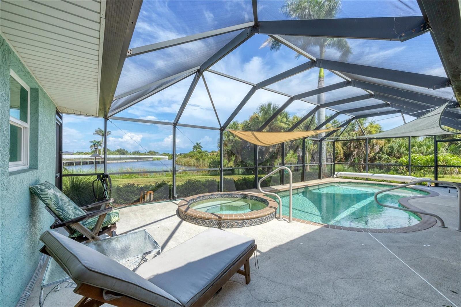 Welcome to your private slice of coastal paradise - A true lush tropical resort style estate with exceptional views, Gulf-access and sitting on just under an acre this beautiful expansive property has 319' of water frontage, and X FLOOD.. This estate blends refined elegance with tropical tranquility. The property is graced with an east-facing backyard, this rare offering has features that will wow you. With lush professionally landscaped grounds, and a resort-style heated pool and spa this property was designed for both relaxed living and sophisticated entertaining, to match the outstanding property the home delivers unmatched value and being offered below appraised value. Going into this home with equity has never felt better. This exquisite property and home are located in one of the most desirable waterfront neighborhoods; South Gulf Cove. Resilient & Secure- • Impact-rated windows & doors (with front door roll-down shutter) • Whole-house surge protection • generator connection • Security system in place for added peace of mind Efficient & Smart Design- • 2025 AC Unit installed • 2025 New Water Tank • Spray foam insulation in garage and living space • Dedicated 10x16 storage shed • Canal-fed irrigation system for lush landscaping • Oversized 3-car “screened” garage with additional 3rd door- tractor-bay door Outdoor Sanctuary & Entertainer’s Dream - • Heated pool and spa (chlorine-based system), complemented by a solar cover and overhead tarps for shade and year-round enjoyment • TREX dock offers low-maintenance, long-lasting waterfront access — just minutes to the Gulf by boat • Fenced southeast section of the property– perfect for pets, gardening, or privacy • Lush landscape designed by a Gardener/Master Naturalist, featuring native and tropical plants all the way to the water’s edge, creating a true backyard oasis Interior Highlights • Impressive chef’s kitchen features expansive granite countertops, abundant custom cabinetry, and a large breakfast bar overlooking stunning water views • 5x10 walk-in pantry • Office with custom built-in shelving – work in comfort and style • Open living spaces designed for entertaining and comfort • Elegant and functional layout with open-concept flow throughout the main living spaces • Positioned to take full advantage of serene canal and water views, this home is ideal for both entertaining and everyday luxury • New Carpet in bedrooms 9/2025 This home combines Florida waterfront living and exceptional value. Whether you're boating out to the Gulf, relaxing poolside, or enjoying the peaceful views, this property delivers lifestyle and luxury. A Truly Rare Offering. This estate presents a rare convergence of thoughtful design, engineering excellence, and tranquil waterfront lifestyle. From its robust construction and systems to the lush, curated grounds, every aspect of this home reflects quality and sophistication. South Gulf Cove has 10’ sidewalks, multiple parks, and is golf cart friendly. South Gulf Cove is considered a “Sportsman” community. The HOA is OPTIONAL Conveniently located between Sarasota and Fort Myers this location is perfect for anyone who loves the beach, boating, fishing, biking, kayaking and more. There are great restaurants, shopping, close to places of worship and medical facilities, close airports for easy travel, this is a prime location with all the conveniences you have grown accustomed to. Schedule your private showing today