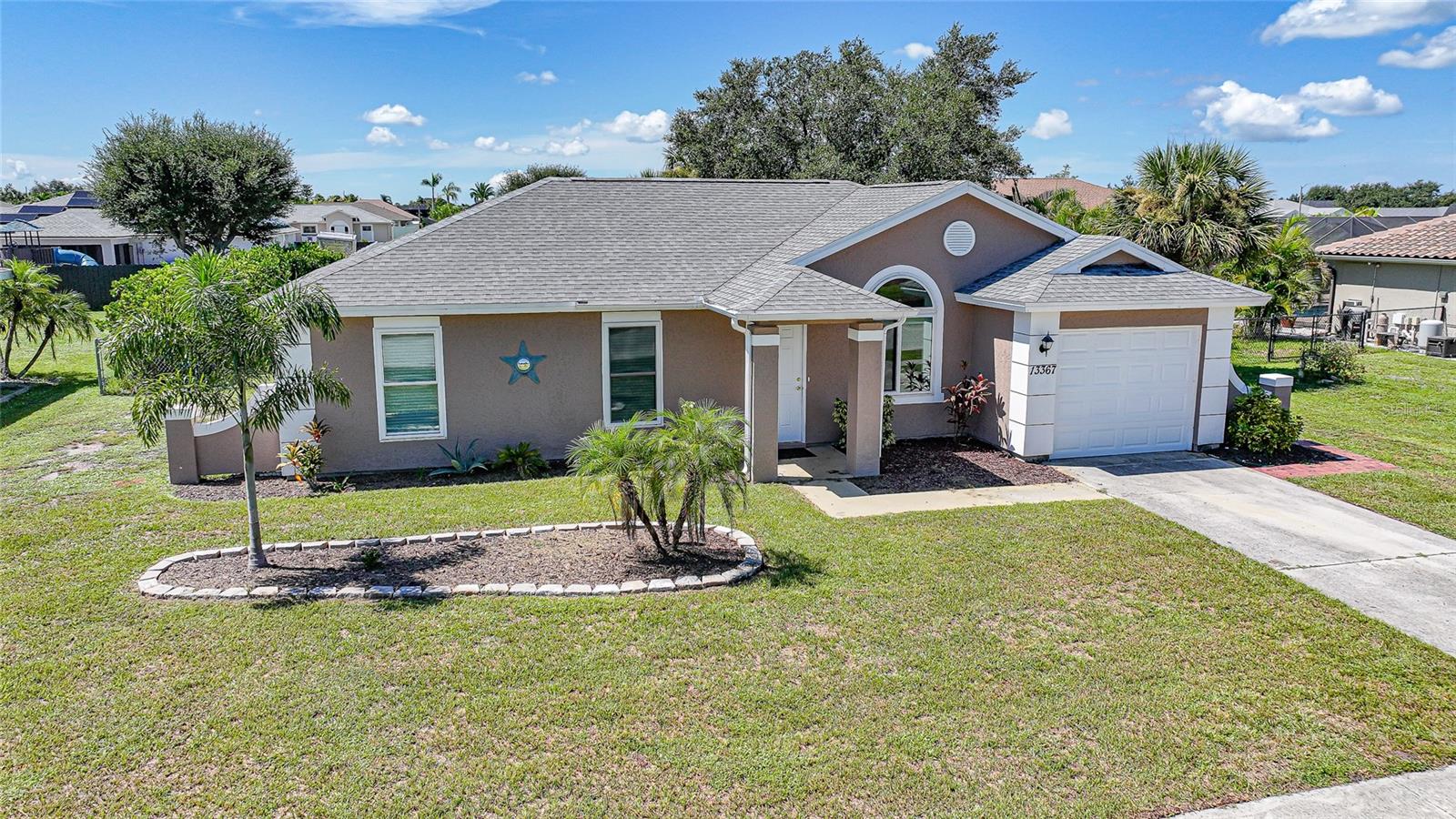 Back on Market—Buyer Financing Fell Through! Their loss is your chance to grab this amazing home! 3-bedroom, 2-bathroom single-family home with 1-car garage located in the desirable Gardens of Gulf Cove. Built in 1989 and offering 1,236 sq. ft. of living space, this home features a spacious living/dining room combo with cathedral ceilings, an open kitchen, and a bright, Florida-style layout. Park boat or rv. Underground utilities too. Enjoy outdoor living with a large fenced backyard, paved patio, new shed (2016), and lake view. A newer roof, hurricane impact windows and garage door, and a new roof (2020) provide peace of mind. More updates include: (2020) New roof & breaker panel, (2016) Impact garage door, whole house re-pipe, water heater, shed, (2015) Hurricane impact windows & slider, (2014) High-efficiency AC, (2024) New screen on back slab. The Gardens of Gulf Cove offers resort-style amenities include 2 community pools, tennis courts, fitness center, recreation center, sidewalks, 4 lakes, and underground utilities. Boat/RV storage is available for an additional fee. Conveniently located between Port Charlotte and Englewood, close to shopping, dining, golf, boating, and Gulf beaches. Seller prefers Jan 2026 or after closing.