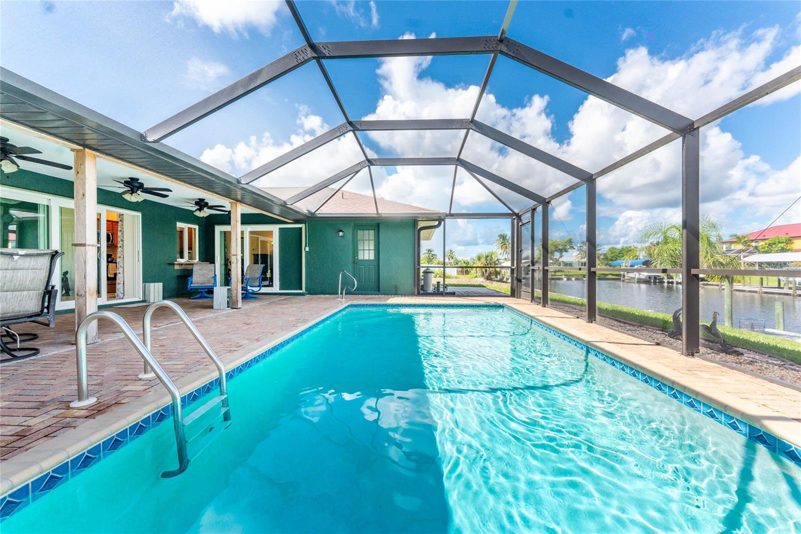 Welcome to South Gulf Cove. A highly desired community for boater "enthusiasts" offering an array of amenities and direct canal access to Intracoastal Waterway. This Lovely home offers a comfortable living experience with 3 bedrooms and 2 bathrooms split floor plan with a large lanai and beautiful pool. The attached 2 car garage provides ample space for vehicles and storage. Home features irrigation system, curbing around the home, landscaping, Concrete Seawall, Electric available for Boat Lift along with water. Updated with Impact windows for piece of mind. South Gulf Cove is a Voluntary Association offering clubhouse, walking path, park, and learning garden. Don't miss your opportunity to own your piece of Paradise. Come Live the Florida Lifestyle. Call and make your appointment TODAY!!!