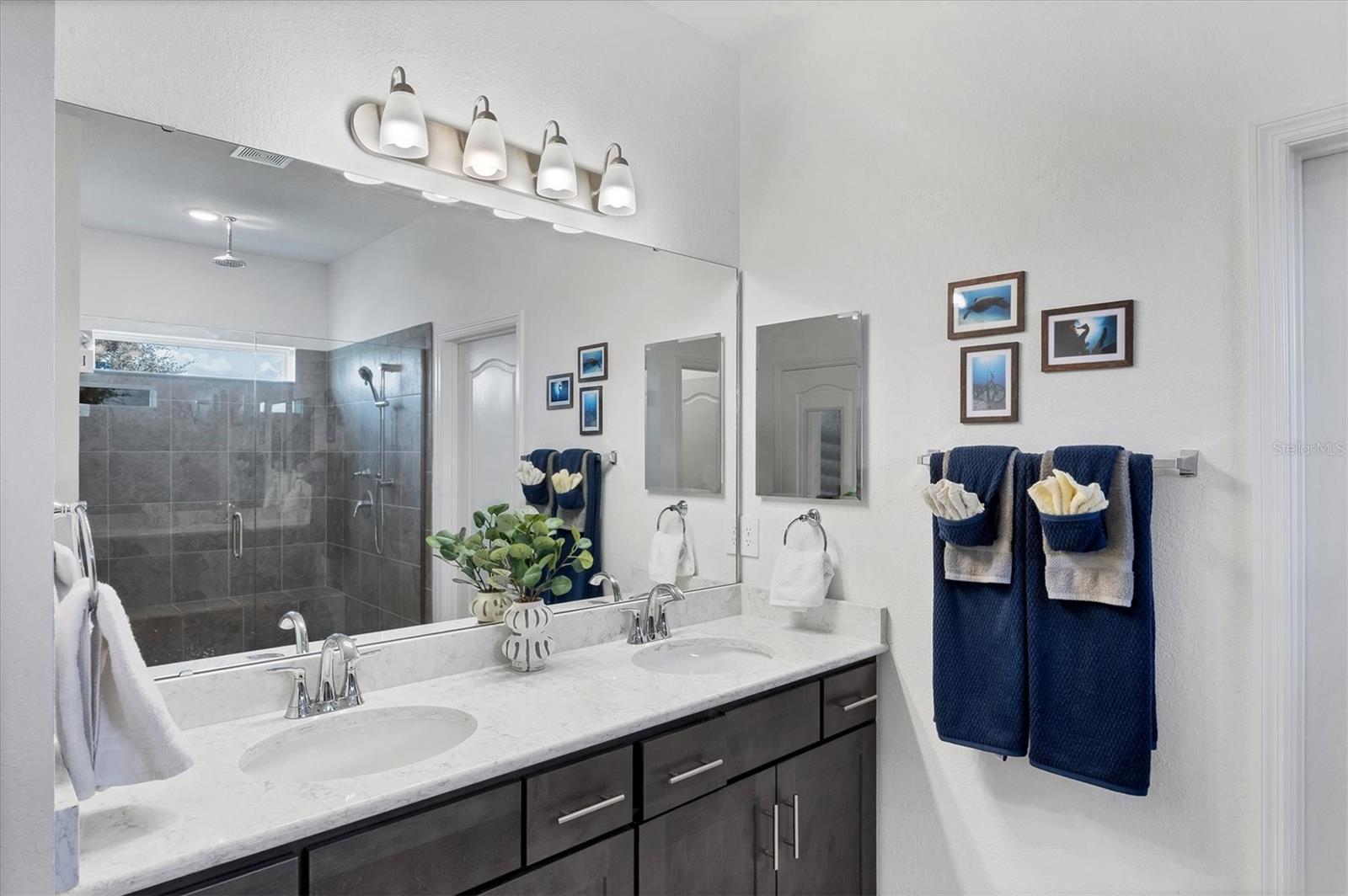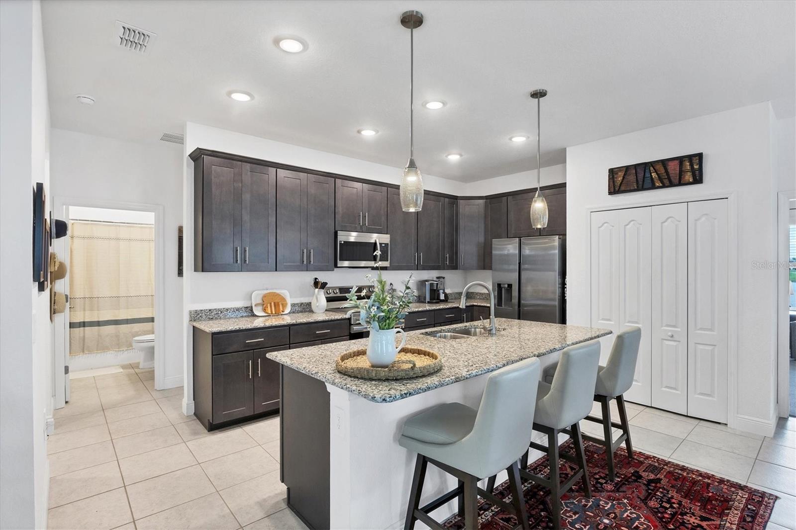 Stunning West Port Home with 3-CAR GARAGE & WATER VIEW! Why wait to build when this better-than-new Ashton model by Maronda Homes is available now in the highly desirable West Port community? Featuring 3 bedrooms, 2 bathrooms, and a rare 3-car garage with ceiling storage, this home offers the perfect blend of style, function, and upgrades. Inside, the open-concept floor plan features a chef-inspired kitchen with stone countertops, shaker-style cabinetry, custom lighting, a large island, and stainless steel appliances. The primary suite is a private retreat with a walk-in closet, dual vanities, and a beautifully upgraded walk-in shower with water views. Two spacious guest rooms are arranged in a split plan for added privacy, while the bathroom is well-appointed with a tub/shower combination and a tile surround. Upgrades continue throughout, featuring a built-out laundry room with soft-close cabinetry, a paver driveway, full hurricane protection, and an X-FLOOD ZONE location for added peace of mind. Step outside to your covered lanai overlooking the water, perfect for enjoying breathtaking Florida sunsets. West Port offers over 450 acres of amenities, anchored by Centennial Park, which features a brand-new aquatic center, soccer fields, an 18-hole disc golf course, playgrounds, and miles of biking and walking trails. All with low HOA fees and just minutes to shopping, dining, healthcare, Charlotte Sports Park, and Gulf beaches. This upgraded Ashton model is a rare opportunity in West Port. Don’t miss out, schedule your showing today.