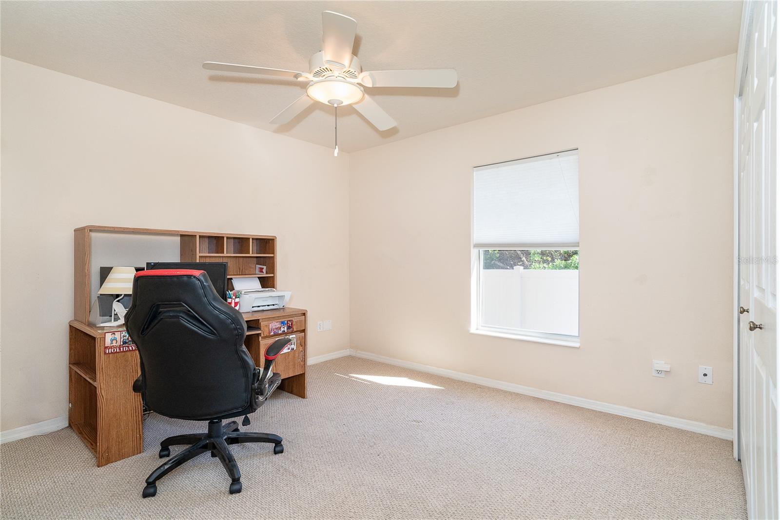 Built in 2007, this well-maintained home is connected to City Water and Sewer. Entry is through double glass front doors into a spacious open great room filled with natural light and high ceilings. Tile flooring runs throughout the main living areas, with carpeted bedrooms. The kitchen features Corian countertops and a pantry, with a nearby breakfast nook highlighted by a mitered glass window overlooking the screened lanai. The backyard offers ample space to accommodate a future pool. The split-bedroom floor plan provides privacy. The primary suite includes a tray ceiling, sliding doors to the lanai, a garden tub, Roman shower, dual sinks, and an oversized walk-in closet. Additional features include Hurricane Shutters, an Interior Laundry Room, Vinyl Fencing, Shed (2022), extra Storage Closet, Roof 2022, AC 2021, Water Heater 2019. Call today and start living the Florida Dream!