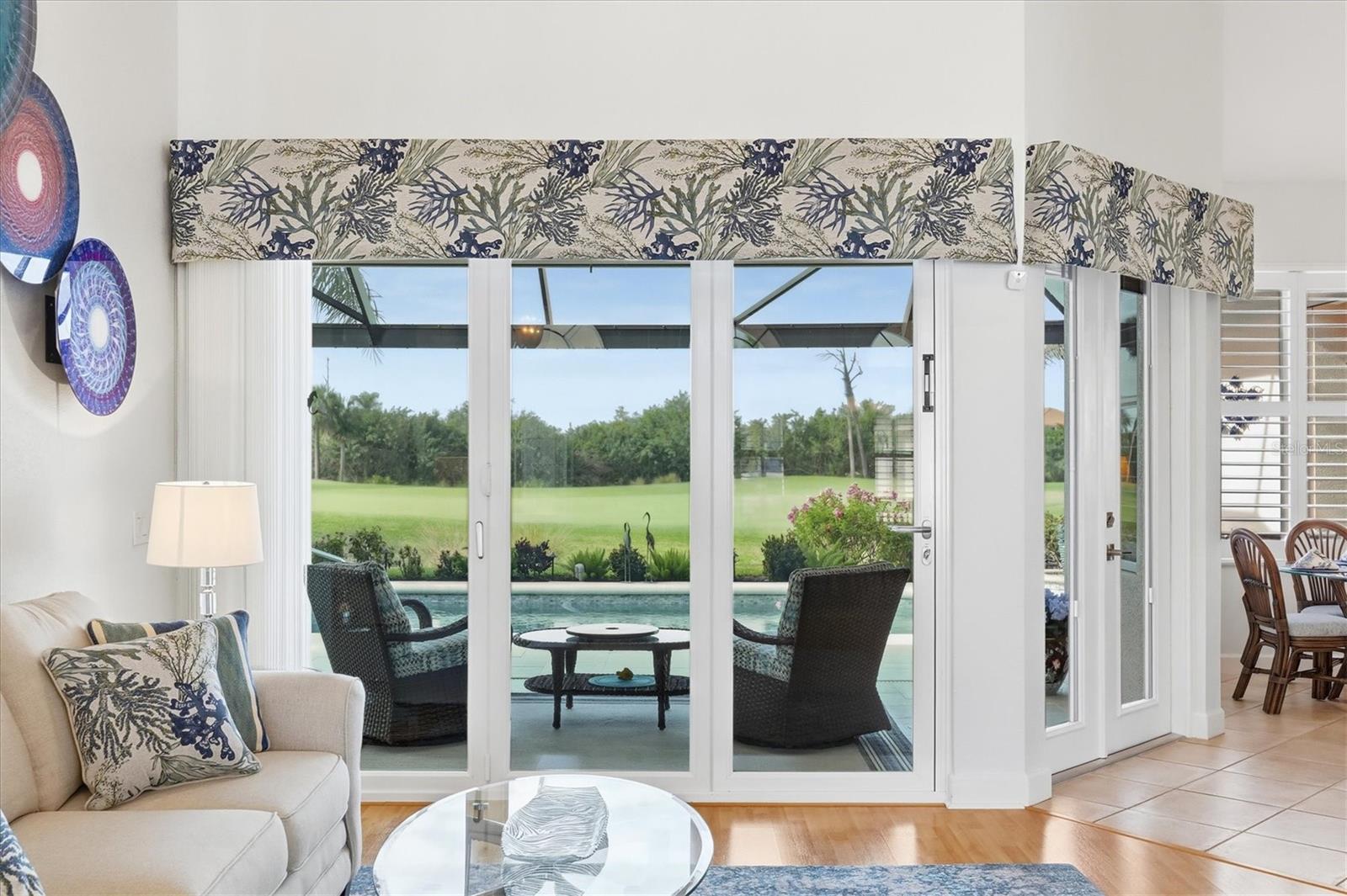 BEGIN to LIVE the ENVIABLE FLORIDA LIFESTYLE residing in Riverwoods coveted neighborhood of Eagle Trace. Amazing upgrades and conveniences not easily found are featured in this spacious 4 Bedroom, 3 Bathroom Estate Home. Situated on a very private premier lot you will enjoy Panoramic Scenic Golf Course Views, an automated Pool & Spa with Interior Controls and an open travertine lanai with picture window screens offering spectacular sunset views. Well appointed interior features include upgraded Flooring, a fabulous Open Kitchen with 42" Maple Cabinets and replaced Stainless Steel Appliances. Primary Bathroom offers a remodeled walk in glass Roman Shower and Bathtub (Handicap accessible) Interior Designer Lighting and Plantation Shutters throughout. Established landscaping, desirable oversized 3-Car Garage, new HVAC System, Motorized Storm Shutters, Whole House Generator, Walk-In Closets, and so much more. Ask Agent for a Detailed List. Enjoy all Riverwood has to offer. This gated, resort-style community features scenic walking and biking trails, a lap and resort-style pool, hot tub, tennis and pickleball courts, a fitness center, nature preserves and wildlife, and a full calendar of social activities. Residents also enjoy the R.O.M.P. Dog Park, with optional memberships for the Riverwood Golf Club’s Championship Course and the Private Beach Club on Manasota Key based on availability. Ideally located between Sarasota and Fort Myers, Riverwood is close to pristine beaches, boating, dining, shopping, and year-round cultural events. Contact your agent today—this exceptional Florida lifestyle is waiting for you!