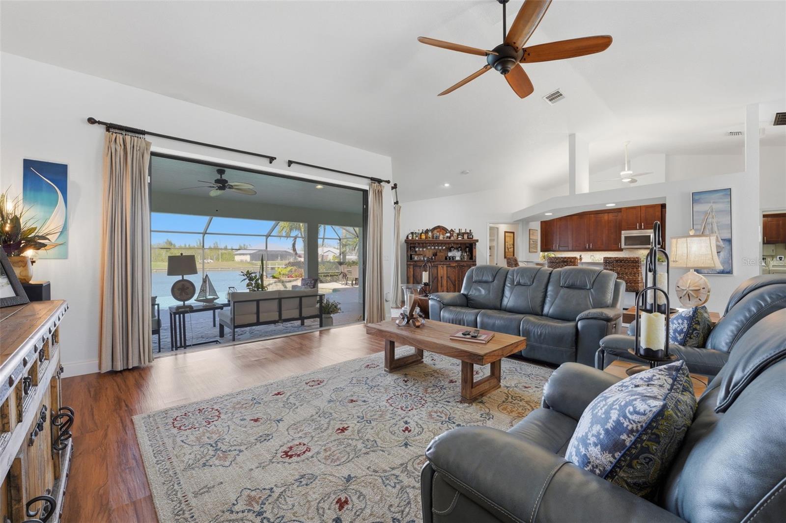 Rarely available waterfront home on one of South Gulf Cove’s widest and most active waterways, offering approximately 250 feet of breathtaking water views and 116 feet of prime waterfrontage. Boating enthusiasts will appreciate the covered dock and lift with only one bridge to open water. From the moment you step through the front door, the view is nothing short of astonishing—your eyes are drawn through the open living space to the expansive lanai, infinity-edge pool and spa, and the scenic Zephyr Waterway beyond. Designed for the Florida lifestyle, this 3-bedroom, 2-bath residence features a wet bar off the kitchen, perfect for entertaining, and an oversized garage plus a separate storage shed for added convenience. Outdoor living shines with a recently upgraded pool area, including a new salt injector (2025), pool pump (2025), pool heater (2024), and a new spa controller (2026). The lanai structure and screen were replaced in 2023, creating an ideal space to relax and enjoy lush tropical landscaping and tranquil water views. Inside, the home offers numerous recent upgrades: a beautifully refreshed kitchen with new granite countertops, refrigerator, cooktop, and dishwasher (all 2025), along with upgraded cabinetry (2022). Faux wood vinyl flooring was installed in 2022, complementing the home’s coastal feel. Additional major improvements include a new roof (2022), HVAC system (2022), and a recently rebuilt and upgraded irrigation system. This exceptional waterfront property delivers panoramic views, direct boating access, and thoughtful upgrades throughout—an ideal blend of comfort, functionality, and Florida waterfront living.