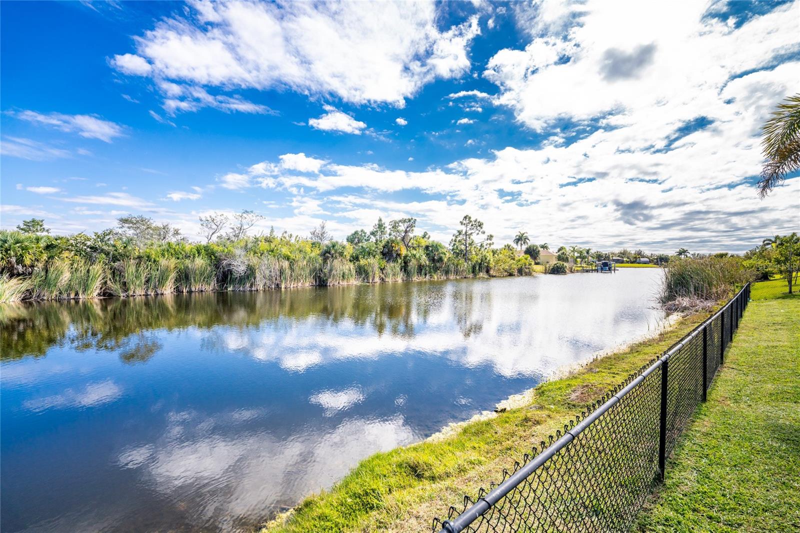 Boating days, poolside or dockside nights, and the best of Florida living come together in this exceptional waterfront home in South Gulf Cove, with the option to purchase the adjacent lot! Designed for relaxed coastal living, this three bedroom, two bathroom, three car garage DM Dean built residence offers a thoughtful layout and an impressive list of features including impact windows and doors, a Sonos surround sound system, interior and exterior security cameras, 8 foot interior doors, tile flooring throughout, and a fully fenced yard. A paver driveway and walkway lead to the screened double door entry and welcoming leaded glass doors. Inside, the great room is highlighted by a tiered coffered ceiling, while zero corner pocketing sliding doors with automatic blinds create seamless indoor and outdoor living. Natural light and water views set the tone throughout the main living space. The spacious kitchen is ideal for everyday living and entertaining, featuring abundant wood cabinetry, generous granite countertop space, a center island, tumbled stone backsplash, pantry, and an eat-in area. Additional sliding glass doors open to the lanai, all overlooking the pool and tranquil waterway beyond. The ensuite primary bedroom is a peaceful retreat with a tray ceiling, plantation shutters, sliding glass doors to the pool area, and dual walk-in closets. The primary bathroom offers a fully tiled Roman style walk through shower with seating and dual separate granite topped vanities. A split bedroom floor plan provides privacy for guests, with a pocket door separating the guest wing. Guest bedrooms are spacious with reach in closets, and one offers direct lanai access through sliding glass doors. The guest bathroom includes a tub and shower combination, a large granite topped vanity, and convenient pool access. At the front of the home, a flexible bonus space with double French doors and plantation shutters is perfect for a home office, workout room, playroom, or additional guest suite. The interior laundry room is well appointed with a built-in granite folding counter. Outdoor living is where this home truly shines. The large screened and partially covered pavered lanai features newer ceiling fans and a heated pool, creating the perfect setting to unwind while enjoying peaceful water views. The dock with lift offers easy access to the water, while the underwater light turns evenings into a peaceful fish watching experience. Simply step aboard and head out to Charlotte Harbor, the Gulf, Stump Pass, or Punta Gorda, where waterfront restaurants and tiki bars await. This home is tucked away in the quiet waterfront community of South Gulf Cove, where the HOA is optional and offers a low cost membership with access to a clubhouse, playground, and a variety of activities. A public boat ramp is also conveniently nearby. An additional opportunity exists to purchase the vacant lot next door separately. Make sure 9386 Arrid Circle is on your list of homes to see and experience true waterfront Florida living firsthand.