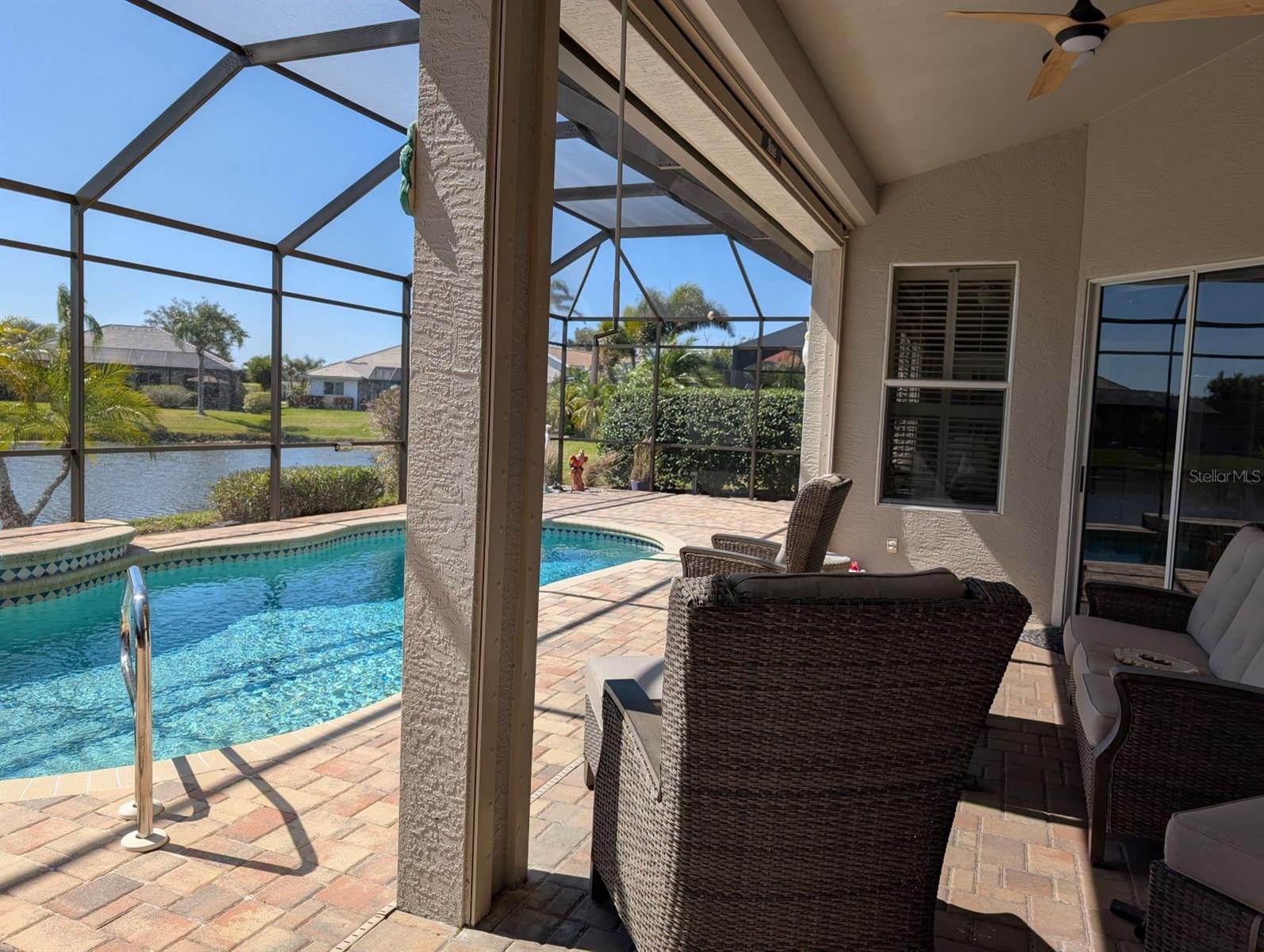 NEW ROOF 2023! Lovely well-appointed "Areca" home in the desired Bay Ridge neighborhood of Riverwood. Approach the home on the beautiful paved driveway. As you enter, the newly painted formal living area leads you into the updated eat in kitchen with granite counter tops, new backsplash and stainless steel appliances. The open concept family room boasts a sleek and stylish built-in entertainment center for organizing your media equipment and TV. Plantation shutters allow for plenty of natural light. The sliding glass doors will lead you to the expansive resurfaced paved lanai with an inviting pool, water fall and relaxing water view. The primary bedroom with access to the lanai offers a updated modern en-suite bathroom. A split floor plan, the guest bedrooms with a jack-and-jill bathroom, provides privacy for you and your guests. The laundry room is complete with a newer washer/dryer. Other updates include updated flooring, an epoxy garage floor and storm shutters. There is no pool heater. Schedule a showing today and begin living the grand Florida lifestyle you have been dreaming of! Property taxes include an annual CDD fee. Riverwood stands as a premier community in Southwest Florida, offering an exquisitely landscaped setting along the tranquil Myakka River, nestled between Fort Myers and Sarasota in Port Charlotte. Spanning 1300 acres, Riverwood's master-planned community seamlessly blends natural beauty with modern living trends. Enjoy an array of lifestyle amenities, including a recreational center equipped with state-of-the-art fitness facilities, a Lap Pool and Resort Style pool, 6 hard tru tennis courts, Pickell Ball Courts, Lawn croquet, and a Dog Park, among others! Riverwood Golf Club is recognized as a Golf Digest-rated 4 ½ star Golf Course, and Riverwood Beach Club on the Gulf of Mexico offers memberships based on availability. Conveniently located near the new Sunseeker Resort, which boasts a variety of restaurants, the Tampa Rays and Atlanta Braves Spring Training facilities, Boating, World-Class Fishing, and the pristine beaches of Southwest Florida, Riverwood’s location provides easy access to a wealth of cultural and lifestyle opportunities.