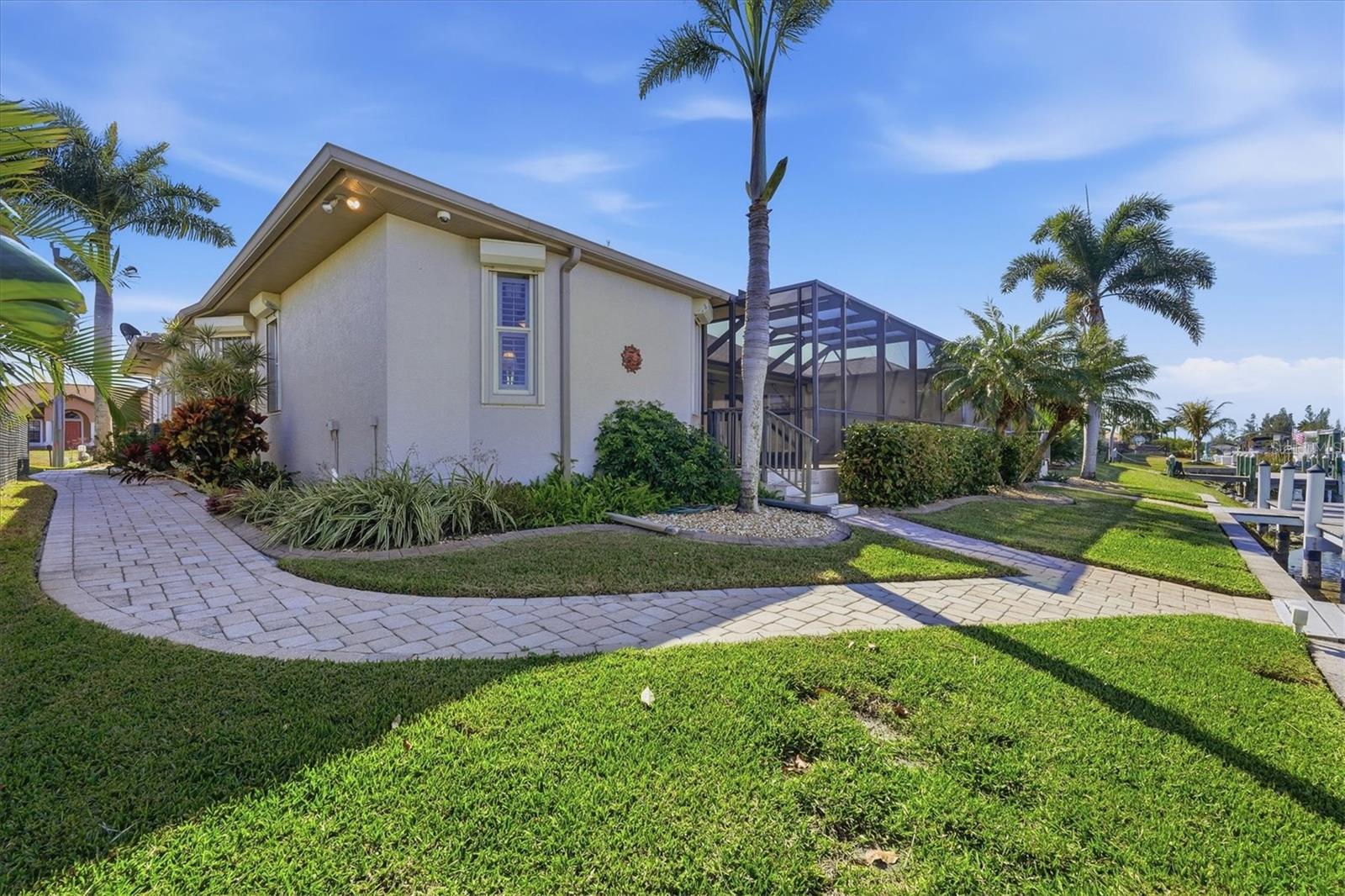 Looking for an AMAZING, UNOBSTRUCTED waterfront view with direct access to the harbor and Gulf beyond? This exceptional residence with desirable Southern front exposure showcases quality craftsmanship and true Florida waterfront living. Master carpentry and extensive custom wood cabinetry create an elegant yet comfortable setting for entertaining and everyday living. The formal dining room, spacious great room with a wall of glass sliders, and adjoining breakfast nook with a picture window all frame stunning water views. The gourmet kitchen features granite countertops, crowned custom cabinetry, built-in microwave and wall ovens, cooktop, range hood, and abundant storage, with granite continuing throughout the baths. The home offers tile flooring throughout, 8’ doors, an 8’ leaded glass front door with sidelights, 10’ tray ceilings in the bedrooms, and impressive 15’ vaulted ceilings in the great room and kitchen. The spacious primary suite provides comfort and privacy, while the oversized laundry room includes a utility sink and extra storage. All closets feature double shelving. Built with efficiency and protection in mind, the property includes Manabloc plumbing, total home radiant barrier insulation, central vacuum, Honeywell smart thermostat, Aqua Systems water softener, electrical panel wired for generator, alarm system with fire protection, and an 8-camera security system with recorder. Electric and manual hurricane shutters protect all windows and doors, with accordion shutters on the lanai, plus tinted windows and Hunter Douglas plantation shutters and slider coverings with lifetime warranty. The 3-car garage features an epoxy-painted floor, insulated garage doors, remote-controlled roll-down screen, custom cabinetry with 10’ workbench, custom shelving, pull-down attic stairs, and attic storage with plywood flooring. Outdoor living is exceptional with a decorative lanai pool deck surrounding a heated pool with spa jets and waterfalls, a separate pool bath with additional storage, and an outdoor shower. Paver walkways lead to the 60’ Trex dock with water and electric, a 80’ decorative block seawall, a 10,000 lb covered boat lift with 24’ cover set up for a standard boat, a 24’ walkboard with stabilizer bar. The exterior is enhanced by a decorative driveway and walkway, St. Augustine turf with custom curbing, Rain Bird irrigation drawing from the canal for the lawn and separate city water irrigation for shrub lines, bronze stainless pool cage screws installed in 2019, and a dimensional shingle roof with ridge vents. Please see the attachment in the listing for a complete list of items that convey with the sale of this property. This is the kind of waterfront home that’s hard to find — unobstructed views, meticulous upgrades, and true boating access from your backyard. From sunset dinners on the lanai to spontaneous days on the water, every detail is designed to elevate the Florida lifestyle. Come experience it in person — you’ll feel it the moment you walk in.
