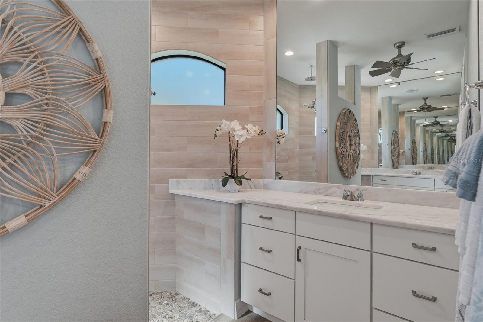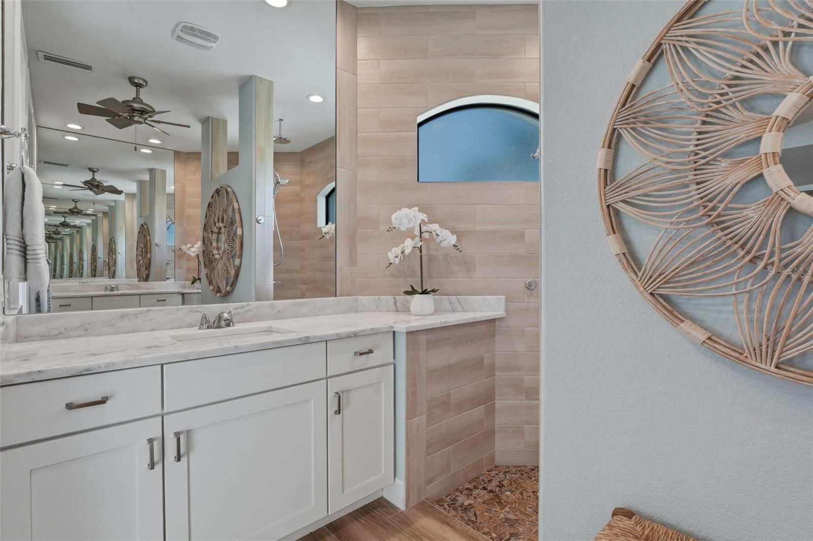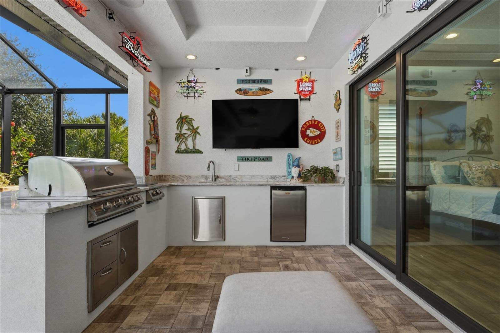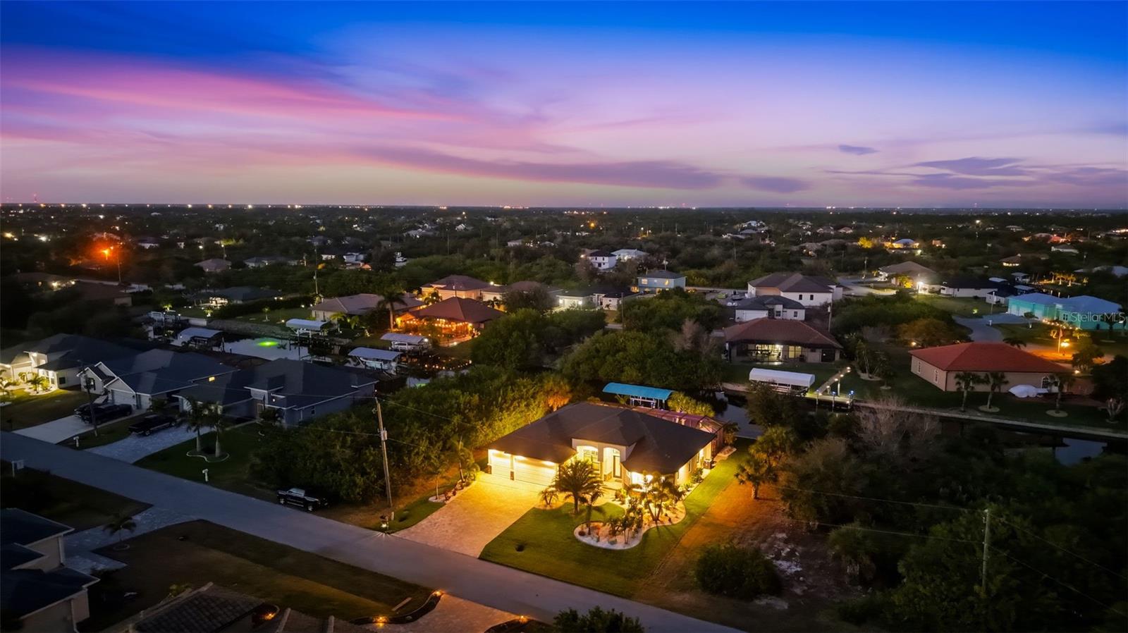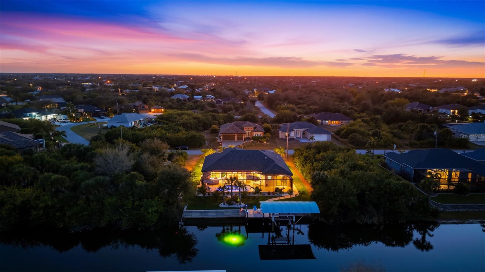 Experience elevated coastal living in this 2023 custom-built waterfront residence by one of the area’s premier builders, ideally located in the sought-after South Gulf Cove boating community. Positioned on a Gulf-access, sea-walled lot, this exceptional property offers sun-filled living, effortless boating, refined design, and an unbeatable location just 13 miles from the pristine beaches of Manasota Key and Boca Grande. Designed for both everyday comfort and elegant entertaining, the open-concept living area is enhanced by zero-degree impact sliders that create a seamless indoor-outdoor connection. Impact-rated windows and doors provide superior storm protection and energy efficiency, while a soft-start A/C system ensures smooth, efficient operation. The home is also generator-ready, offering added peace of mind and convenience. This thoughtfully designed layout includes 3 bedrooms, 2 bathrooms, a private den, and a spacious 3-car garage with an additional 2 feet in depth — ideal for larger vehicles, extra storage, or recreational gear. The luxurious owner’s suite is a serene retreat featuring tranquil water views, expansive walk-in closets, and a spa-inspired en-suite bath with dual shower heads for a true resort-style experience. The chef-inspired kitchen is a true showpiece, showcasing a wrapped island, custom slow-close cabinetry, under-cabinet lighting, and a dramatic glass backsplash extending to the ceiling. Designed for both everyday living and entertaining, it features a premium propane cooktop, custom hood vent, double ovens, stainless steel appliances, and a built-in wine cooler — delivering the performance and elegance expected in a luxury waterfront home. Plank tile flooring flows throughout the main living areas, elevating both durability and coastal sophistication. Additional interior upgrades include plantation shutters, a tankless propane hot water heater servicing the home, and a built-out laundry room for added convenience. Step outside to embrace the ultimate Florida lifestyle. The expansive outdoor living space features a custom outdoor kitchen, a saltwater pool and spa — ideal for entertaining or enjoying peaceful sunset evenings. The property is equipped with propane service for the tankless water heater, BBQ, and stove, offering efficiency and performance throughout. Boating enthusiasts will appreciate the private dock complete with a 10,000 lb boat lift and canopy, providing quick Gulf access and protection for your vessel. The home’s curb appeal is equally impressive, featuring mature tropical landscaping with decorative curbing, an irrigation system, upgraded St. Augustine sod, a full-width paver driveway, and a beautifully designed walkway leading to the dock. The 3-car garage is finished with durable epoxy flooring, adding both style and function. Located in the highly desirable South Gulf Cove boating community, residents enjoy convenient access to world-class boating, championship golf courses, marinas, upscale shopping, and waterfront dining — all while enjoying the privacy and tranquility of luxury canal-front living. This move-in-ready waterfront masterpiece offers the perfect blend of sophistication, comfort, and coastal lifestyle — an exceptional opportunity in one of Southwest Florida’s most desirable communities.