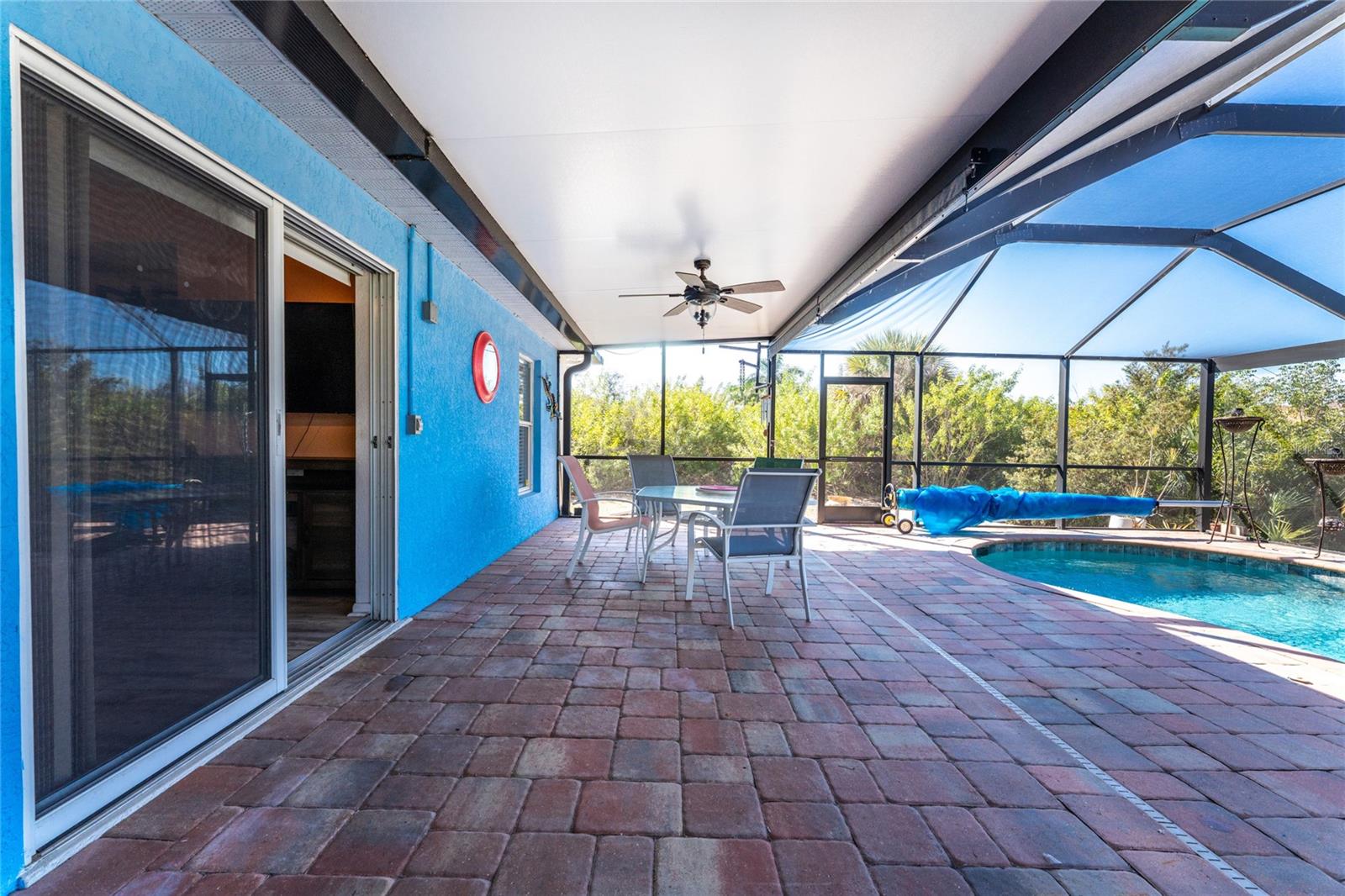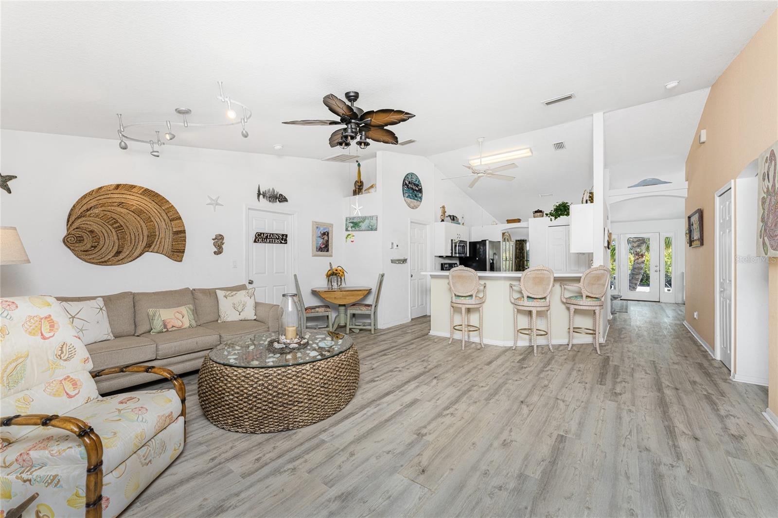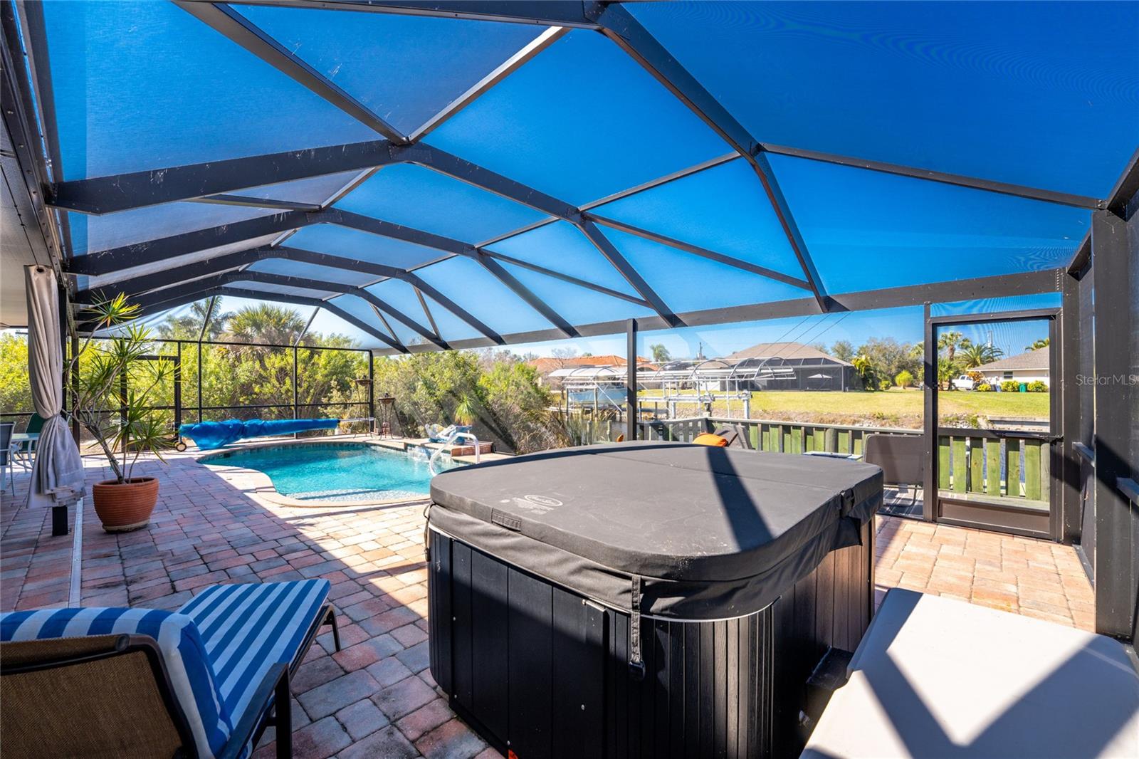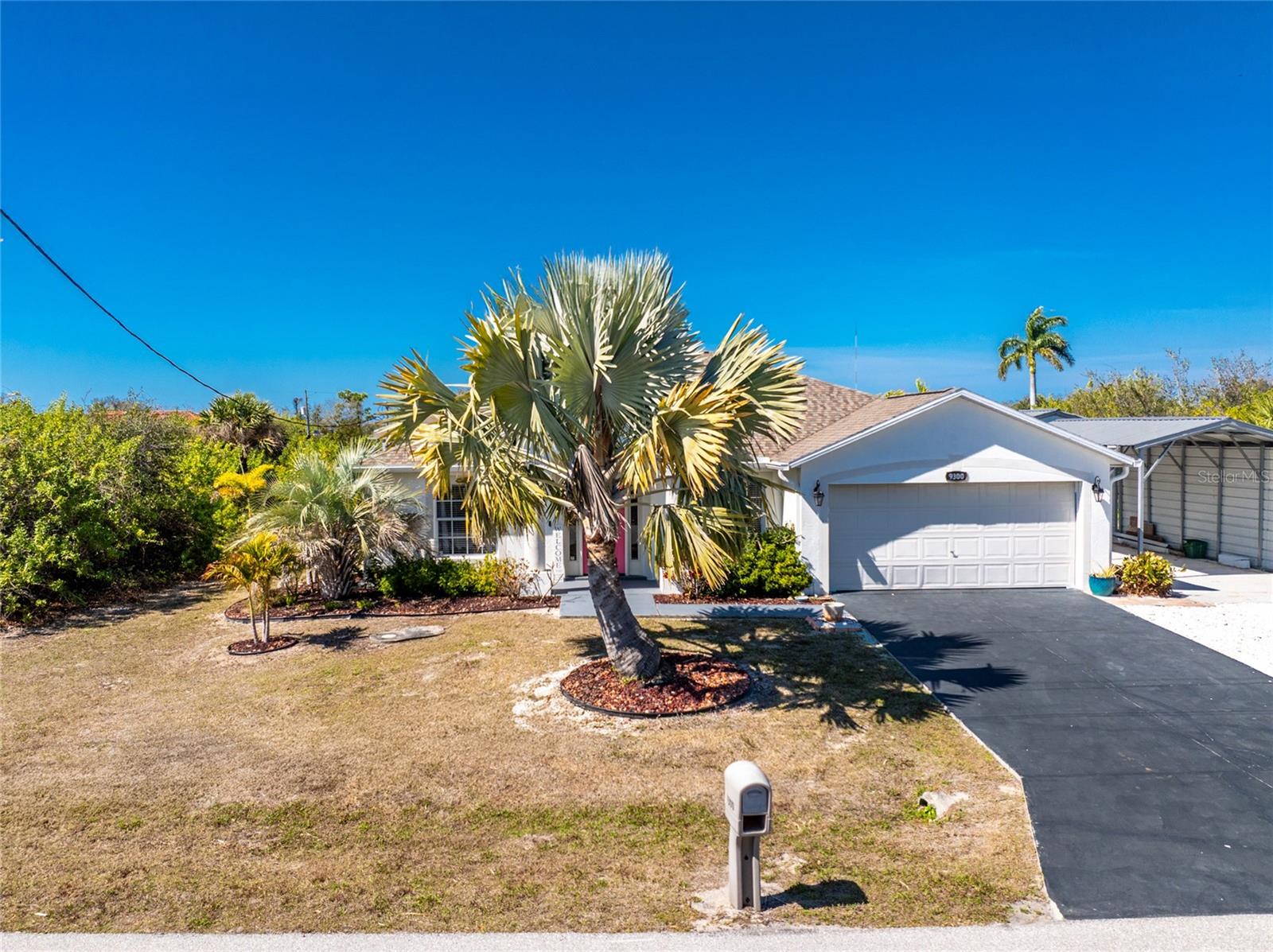 Live the Ultimate Southwest Florida Waterfront Lifestyle with Gulf Access, Sunset Views, a Heated Saltwater Pool, Tiki Bar and 10,000 lb Boat Lift in South Gulf Cove! This three bedroom, two bathroom home was designed for everyday living, entertaining, and all the toys that come with a Florida waterfront lifestyle. In addition to the two car attached garage, you have a detached 12x20 garage with doors on both ends for easy pull through access that connects to a 12x30 carport. Bring the boat gear, kayaks, golf cart, or even an RV with the 30 amp hookup already in place. The tropical pink front door sets the mood before you even step inside. The open floor plan feels welcoming and comfortable, with cohesive wood look LVP flooring throughout the main living areas and tile in the bathrooms for easy care. Formal living and dining rooms with vaulted ceilings greet you at the entry and offer great space for hosting holidays or relaxed dinners with friends. The kitchen sits right in the center of the home with access on both ends, making it easy to move between rooms. You will find plenty of white cabinetry, a breakfast bar, reach-in pantry, and plant shelves. Just beyond, the large family room continues the vaulted ceilings and opens to the lanai through sliding glass doors. From here, you can watch boats go by on the canal or catch the sun setting over the pool while dinner is on the stove. The primary bedroom is spacious and peaceful, with a walk-in closet and a large window overlooking the pool area. The bathroom has been beautifully remodeled with a custom tiled shower in water inspired tones and a dual sink vanity. Two guest bedrooms with reach in closets share a guest bathroom with a shower and tub combo and fun flamingo inspired decor that keeps the coastal feel going. An interior laundry room with a newer stackable washer and dryer makes daily tasks simple. Out back is where this home really shines. The large paver lanai offers both covered space and clear view screening so you never lose sight of the water. There is a built-in bar for easy entertaining, a 2017 heated saltwater pool with a waterfall feature, a separate hot tub, and an open air deck overlooking the canal. The dock is spacious and equipped with a 10,000 lb boat lift. Additional updates include a 2019 HVAC system and a 2025 garage door opener. Located in the quiet waterfront neighborhood of South Gulf Cove, the HOA is optional with a low annual fee if you would like to participate in community activities, enjoy the clubhouse, or use the playground. There is also a public boat ramp nearby. You are convenient to Boca Grande, Port Charlotte, Englewood, local marinas, beaches, restaurants, major league baseball spring training centers, and golf. If your idea of a good day includes fishing in the morning, a boat ride in the afternoon, and winding down in the pool while the sky turns shades of orange and pink, 9300 Miami Circle is ready for you.