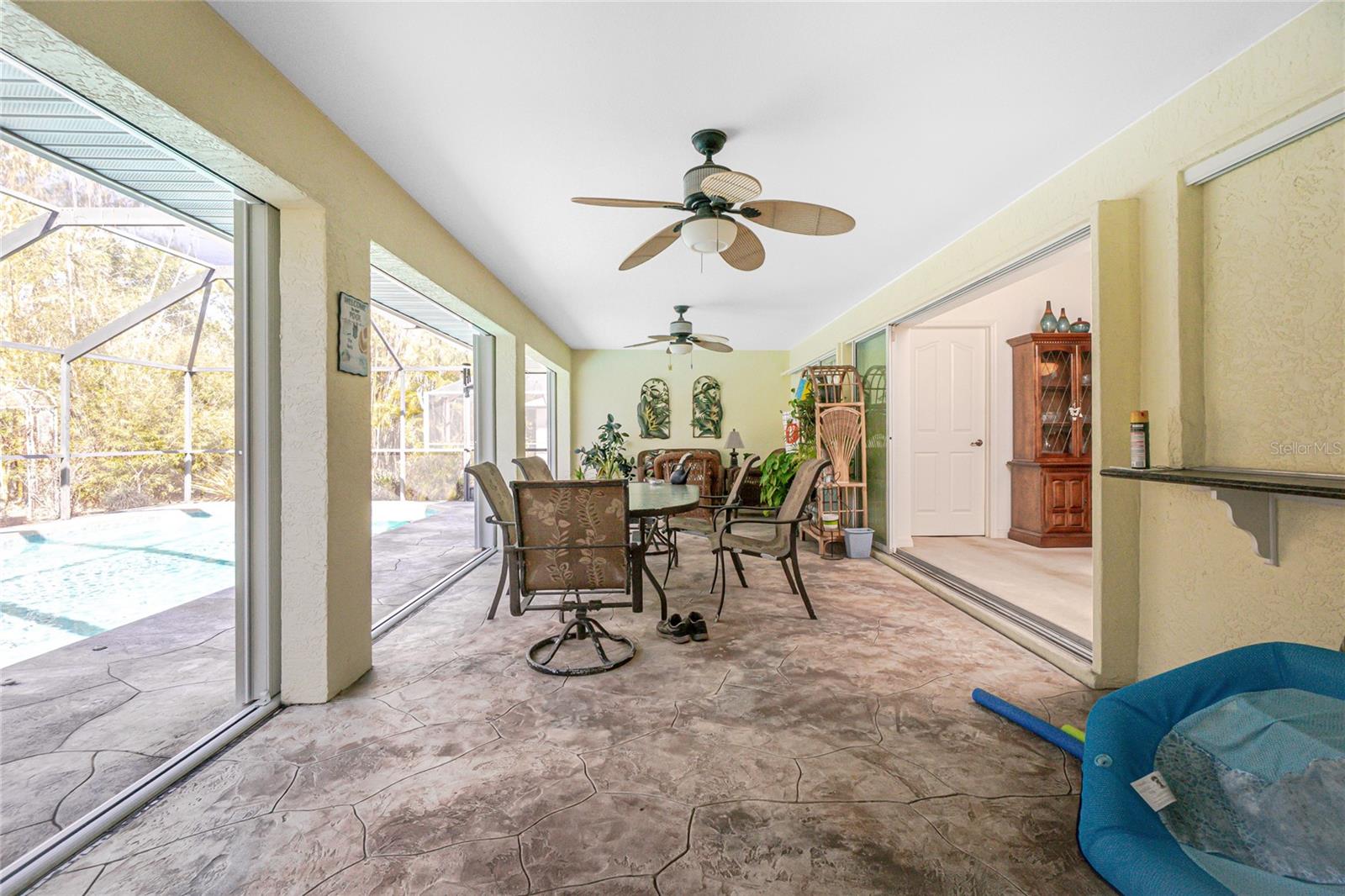 Welcome to your private oasis! This expansive 3-bedroom, 2-bathroom heated pool home sits on 3 lots already combined on the tax record to extra space and privacy!! Property is Not in a Flood Zone plenty of room for RV, boat, trailer or space to add on. Designed for both entertaining and quiet relaxation, this home features a meticulously planned split floor plan that balances open gathering spaces inside and out. The property features a newer roof (2023), HVAC (2019), Hurricane Shutters, and a large storage shed- perfect for tools and equipment. Inside, you'll find a bright open floor plan with vaulted ceilings large windows and modern finished throughout. Kitchen offers an abundance of cabinetry, stainless steel appliances, with breakfast nook that opens to the Family Room -Great for everyday living and hosting guests. The split floor plan offers privacy for you and guests, The owners suite offers 2 walk in closets and private bath, and the guest wing both bedrooms have walk in closets and share a full bath that opens to the pool area. The 3rd Bedroom could be an additional Suite and has a separate versatile studio room providing extra flexibility for remote work or creative space. The back lanai is a private retreat featuring a large covered area with access from Primary Bedroom, Living Room, Family Room, Guest Bath, and Bedroom 3 making it beautiful views from all rooms. Located in quiet, convenient neighborhood close to shopping, dining, boating, golf, airports, and Beautiful Gulf Beaches. This property has it all! Schedule your appointment Today!!!