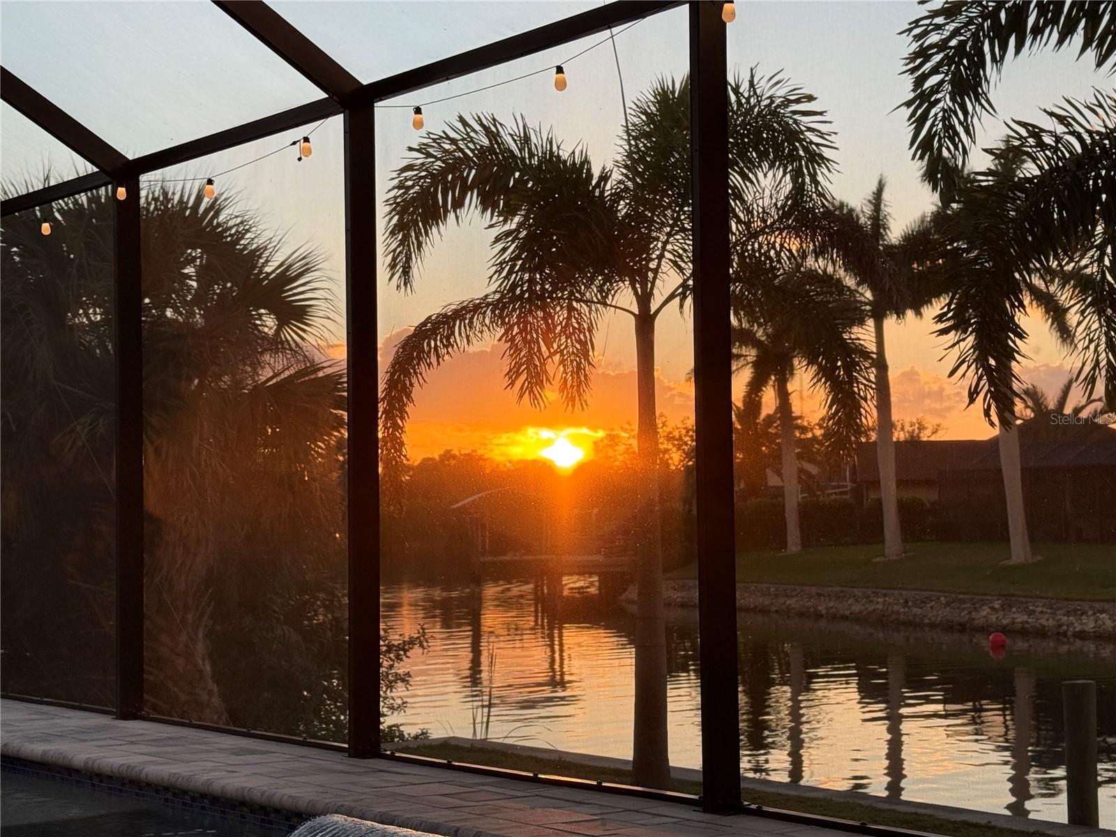Welcome to exceptional waterfront living where thoughtful design, premium upgrades, and Florida lifestyle come together seamlessly. This stunning 3-bedroom + flex room, 3 full bath home offers 2,324 square feet of beautifully appointed living space and is perfectly positioned across from a designated park, providing both privacy and picturesque surroundings. From the moment you arrive, the double front doors and Bahama shutters create striking curb appeal, complemented by upgraded landscaping and a meticulously maintained exterior. Inside, wood-look tile flows throughout the home, enhanced by plantation shutters, spray foam insulation for superior energy efficiency, and a striking coffered ceiling in the living room that adds architectural elegance. The chef’s kitchen is both functional and refined, featuring Bosch appliances, induction oven, leathered granite countertops, a custom hood above the stove, abundant workspace, and seamless flow for entertaining, while soft-close cabinets and drawers reflect the quality craftsmanship evident in every detail; a flexible bonus room adds versatility for a home office, den, or guest retreat. The spacious primary suite is a private retreat, highlighted by a luxurious steam shower, creating a true spa-like experience at home. Step outside to your private waterfront oasis. The heated saltwater gunite and tile pool and spa are controlled by iAqualink for effortless enjoyment. The extended lanai is plumbed for a future outdoor kitchenette and features roll-down sunshades, café lighting within the screened cage, and generous space for year-round outdoor living. Boating enthusiasts will appreciate the extended dock complete with electric and plumbing to rinse your boat, along with a 10,000 lb boat lift with remote control and canopy. Irrigation is sourced directly from the canal for cost-efficient lawn maintenance. The extended 3-car garage features maintenance-free Swisstrax flooring and a convenient keypad entry, offering both durability and ease of access. With being generator ready, hurricane impact windows and doors, premium finishes throughout, and a location that balances tranquility with recreation, this home delivers the ultimate Florida waterfront lifestyle. Conveniently located halfway between Sarasota and Fort Myers, you’ll enjoy access to world-class fishing, championship golfing, premier shopping and dining, and the pristine beaches of Southwest Florida. Paradise awaits you.