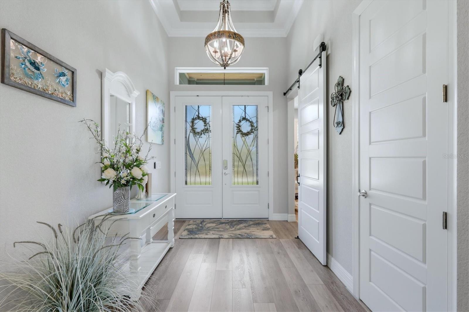 Step into the perfect fusion of modern coastal elegance and country coastal charm in this stunning 2022-built 3/2/3 waterfront pool home, offering 2,062 sq ft of refined living space (3,280 total). Thoughtfully designed for comfort and privacy, two of the three bedrooms are full suites with ensuite bath and walk-in/thru closets—a rare and luxurious feature. Nestled in a quiet, peaceful pocket of Port Charlotte, this home delivers the serenity of nature with the sophistication of today’s best design trends. A welcoming large front porch with a beautifully stained tongue and groove ceiling sets the tone, while concrete pavers unify the front driveway, walkway, front porch, back porch, and pool area for a cohesive, upscale look. The expansive covered back lanai, also finished in stained tongue and groove, pairs with the heated saltwater pool with oversized splash area to create a breezy, resort style outdoor living experience. Enjoy sun and shade seating, an outdoor shower, and a stylish black metal fenced yard. Just steps away, your composite dock with covered boat lift offers immediate access to the Myakka River, Charlotte Harbor, and the Gulf—a boater’s dream. Inside, the home blends clean modern lines with warm, rustic touches. Luxury vinyl plank flooring, 6-panel wood doors, custom wood shelving in every closet, and shiplap accents pair beautifully with sliding barn doors and a real wood-burning fireplace, creating a relaxed yet elevated atmosphere. The zero corner sliding glass door opens the entire living space to the screened lanai, blurring the line between indoors and out. The kitchen is a true showpiece, featuring upgraded appliances, a built in multifunction oven (convection, air fry, bake), a built in microwave above, induction cooktop, huge island with breakfast bar, stone counters, dry bar, walk in pantry, and abundant cabinetry—perfect for both everyday living and entertaining. Architectural details shine throughout, including tray ceilings in both suites and the living room. Practical luxury is built in: whole home reverse osmosis system, 22KW Briggs & Stratton generator with 250 gallon buried propane tank, tankless water heater, rain gutters, irrigation system, and a 3 car garage with 12' ceilings and open cell foam insulation. The laundry room offers a utility sink, stone counter, and built in cabinetry for added convenience. This home captures the essence of modern coastal living with a warm country edge—inviting, stylish, and designed for effortless waterfront enjoyment. Call today for a private showing.