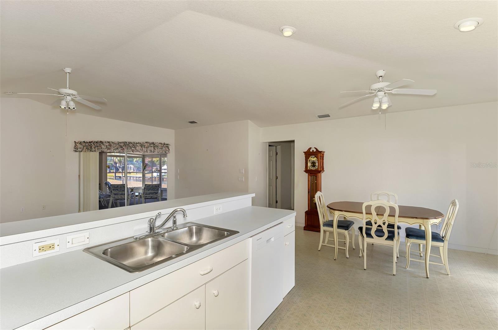 One or more photo(s) has been virtually staged. Come and see this Gem in the Gardens of Gulf Cove Community. This home is situated on 106 feet of waterfront footage, it boasts cathedral ceilings, a Florida room/patio, and a split floor plan. The Primary bedroom has access out to the Florida room, as well as an en suite with a walk in shower and a walk in closet. The Water Heater and Roof are in the process of being replaced so you will have comfort in knowing that there is a brand new 2026 roof and water heater. A/C was replaced in 2022. Call today for your showing.