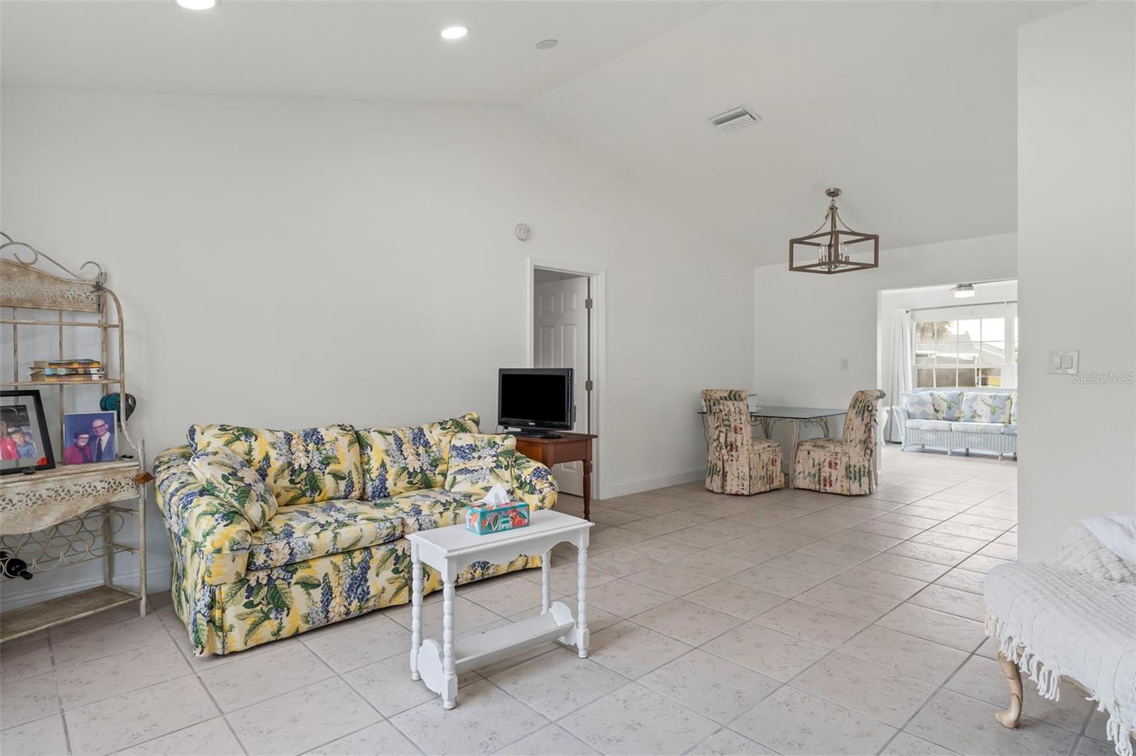 Welcome to this charming 2-bedroom, 2-bathroom home nestled in the serene neighborhood of Gardens of Gulf Cove. With 1,299 square feet of living space, this residence offers a perfect blend of comfort and functionality. Upon entering, you are greeted by a cozy living room with vaulted ceilings, creating an inviting atmosphere for relaxation or entertainment. The open layout seamlessly transitions into the dining area, making it ideal for gatherings with friends and family. Attached to the living room is an amazing sunroom perfect for reading, watching TV and many other activities. The recently renovated kitchen boasts modern appliances, and ample cabinet space. Both bathrooms were also remodeled! A new roof and AC were installed in July of 2023 providing peace of mind. Residents of Gardens of Gulf Cove have access to 2 community pools, clubhouse, fitness center and multiple sport activities such as pickleball, tennis, bocce and shuffleboard. GOGC also host many social events each month in the clubhouse. This community is close to local beaches, shops, restaurants and many golf courses!