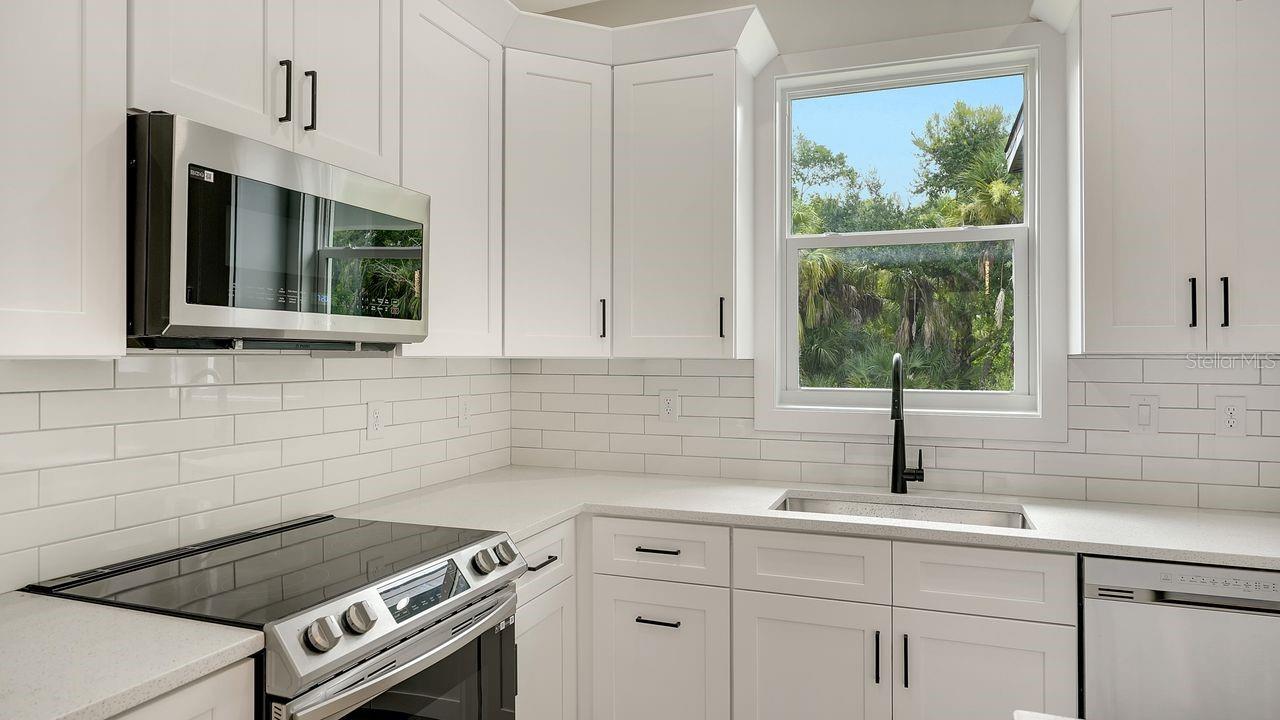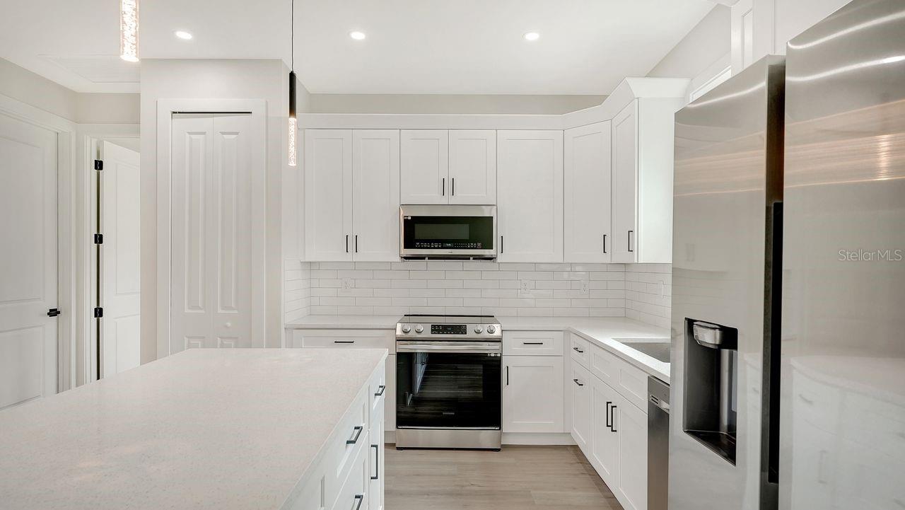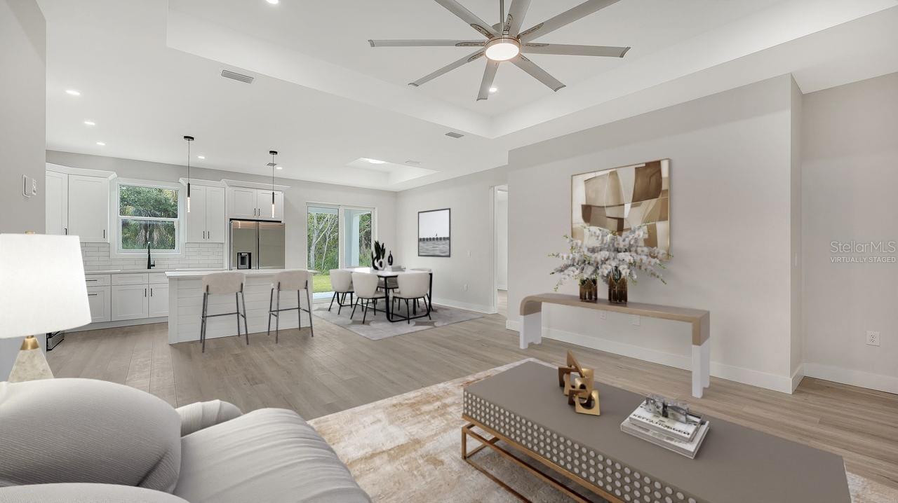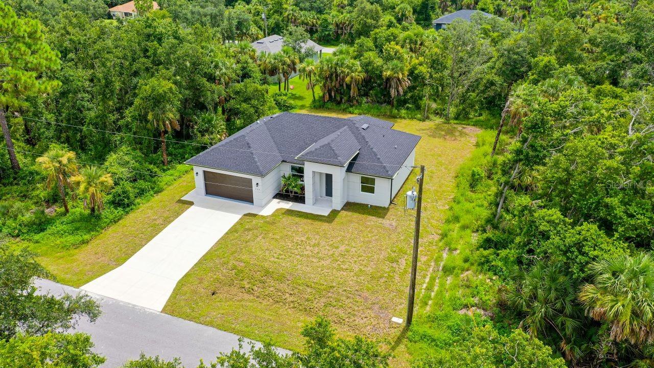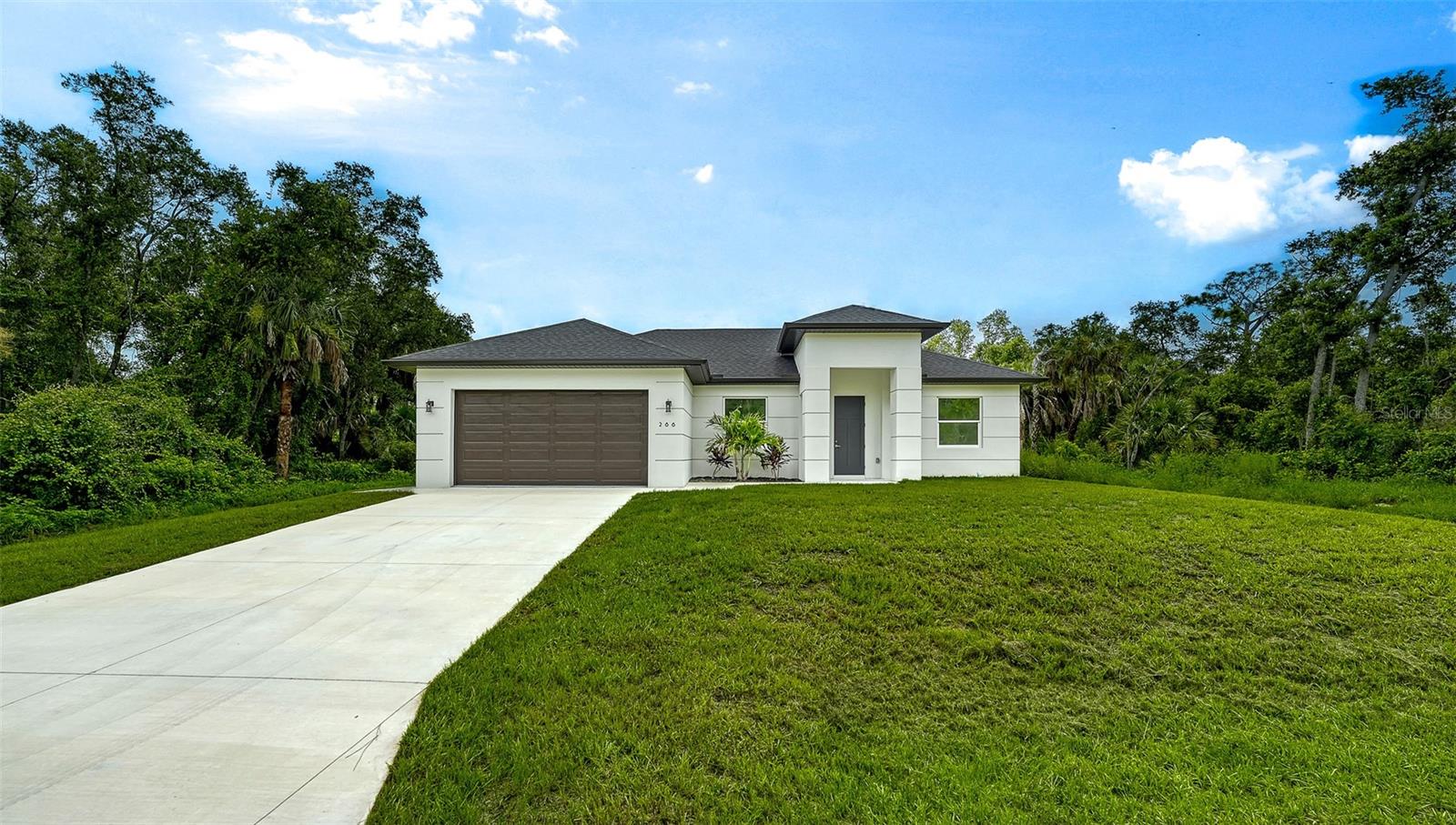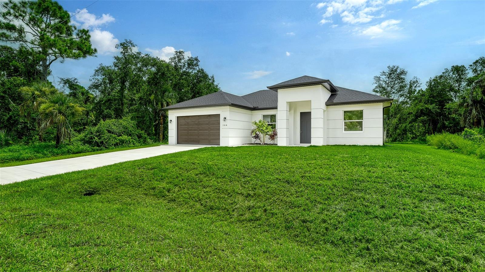 Discover the epitome of modern living in this stunning NEW CONSTRUCTION home in the most tranquil part of Port Charlotte with NO DEED RESTRICTIONS, surrounded by nature. Best of all, it’s NOT IN A FLOOD ZONE and has NO CDD.This 3-bedroom, 2-bathroom masterpiece is MOVE-IN READY and designed with a keen eye for luxury and detail. Nestled in a private and serene setting, this home offers the perfect retreat while being conveniently close to pristine beaches, top-notch restaurants, and chic shops. Step inside and be greeted by an impressive entryway that sets the tone for the rest of the home. The soaring 9’4 ceilings, with elegant tray ceilings in the primary bedroom and living room, create an open and airy atmosphere. The SLEEK FLAT SAND FINISH STUCCO exterior and LEVEL 5 interior drywall finish provide a seamless look. The gourmet kitchen is a chef's dream, featuring premium stainless-steel appliances, tall 42-inch cabinets with crown molding, and exquisite quartz countertops. The subway tile backsplash adds a touch of classic elegance, while modern fixtures and hardware complete the contemporary aesthetic. LUXURY PLANK TILE FLOORING runs throughout the home, offering both beauty and durability. The spacious primary suite is a sanctuary of comfort, boasting a large walk-in shower with floor-to-ceiling tile. The bathrooms are finished with the highest attention to detail, providing a spa-like experience in your own home. The epoxy-painted garage and lanai floors offer style, perfect for a clean and polished look. The home is equipped with HURRICANE IMPACT WINDOWS and DOORS for peace of mind, and an underground power connection ensures reliability. Located just minutes from the vibrant Wellen Park area, you'll have access to a plethora of recreational activities, shopping, dining, and entertainment options. Imagine enjoying sunset walks on nearby beaches or exploring the charming local boutiques and cafes. This is more than just a home; it's a lifestyle. Experience the perfect blend of luxury, convenience, and modern elegance in this exceptional Port Charlotte property. Don't miss your chance to own this slice of paradise.