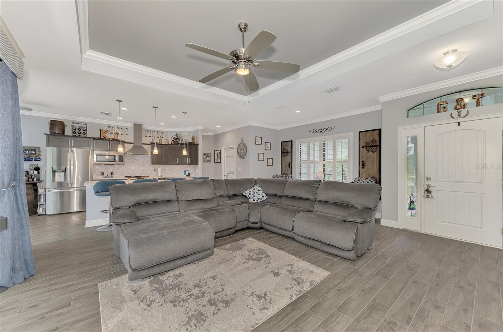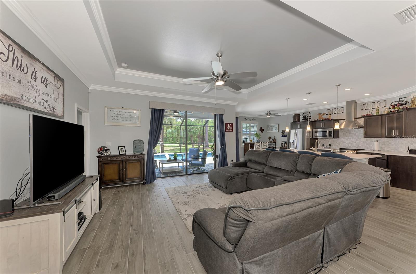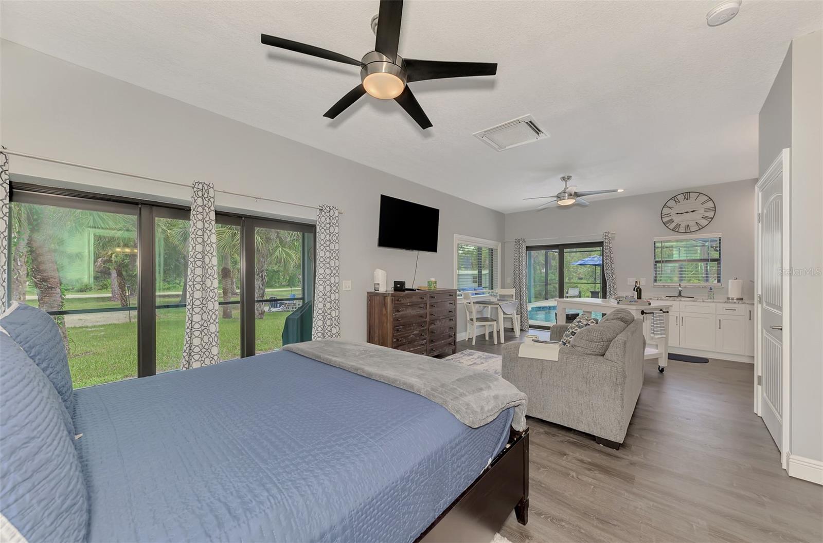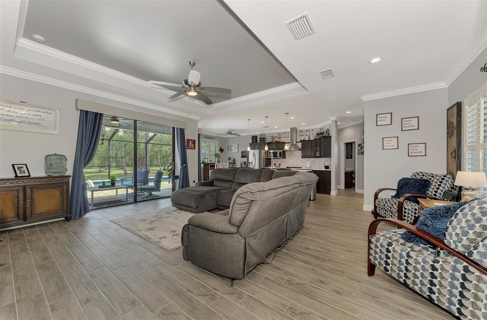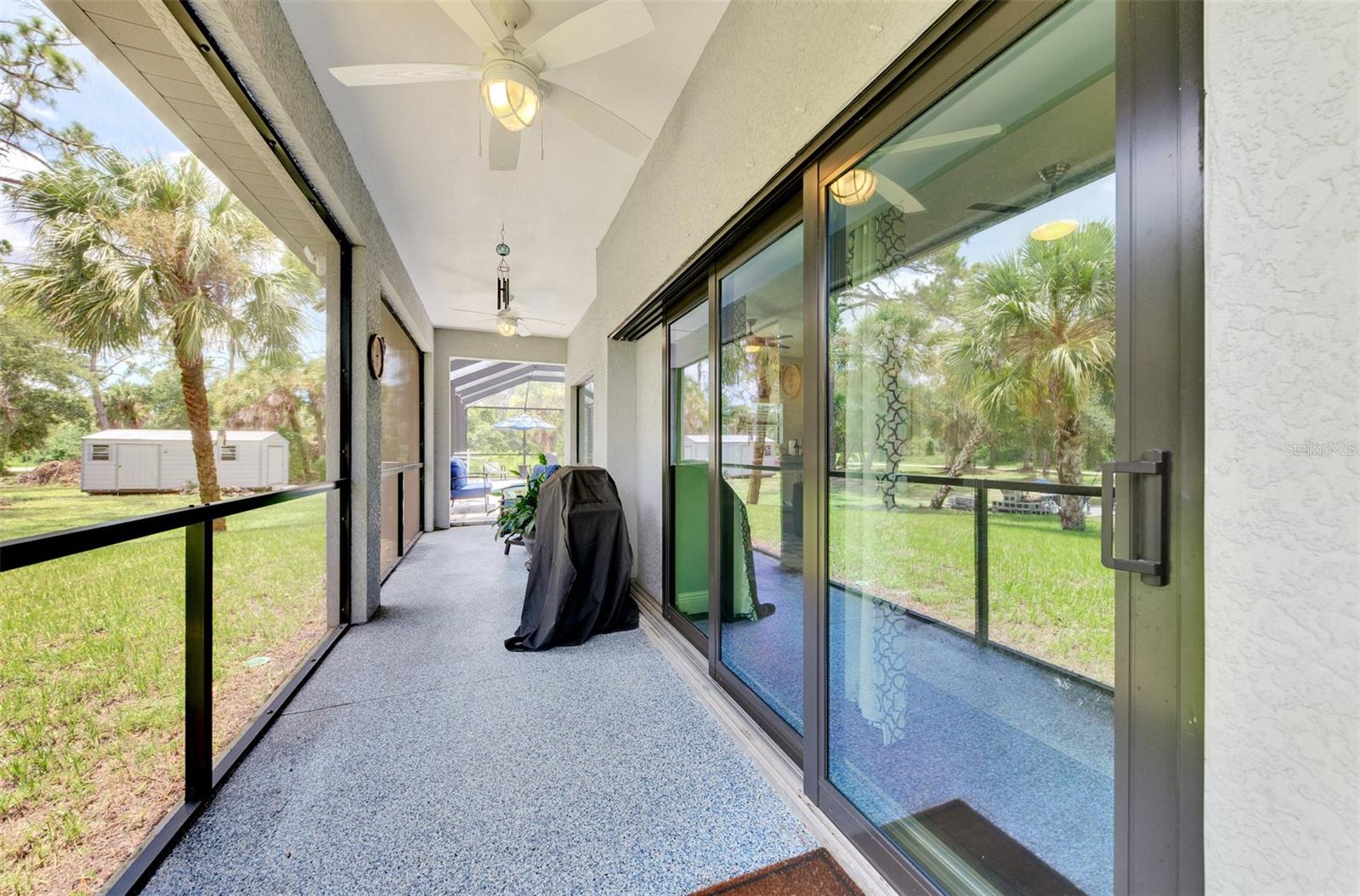 This Exceptional Multi-Generational Home Will Wow You! Welcome to your dream home on four spacious lots. This stunning property features a main house with three bedrooms and two baths, plus a one-bedroom, one-bath mother-in-law suite with a kitchenette, living room, private patio, washer and dryer, and separate entrance—ideal for extended family or as an income-producing unit. Inside, 11 ft high ceilings with tray accents in the living room and primary bedroom create an airy feel. Ceiling fans throughout the home ensure comfort. Plantation shutters adorn all windows. The primary suite offers two walk-in closets (one with storage shelving), a luxurious walk-through shower with multiple shower heads, and a split double vanity. The modern kitchen boasts quartz countertops, solid wood soft-close cabinets, and stainless steel appliances. An indoor laundry room with two closets provides ample storage. Step out through the glass pocket sliders onto the beautiful screened lanai with pavers. Cool off in the refreshing private solar heated swimming pool, or enjoy your hobbies and entertaining in the huge back yard with fire ring. Bring all the toys! The property includes additional car, boat, and RV parking with a 50-amp hookup, an 18x12 shed with power, mature landscaping, outdoor lighting, and an extended three-car driveway. Public water, whole home solar power, and a generator connection to the panel add convenience. Located minutes from shopping, dining, Charlotte harbor, and I-75, this home offers both comfort and convenience. Contact us today to schedule a private showing!