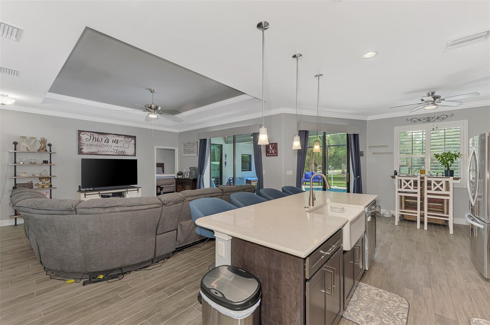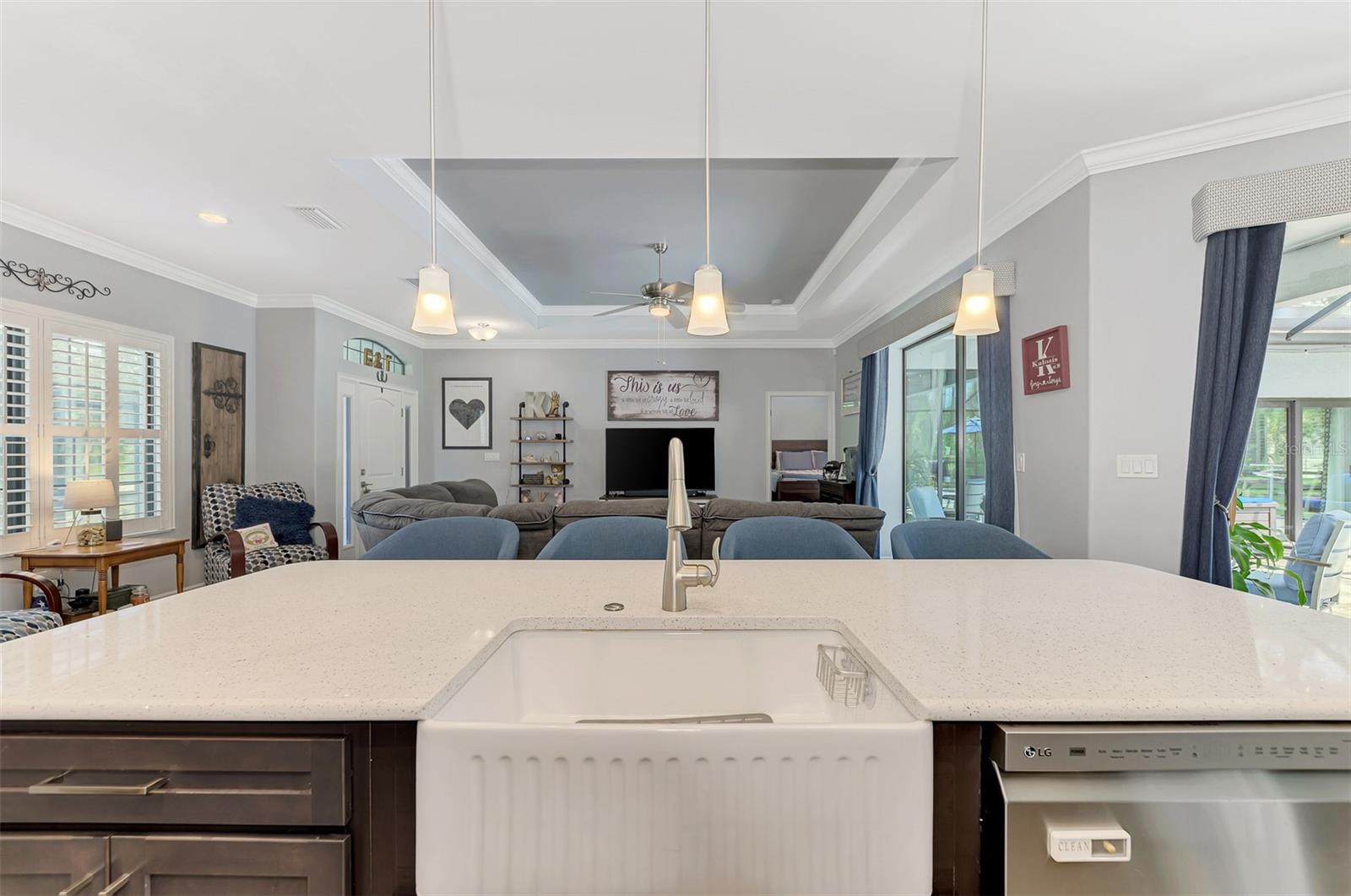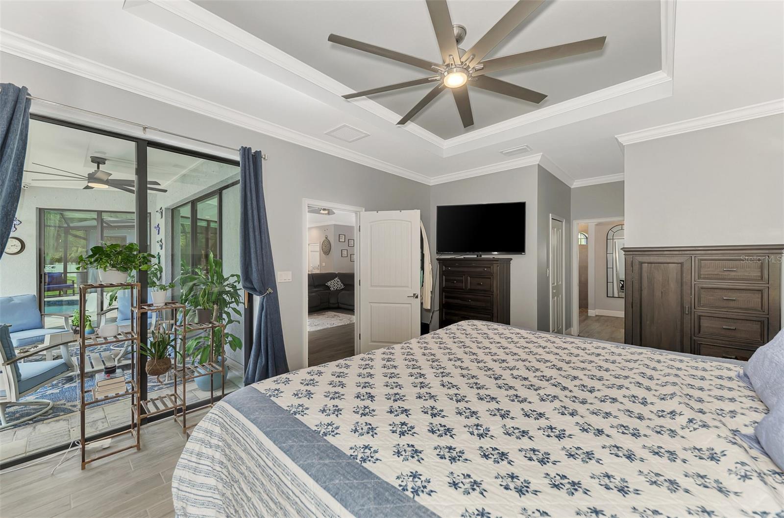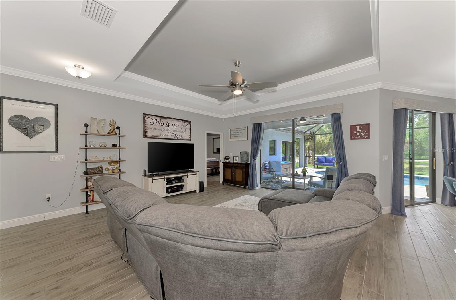 This Exceptional Multi-Generational Home Will Wow You! Welcome to your dream home on four spacious lots. This stunning property features a main house with three bedrooms and two baths, plus a one-bedroom, one-bath mother-in-law suite with a kitchenette, living room, private patio, washer and dryer, and separate entrance—ideal for extended family or as an income-producing unit. Inside, 11 ft high ceilings with tray accents in the living room and primary bedroom create an airy feel. Ceiling fans throughout the home ensure comfort. Plantation shutters adorn all windows. The primary suite offers two walk-in closets (one with storage shelving), a luxurious walk-through shower with multiple shower heads, and a split double vanity. The modern kitchen boasts quartz countertops, solid wood soft-close cabinets, and stainless steel appliances. An indoor laundry room with two closets provides ample storage. Step out through the glass pocket sliders onto the beautiful screened lanai with pavers. Cool off in the refreshing private solar heated swimming pool, or enjoy your hobbies and entertaining in the huge back yard with fire ring. Bring all the toys! The property includes additional car, boat, and RV parking with a 50-amp hookup, an 18x12 shed with power, mature landscaping, outdoor lighting, and an extended three-car driveway. Public water, whole home solar power, and a generator connection to the panel add convenience. Located minutes from shopping, dining, Charlotte harbor, and I-75, this home offers both comfort and convenience. Contact us today to schedule a private showing!