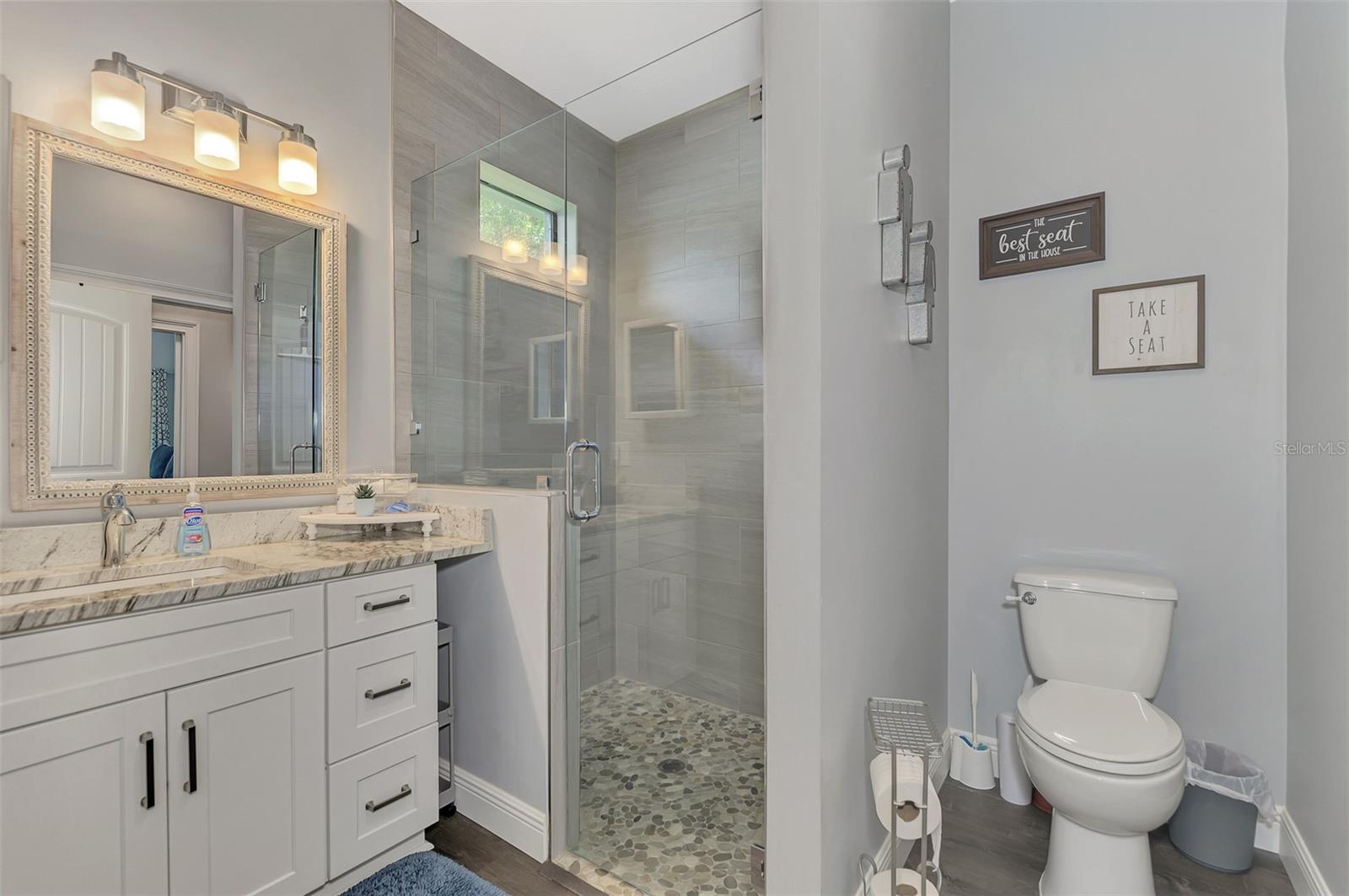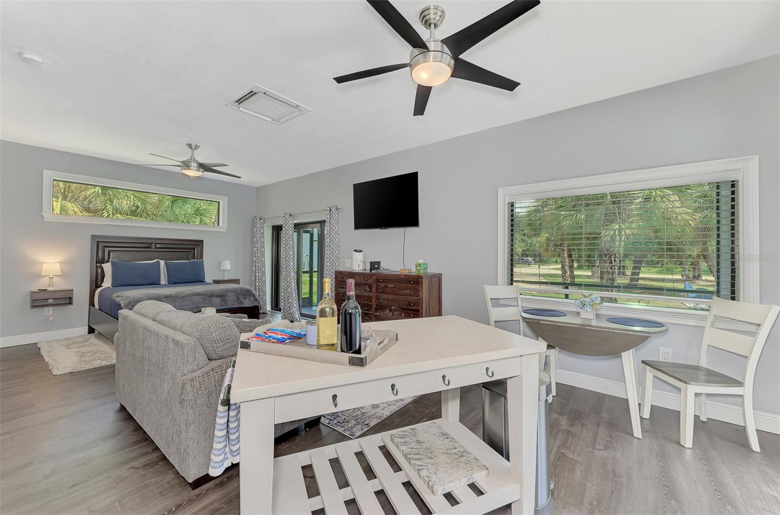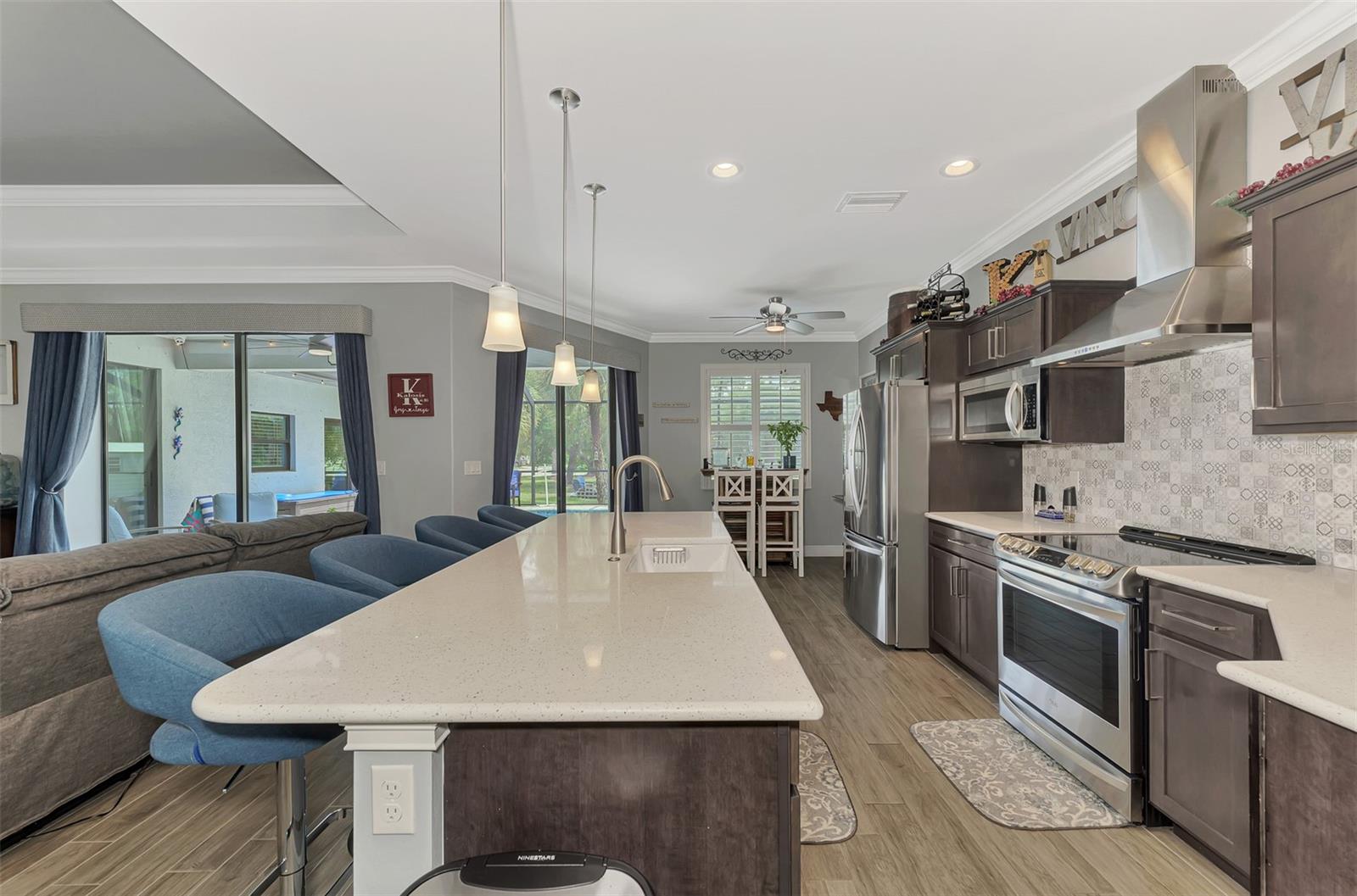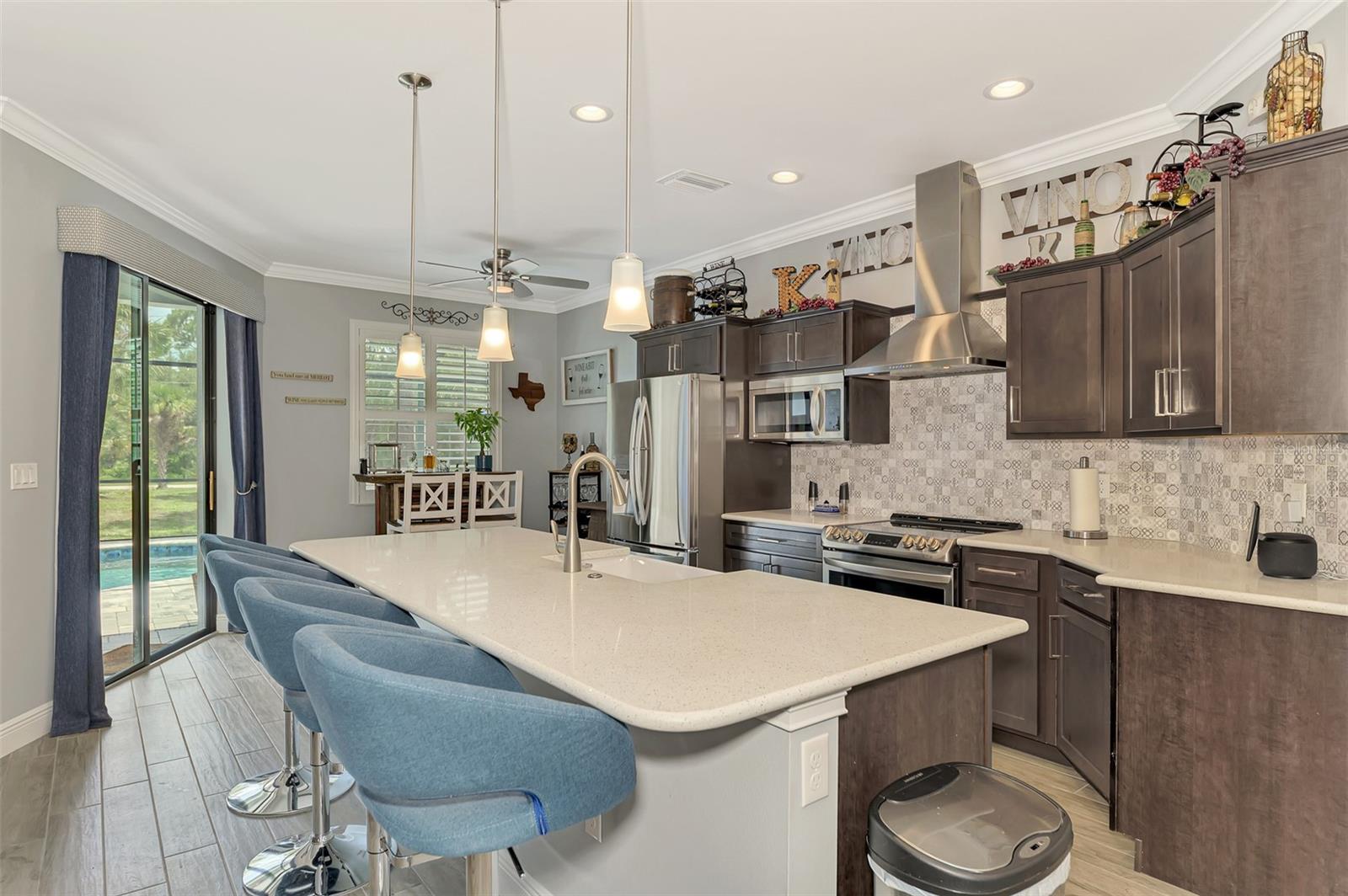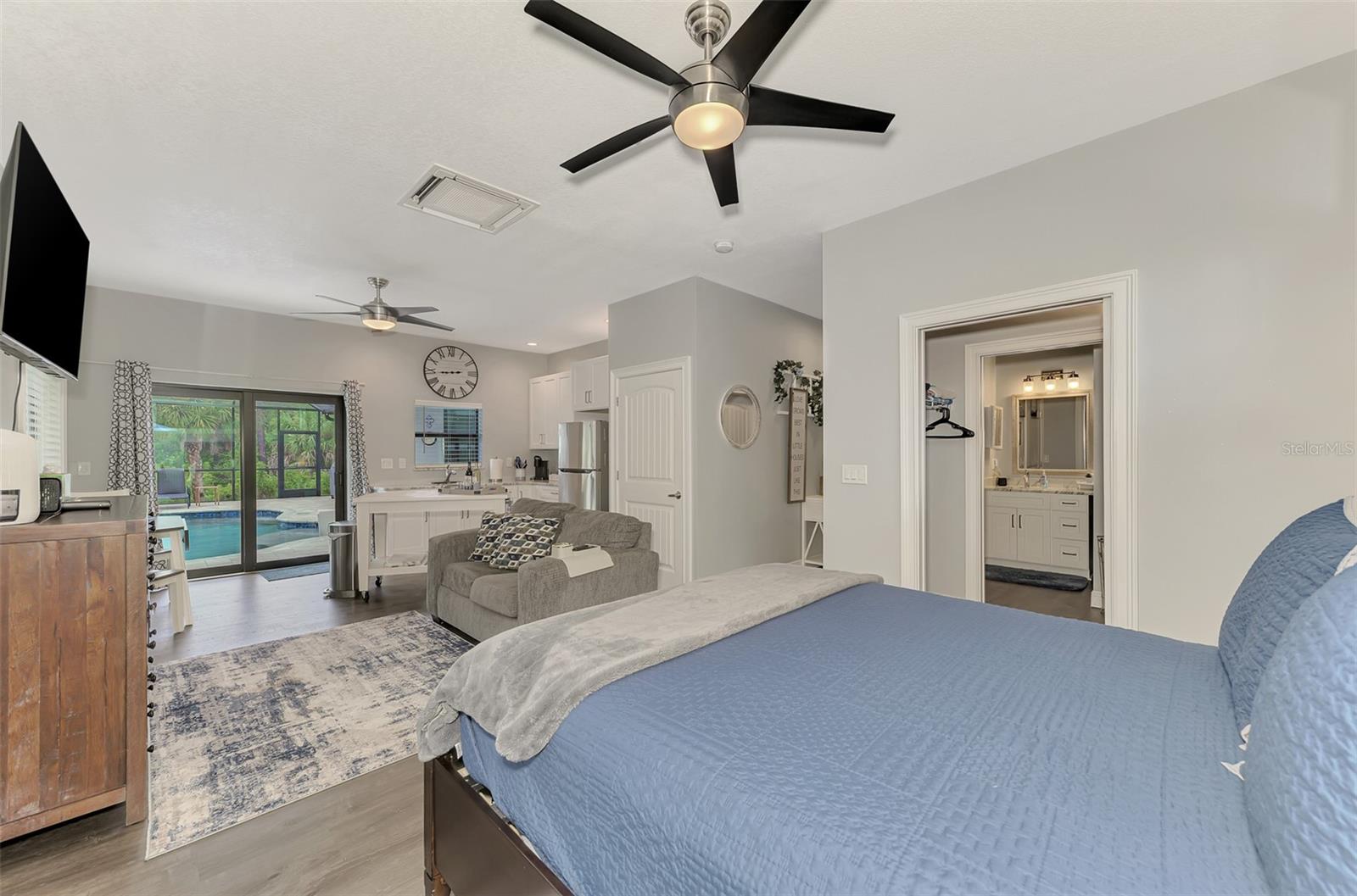 This Exceptional Multi-Generational Home Will Wow You! Welcome to your dream home on four spacious lots. This stunning property features a main house with three bedrooms and two baths, plus a one-bedroom, one-bath mother-in-law suite with a kitchenette, living room, private patio, washer and dryer, and separate entrance—ideal for extended family or as an income-producing unit. Inside, 11 ft high ceilings with tray accents in the living room and primary bedroom create an airy feel. Ceiling fans throughout the home ensure comfort. Plantation shutters adorn all windows. The primary suite offers two walk-in closets (one with storage shelving), a luxurious walk-through shower with multiple shower heads, and a split double vanity. The modern kitchen boasts quartz countertops, solid wood soft-close cabinets, and stainless steel appliances. An indoor laundry room with two closets provides ample storage. Step out through the glass pocket sliders onto the beautiful screened lanai with pavers. Cool off in the refreshing private solar heated swimming pool, or enjoy your hobbies and entertaining in the huge back yard with fire ring. Bring all the toys! The property includes additional car, boat, and RV parking with a 50-amp hookup, an 18x12 shed with power, mature landscaping, outdoor lighting, and an extended three-car driveway. Public water, whole home solar power, and a generator connection to the panel add convenience. Located minutes from shopping, dining, Charlotte harbor, and I-75, this home offers both comfort and convenience. Contact us today to schedule a private showing!