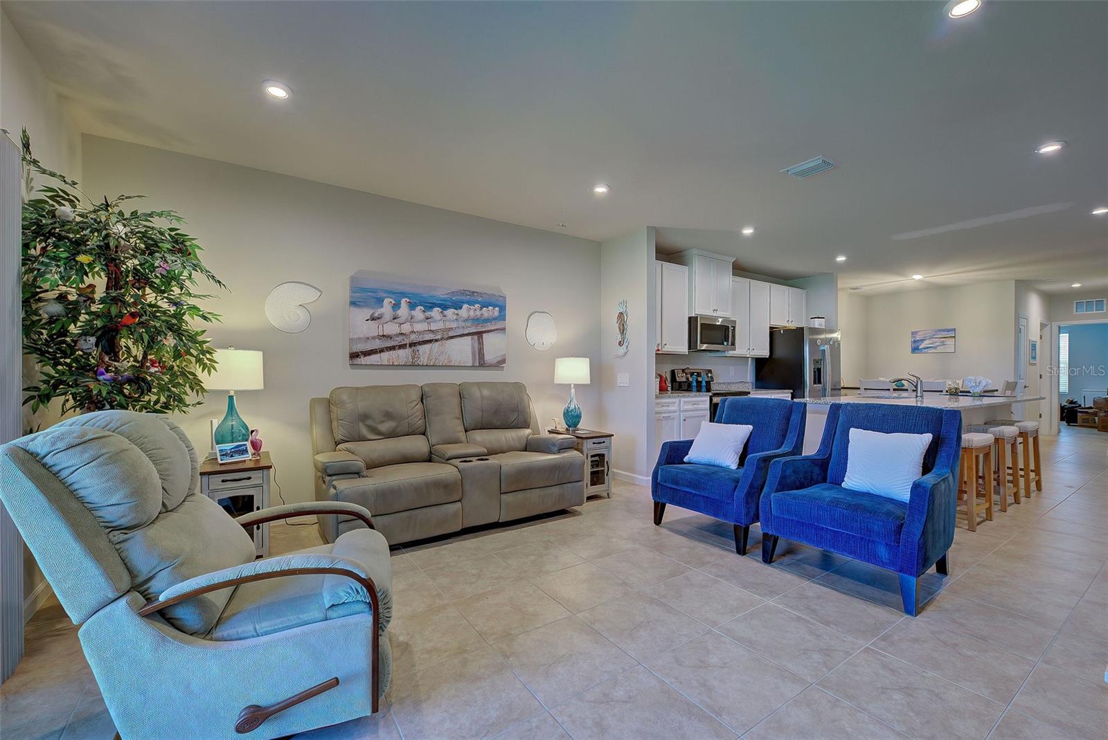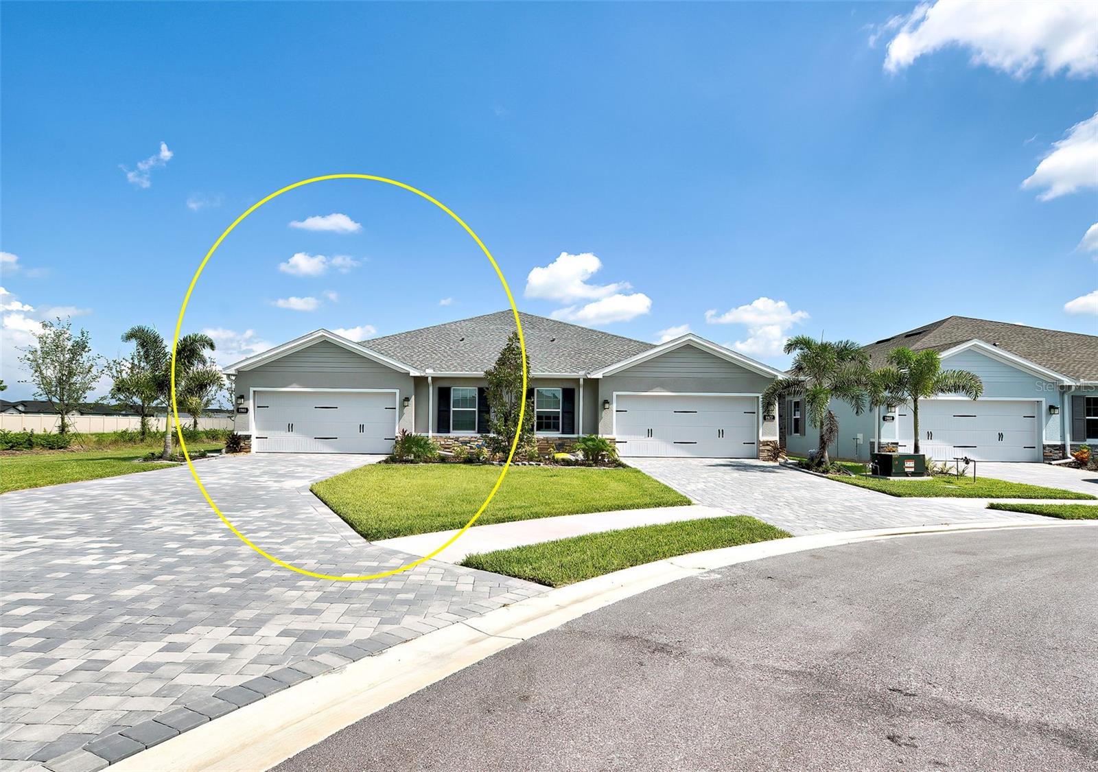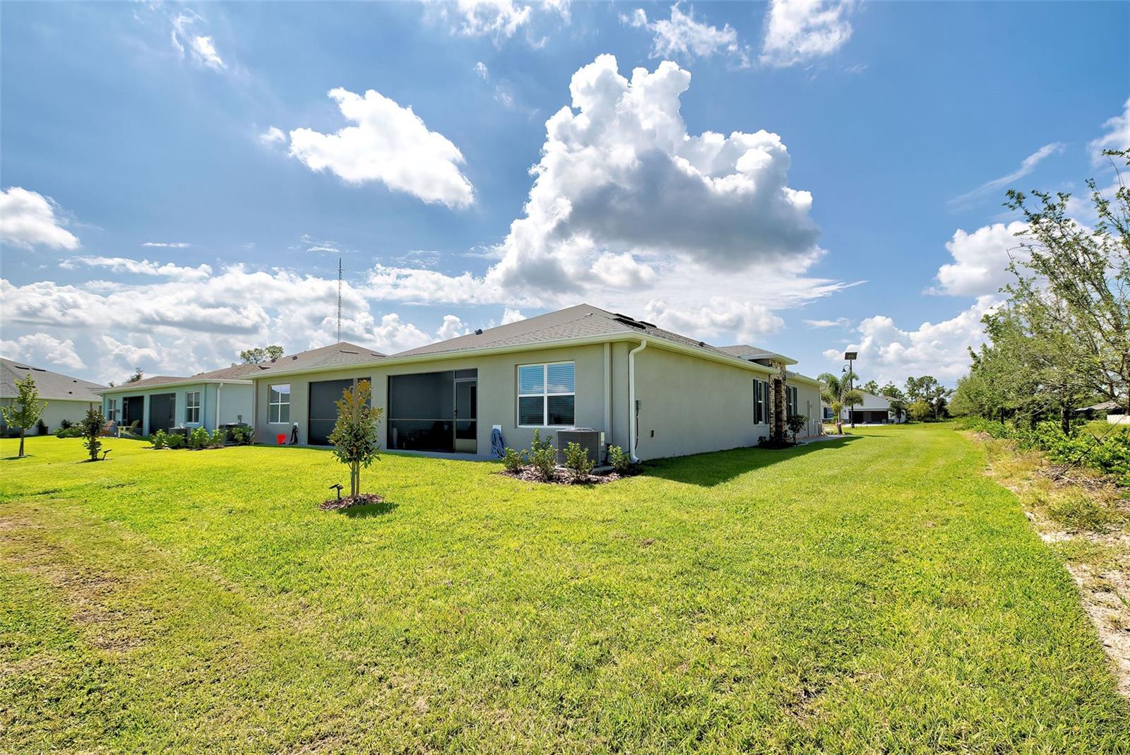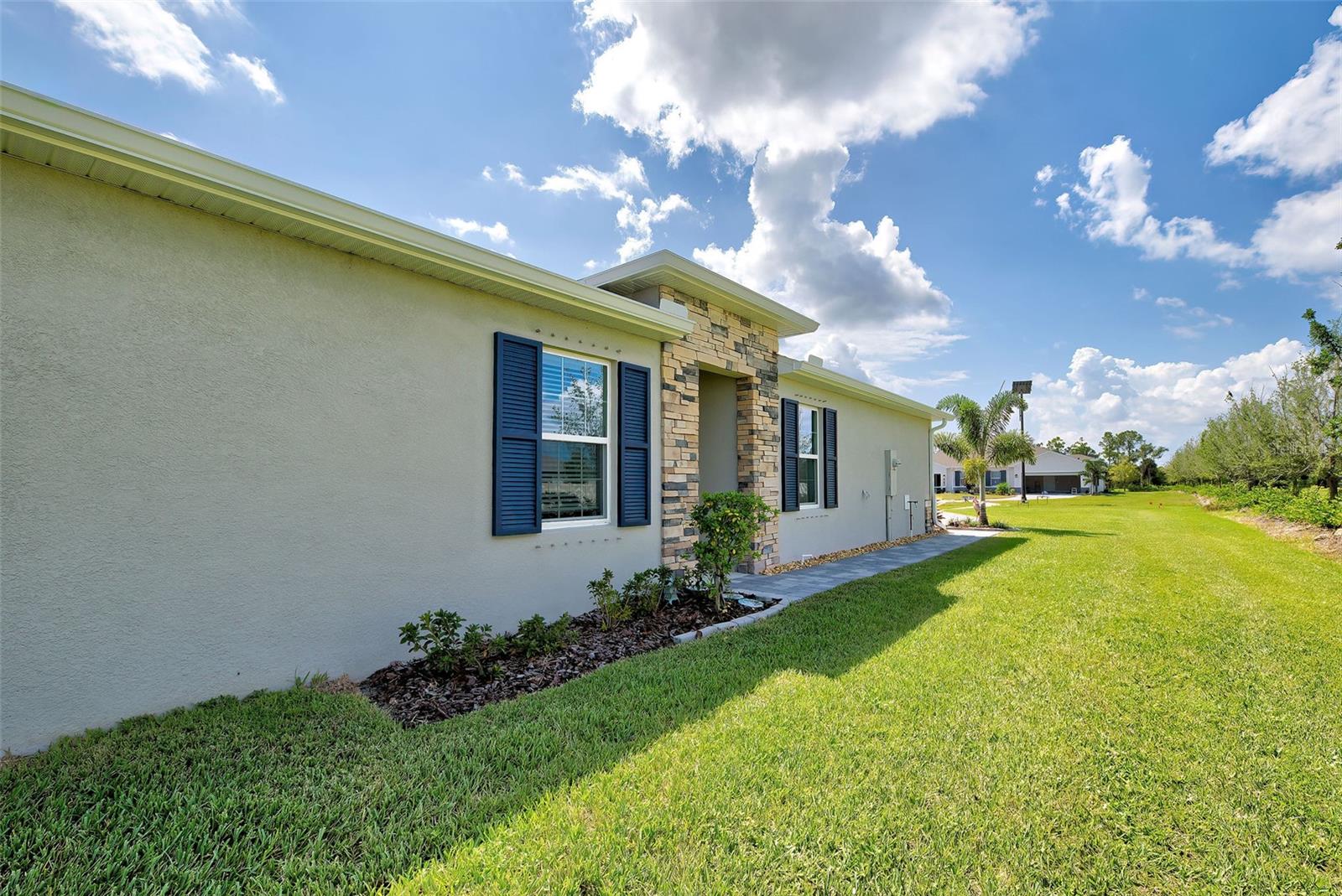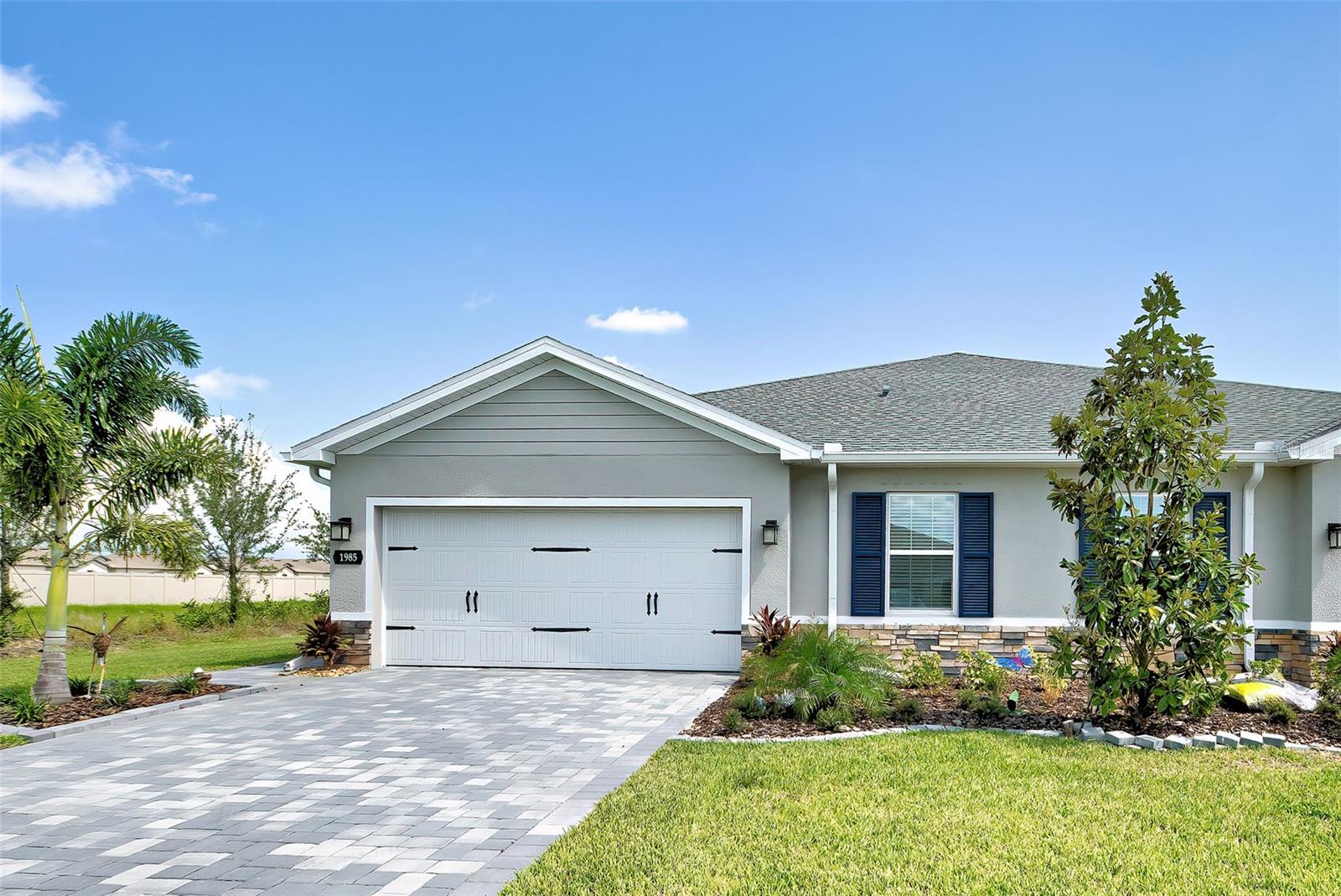 Beautiful, still under Builder's Warranty, barely lived in 2 bedroom, 2 bath Villa with an additional flex room is waiting for you within the area's first master-planned community surrounding Centennial Park. If you’re seeking a relaxed lifestyle just 20 miles from premier Gulf beaches, this villa is perfect for you! Enjoy the stunning pond view from the lanai, the perfect place to relax and unwind. You are welcomed into the home with a handsome paver driveway and walkway with mature landscaping. The front door is tastefully framed by brickwork. Once indoors, the home boasts a spacious open floor plan, combining the great room, kitchen (with oversized island) and dining room. The home is completely tiled. The primary bedroom has an ensuite bathroom and a large walk in closet. The second bedroom and bath are located on the other end of the home, ensuring privacy for both owner and guests. Enjoy peace of mind this villa is NOT IN A FLOOD ZONE, low homeowners' insurance, and a modest HOA fee of $128 a month, which covers comprehensive lawn care, roof replacement, and exterior painting. For those who love an active lifestyle, Centennial Park has it all: a pool with various aquatic exercise classes, a gym, 5 miles of walking and biking trails, a frisbee golf course, a playground park, soccer fields, and volleyball courts, to name a few. With so many amenities, you’ll never be short of activities to stay fit and engaged. Usage fees are low - $2.00 to drop in, $40 for 6 months and an annual pass for $75. See more at their website - https://www.charlottecountyfl.gov/departments/community-services/recreation-pools/recreation-centers/centennial-park-recreation-center.stml. Don't miss the opportunity to own the gorgeous villa. Set up your showing as soon as you can!