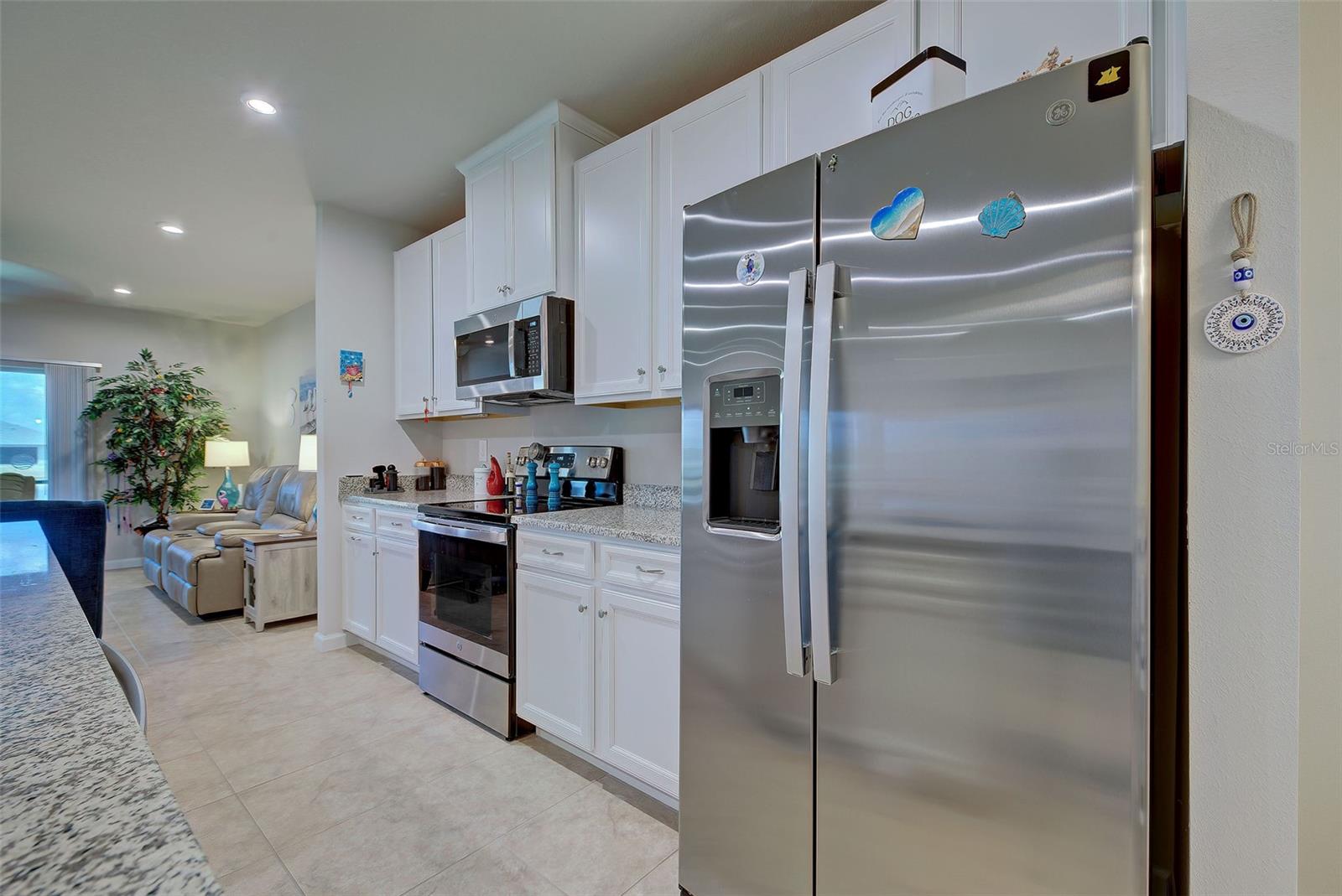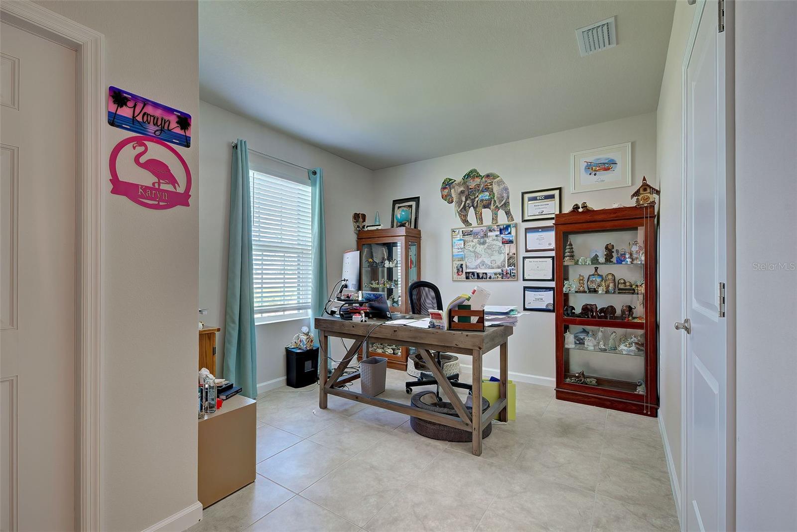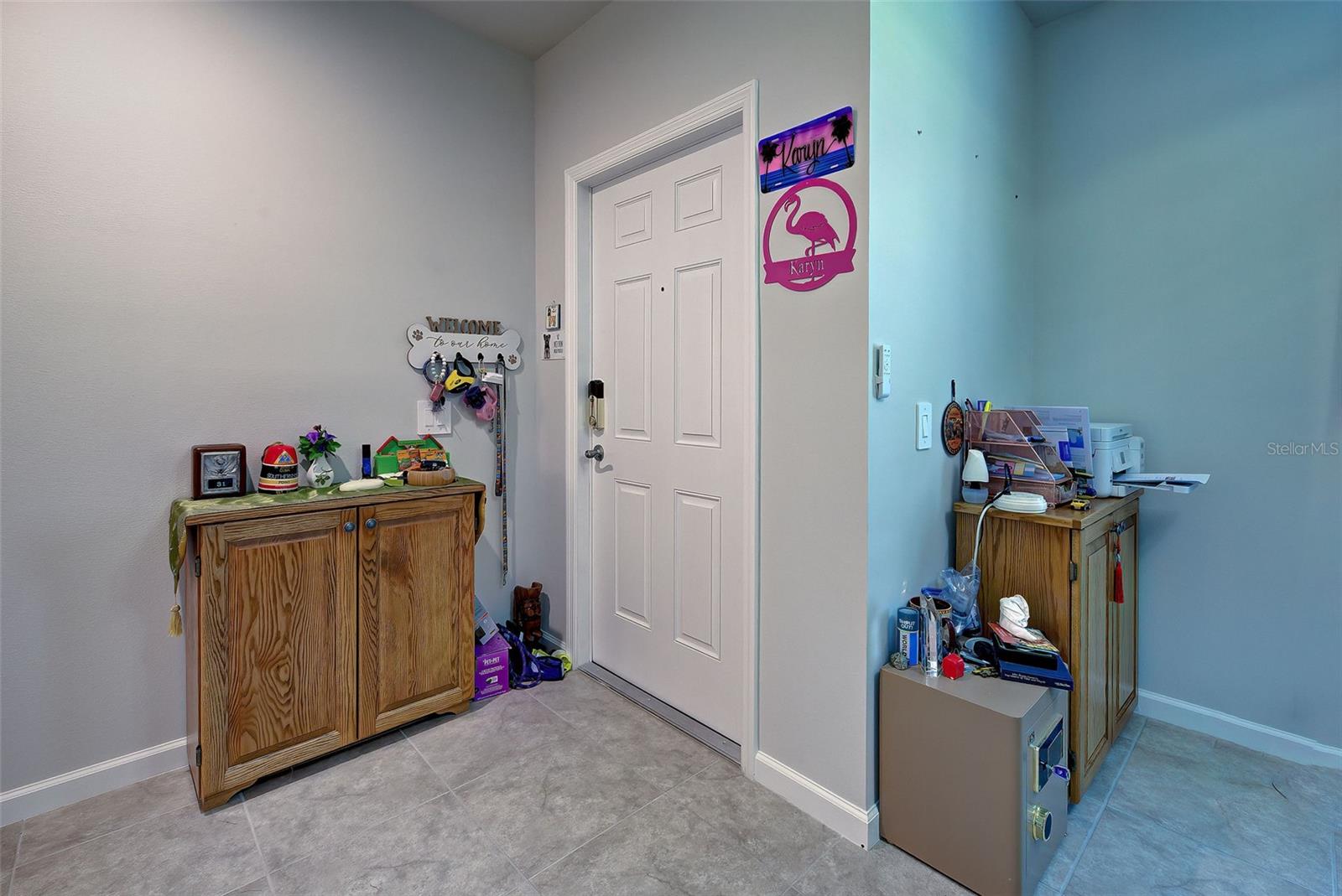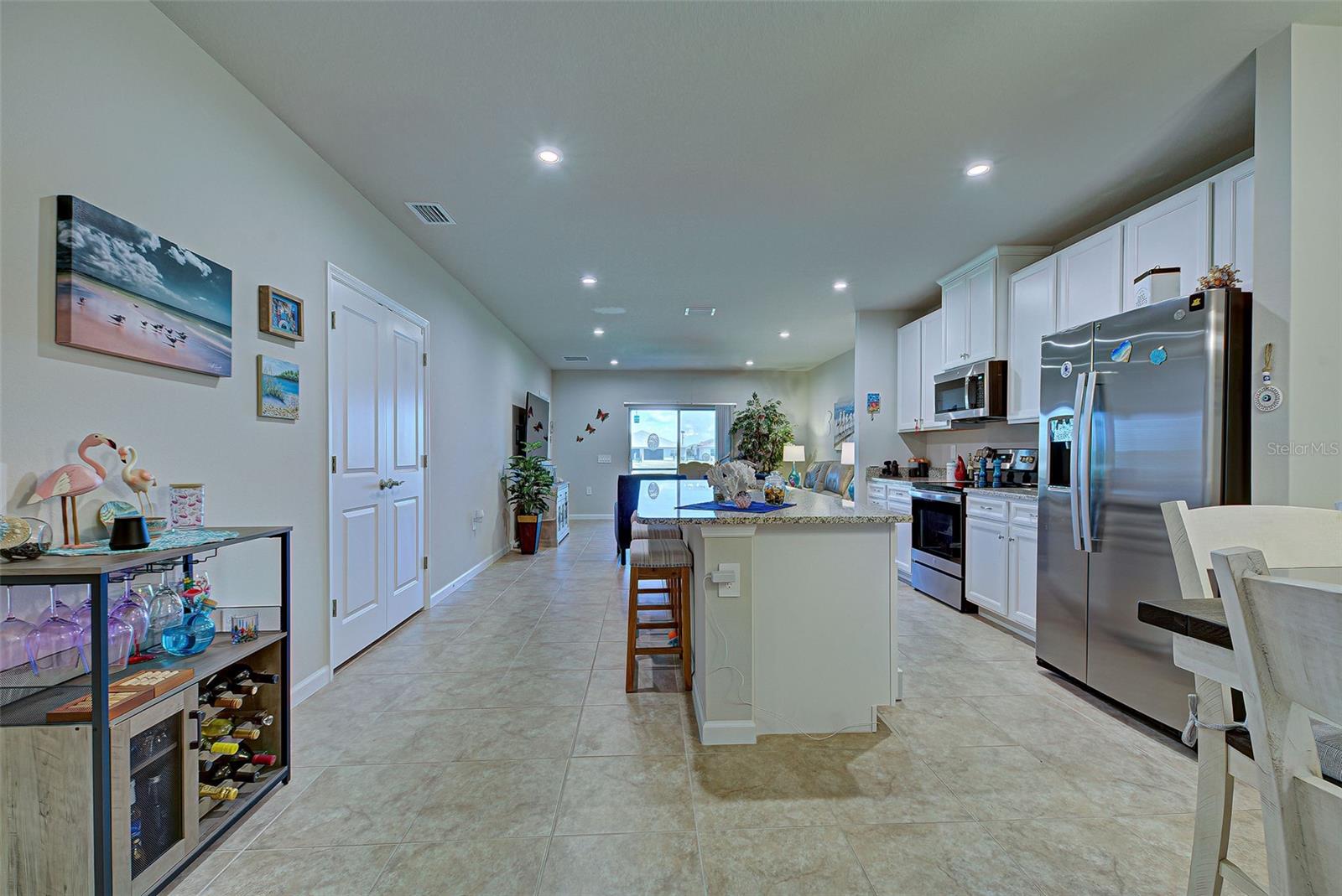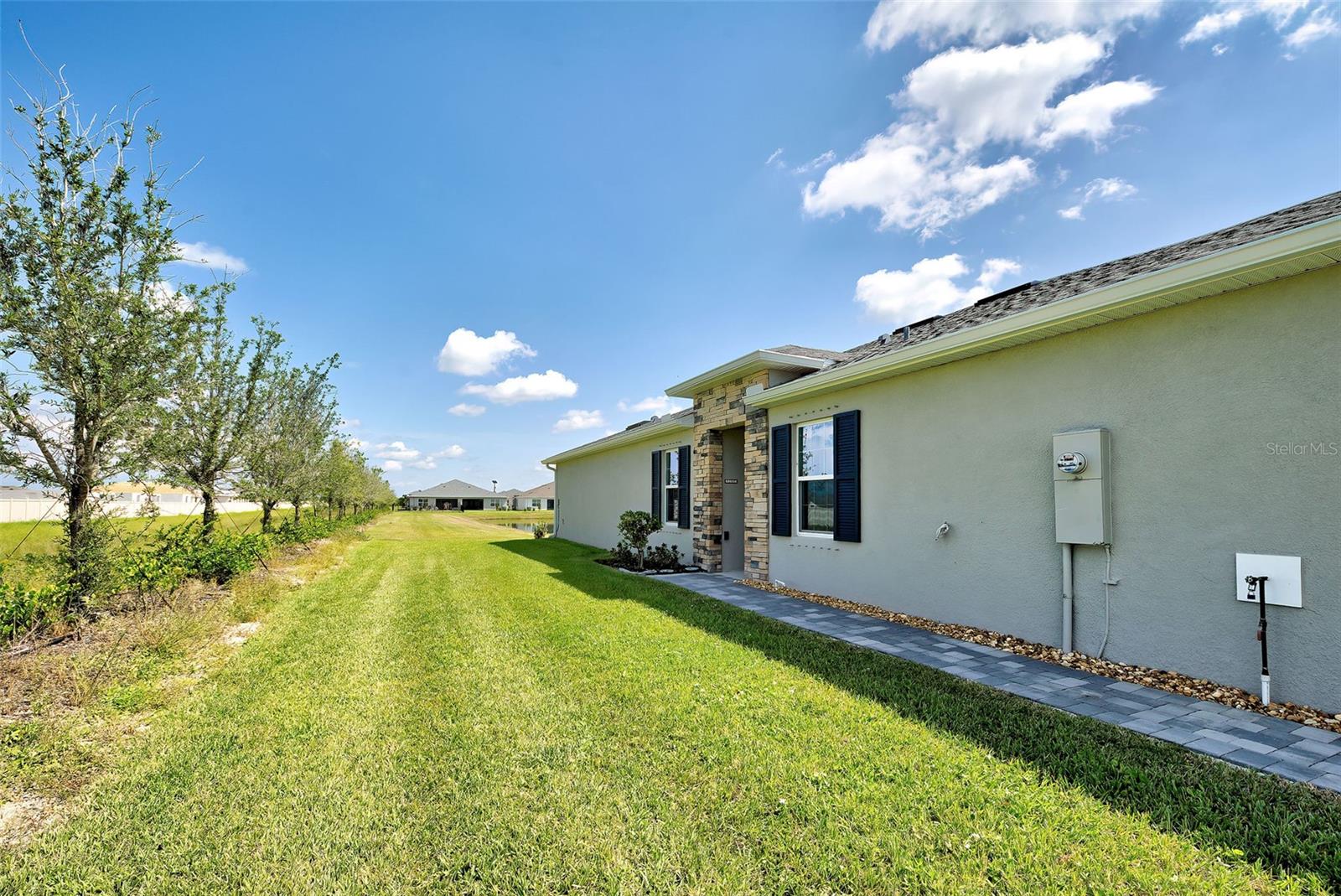 Beautiful, still under Builder's Warranty, barely lived in 2 bedroom, 2 bath Villa with an additional flex room is waiting for you within the area's first master-planned community surrounding Centennial Park. If you’re seeking a relaxed lifestyle just 20 miles from premier Gulf beaches, this villa is perfect for you! Enjoy the stunning pond view from the lanai, the perfect place to relax and unwind. You are welcomed into the home with a handsome paver driveway and walkway with mature landscaping. The front door is tastefully framed by brickwork. Once indoors, the home boasts a spacious open floor plan, combining the great room, kitchen (with oversized island) and dining room. The home is completely tiled. The primary bedroom has an ensuite bathroom and a large walk in closet. The second bedroom and bath are located on the other end of the home, ensuring privacy for both owner and guests. Enjoy peace of mind this villa is NOT IN A FLOOD ZONE, low homeowners' insurance, and a modest HOA fee of $128 a month, which covers comprehensive lawn care, roof replacement, and exterior painting. For those who love an active lifestyle, Centennial Park has it all: a pool with various aquatic exercise classes, a gym, 5 miles of walking and biking trails, a frisbee golf course, a playground park, soccer fields, and volleyball courts, to name a few. With so many amenities, you’ll never be short of activities to stay fit and engaged. Usage fees are low - $2.00 to drop in, $40 for 6 months and an annual pass for $75. See more at their website - https://www.charlottecountyfl.gov/departments/community-services/recreation-pools/recreation-centers/centennial-park-recreation-center.stml. Don't miss the opportunity to own the gorgeous villa. Set up your showing as soon as you can!