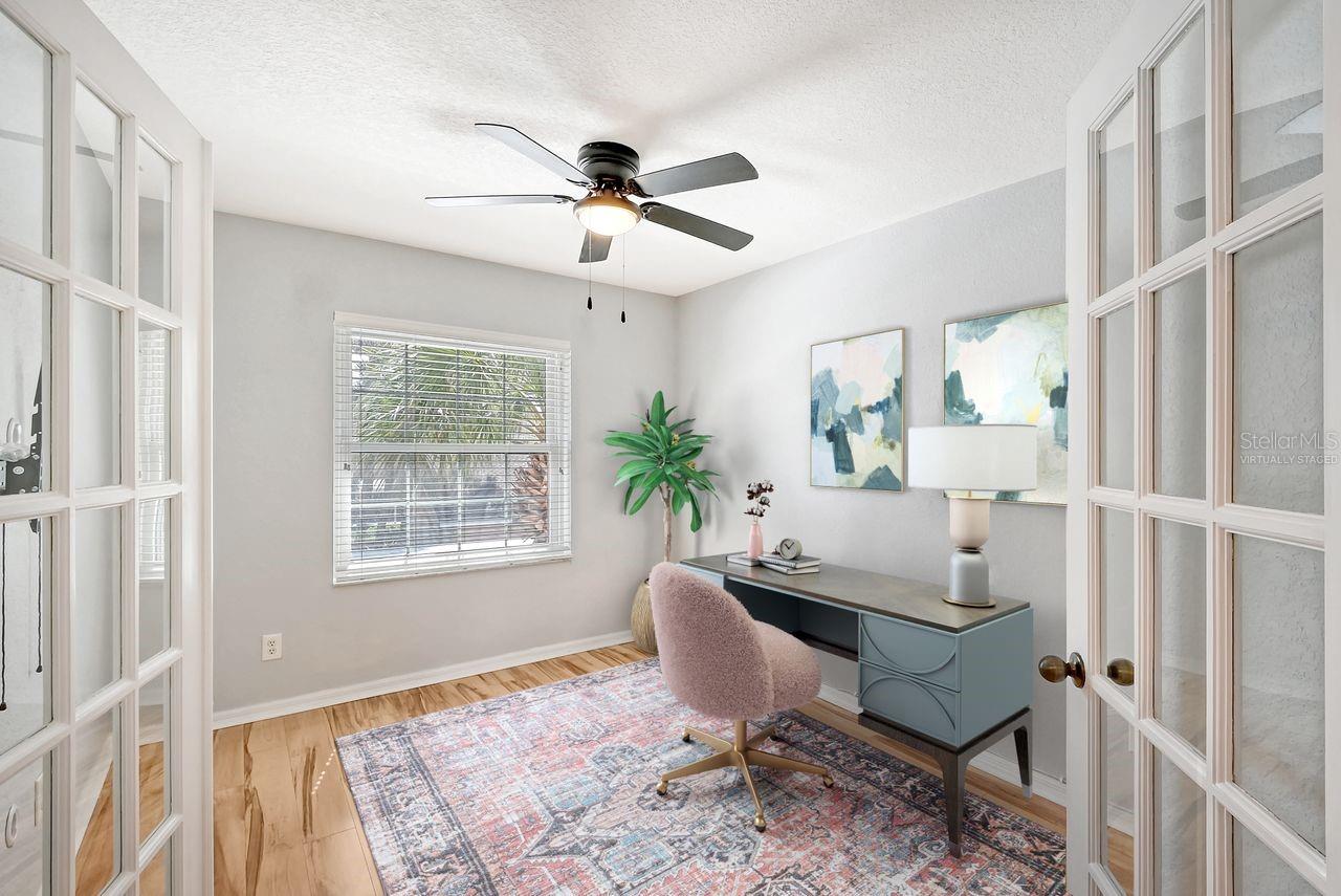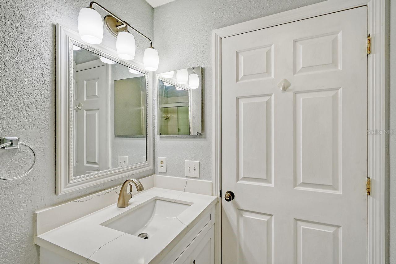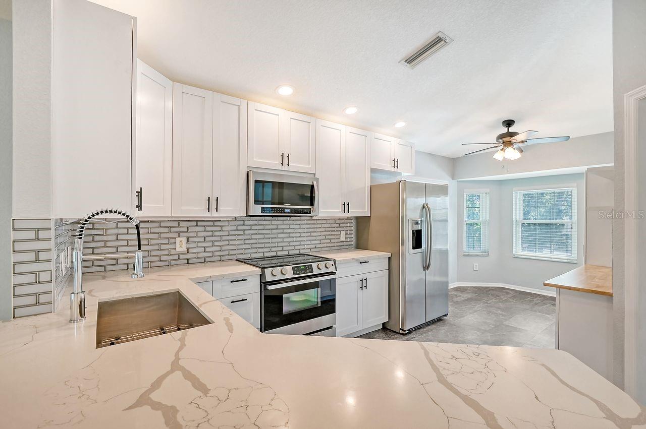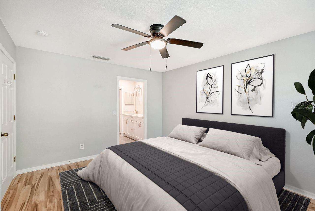 Discover the epitome of comfortable living in this modern, updated condo located in the highly sought-after Heritage Oak Park community. Enjoy peace of mind as this home is NOT IN A FLOOD ZONE. This end unit offers a peaceful retreat within a private, gated enclave, surrounded by lush tropical landscaping and stately Oak trees. Step into an inviting open floor plan with soaring cathedral ceilings, enhanced by laminate flooring installed in late 2020. The spacious great room is perfect for entertaining or simply relaxing, with flat-screen mounts ready for your TV. The adjacent dining area and breakfast bar provide versatile options for casual and formal dining. The kitchen is a chef’s dream, featuring solid wood cabinets with soft-close doors and drawers, two convenient roll-out shelves, and a pantry. The generous quartz countertops, modern glass backsplash, and a charming coffee bar with floating shelves add both style and function. Stainless steel appliances complement the new, never-used dishwasher, offering a blend of quality and reliability. The primary suite offers a tranquil escape with a large walk-in closet and an en-suite bath featuring new vanities, quartz countertops, updated lighting, and a walk-in shower with ceramic tile floors. The additional bedrooms provide ample space for guests or a home office, with one featuring elegant French doors. Enjoy the convenience of an in-unit laundry room and additional storage provided by the outdoor storage unit. The expansive screened lanai, overlooking a private wooded view, offers the perfect setting for your morning coffee or evening relaxation. Heritage Oak Park isn’t just a place to live—it’s a lifestyle. Enjoy a year-round recreational experience with access to a clubhouse, community pool, fitness center, library, billiards room, tennis courts, pickleball, bocce ball, and shuffleboard. The community’s serene setting, complete with a lake and walking paths, invites you to explore the local wildlife and beautiful surroundings. Located in the heart of Port Charlotte, this condo is just minutes from shopping, dining, and golfing, with the pristine Gulf beaches a short drive away. Recent upgrades include hurricane-impact windows installed in 2023, ensuring peace of mind and energy efficiency. This condo perfectly blends comfort, style, and convenience, making it an ideal place to call home.