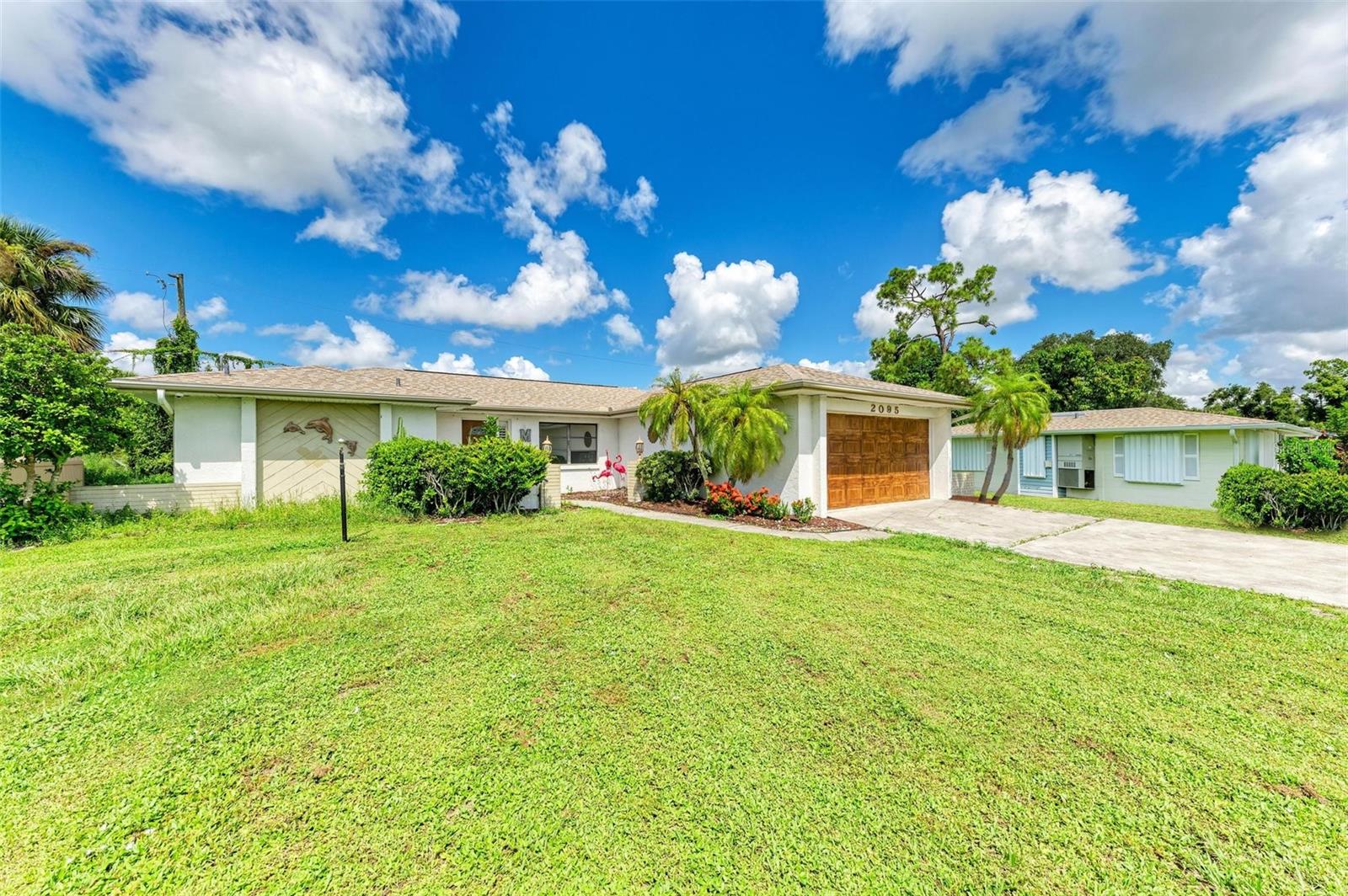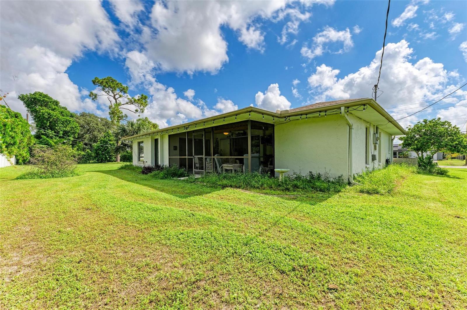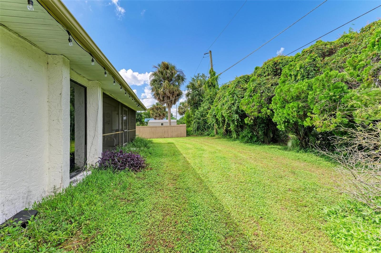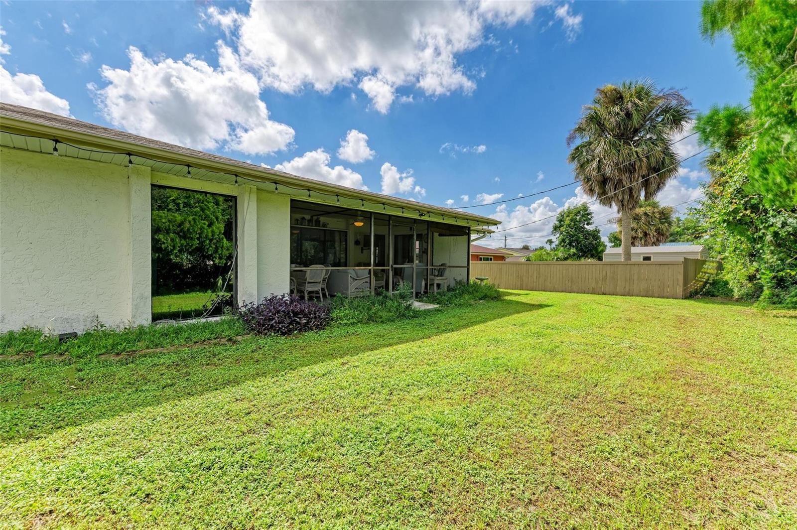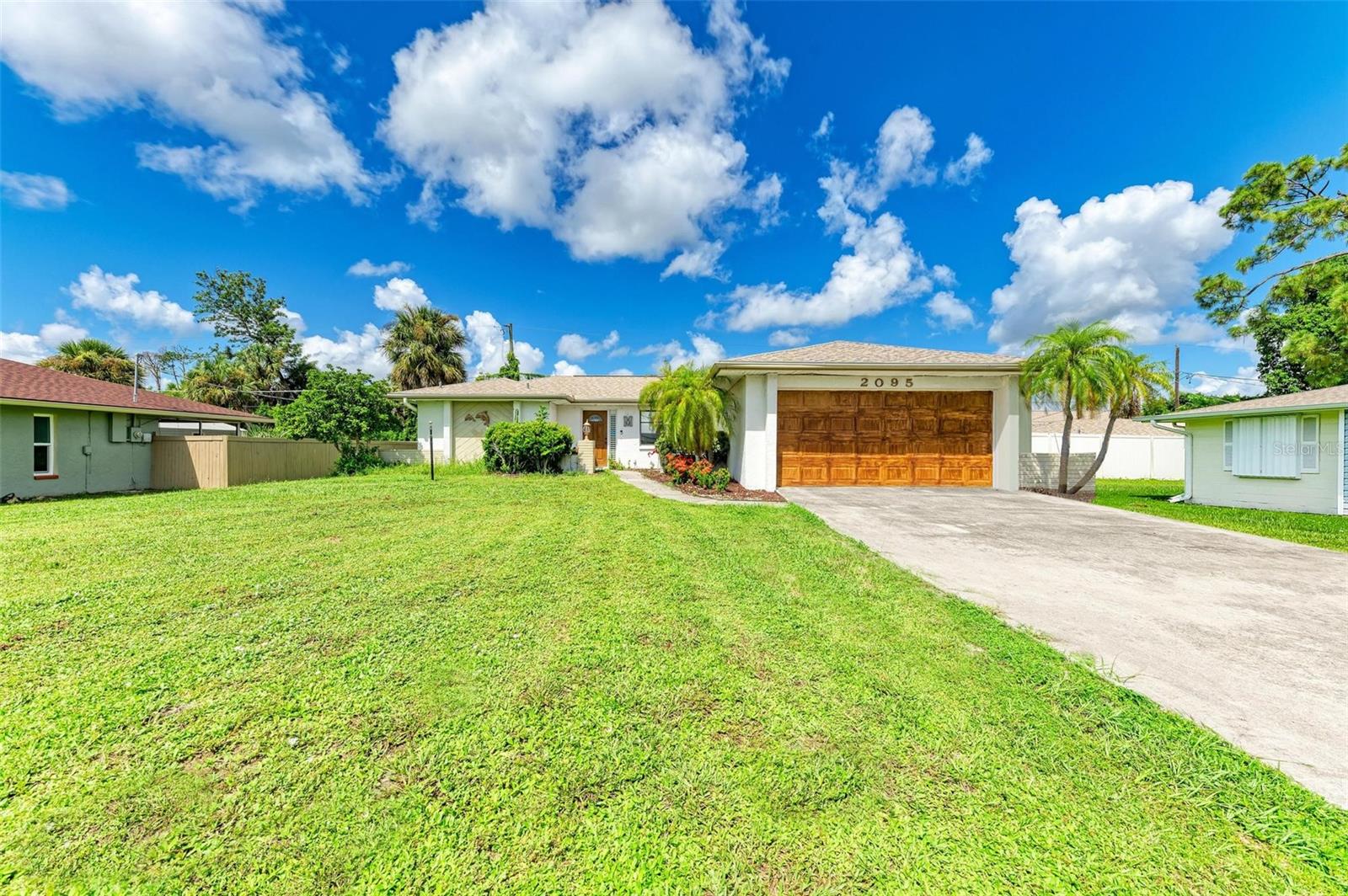 Experience the perfect blend of comfort, convenience, and charm with this delightful 3-bedroom, 2-bathroom home featuring a 2-car garage, ideally situated near everything you need. Located just moments away from a wide array of shops, restaurants, schools, parks, pristine beaches, and medical facilities, this property offers an unparalleled lifestyle with easy access to all of life's necessities. Step inside to be welcomed by a cozy and inviting living room bathed in natural light. Vaulted ceilings add to the sense of space, while sliding doors lead you effortlessly to the expansive lanai, creating a seamless connection between indoor and outdoor living. The kitchen extends to the dining area, offering a peaceful view of the lush surrounding greenery and direct access to the lanai. The primary bedroom is a private sanctuary featuring soft carpeting, an en suite bathroom complete with a tub and shower, and split vanities for added convenience. The two additional bedrooms, also carpeted, provide comfort and ample storage with built-in closets. A second bathroom offers a generous single vanity, walk-in shower, and linen closet, providing functional comfort for family and guests alike. Adding to the home's practicality is a well-appointed laundry room with space for shelving to keep your household essentials organized. The highlight of this home is the expansive lanai, which overlooks a serene backyard filled with lush green grass and trees. This spacious outdoor haven is perfect for enjoying the quintessential Florida lifestyle year-round. One of the standout features of this property is the absence of HOA fees and restrictions, granting you the freedom to explore a multitude of possibilities with your new home. Located less than a mile from Port Charlotte Town Center, you'll have a variety of shops and dining options at your fingertips. Families will appreciate the proximity to local schools, just within 2 miles, while the Sarasota Memorial ER at North Port is approximately 5 miles away, offering peace of mind. Embrace the opportunity to own a home that combines convenience, comfort, and a touch of tranquility in a prime location.