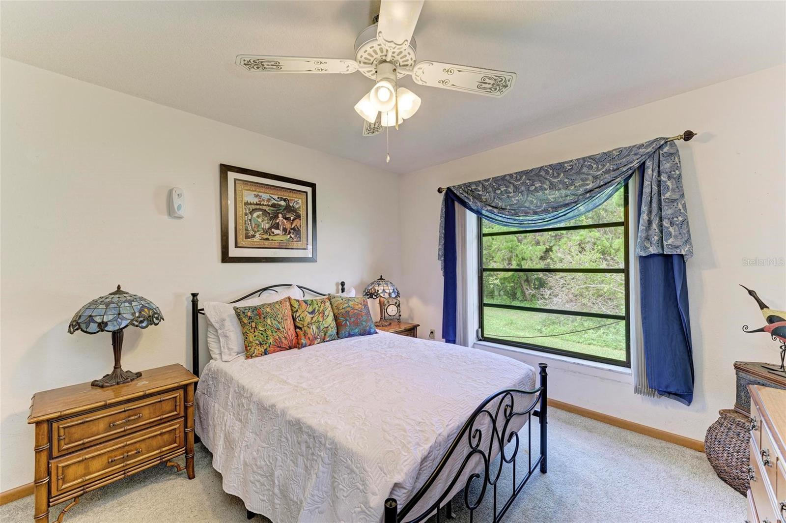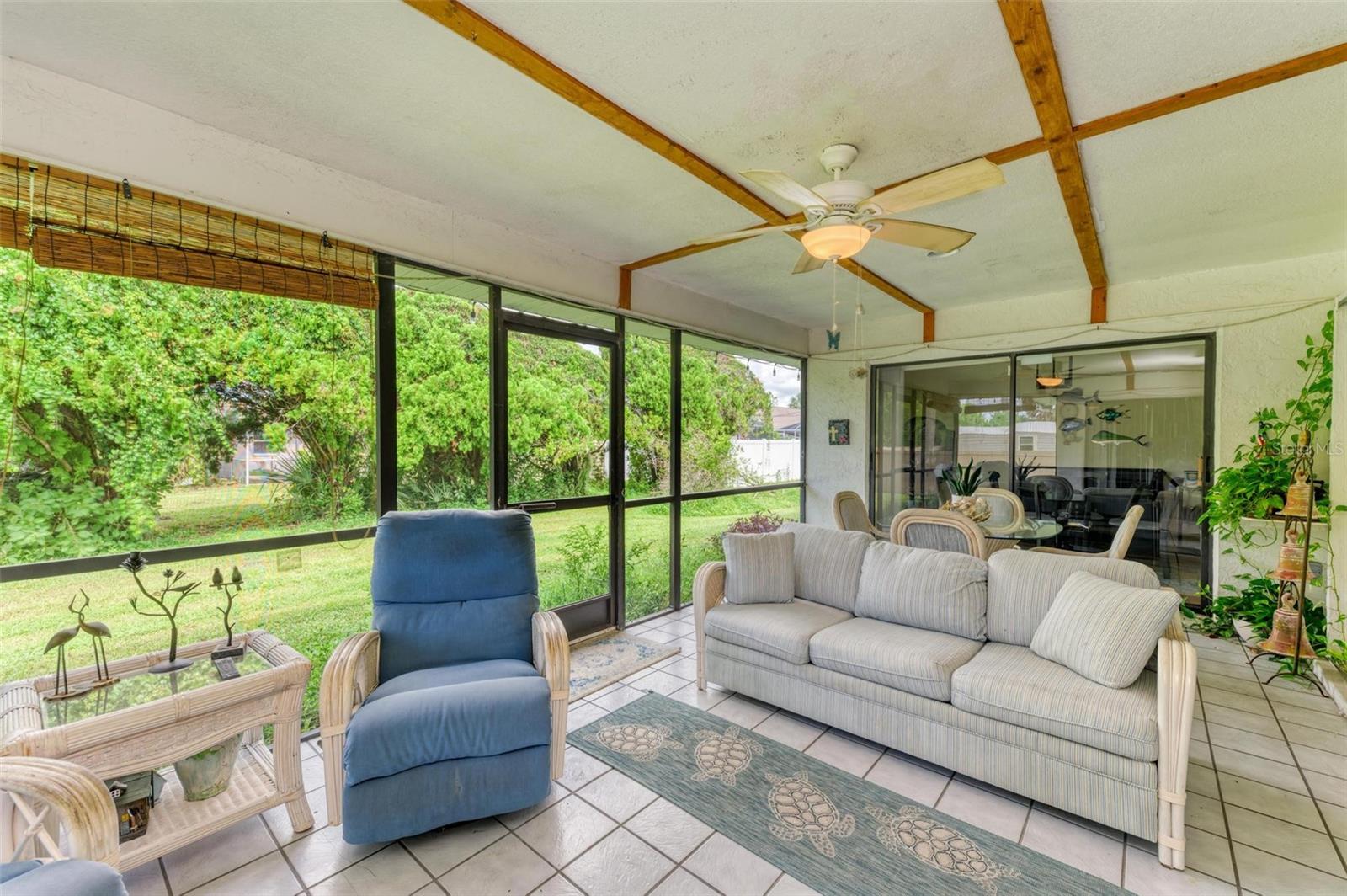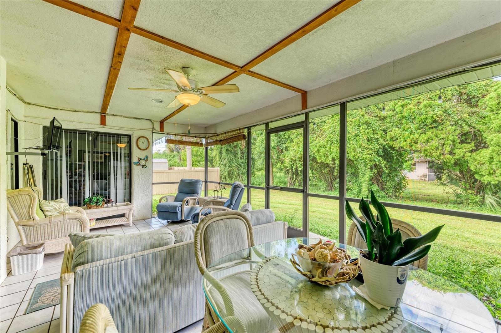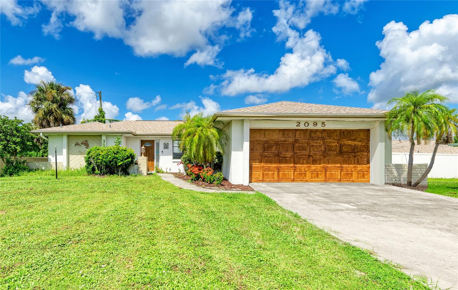 Experience the perfect blend of comfort, convenience, and charm with this delightful 3-bedroom, 2-bathroom home featuring a 2-car garage, ideally situated near everything you need. Located just moments away from a wide array of shops, restaurants, schools, parks, pristine beaches, and medical facilities, this property offers an unparalleled lifestyle with easy access to all of life's necessities. Step inside to be welcomed by a cozy and inviting living room bathed in natural light. Vaulted ceilings add to the sense of space, while sliding doors lead you effortlessly to the expansive lanai, creating a seamless connection between indoor and outdoor living. The kitchen extends to the dining area, offering a peaceful view of the lush surrounding greenery and direct access to the lanai. The primary bedroom is a private sanctuary featuring soft carpeting, an en suite bathroom complete with a tub and shower, and split vanities for added convenience. The two additional bedrooms, also carpeted, provide comfort and ample storage with built-in closets. A second bathroom offers a generous single vanity, walk-in shower, and linen closet, providing functional comfort for family and guests alike. Adding to the home's practicality is a well-appointed laundry room with space for shelving to keep your household essentials organized. The highlight of this home is the expansive lanai, which overlooks a serene backyard filled with lush green grass and trees. This spacious outdoor haven is perfect for enjoying the quintessential Florida lifestyle year-round. One of the standout features of this property is the absence of HOA fees and restrictions, granting you the freedom to explore a multitude of possibilities with your new home. Located less than a mile from Port Charlotte Town Center, you'll have a variety of shops and dining options at your fingertips. Families will appreciate the proximity to local schools, just within 2 miles, while the Sarasota Memorial ER at North Port is approximately 5 miles away, offering peace of mind. Embrace the opportunity to own a home that combines convenience, comfort, and a touch of tranquility in a prime location.
