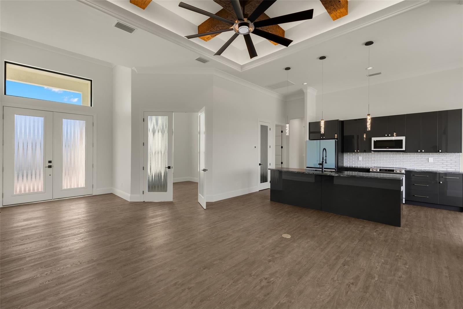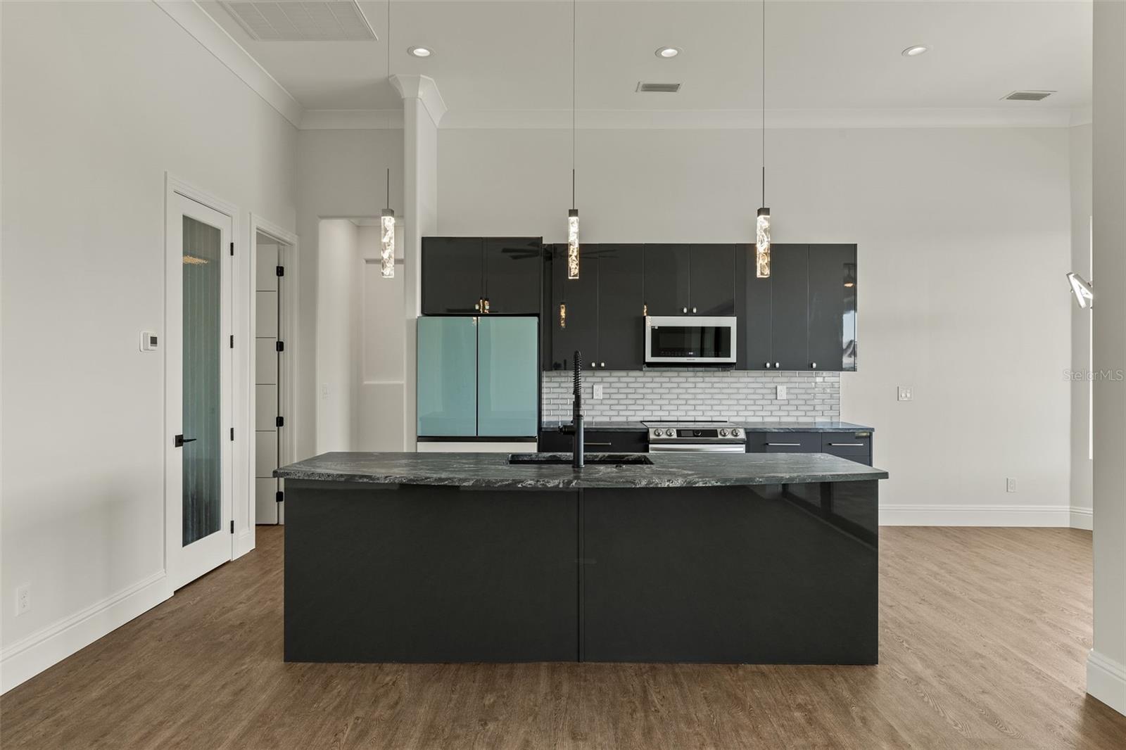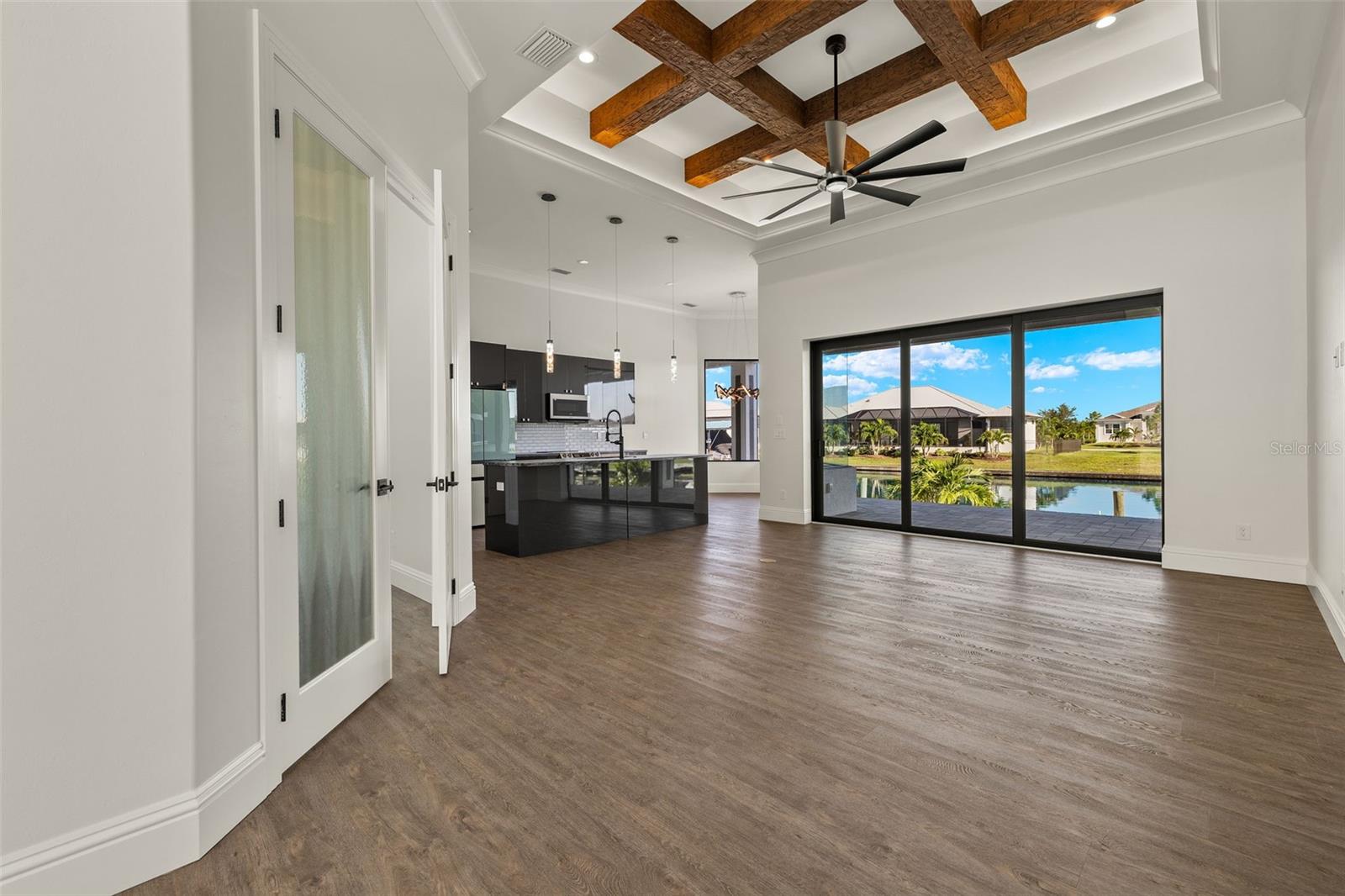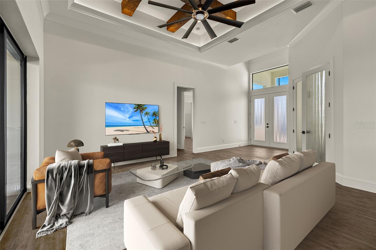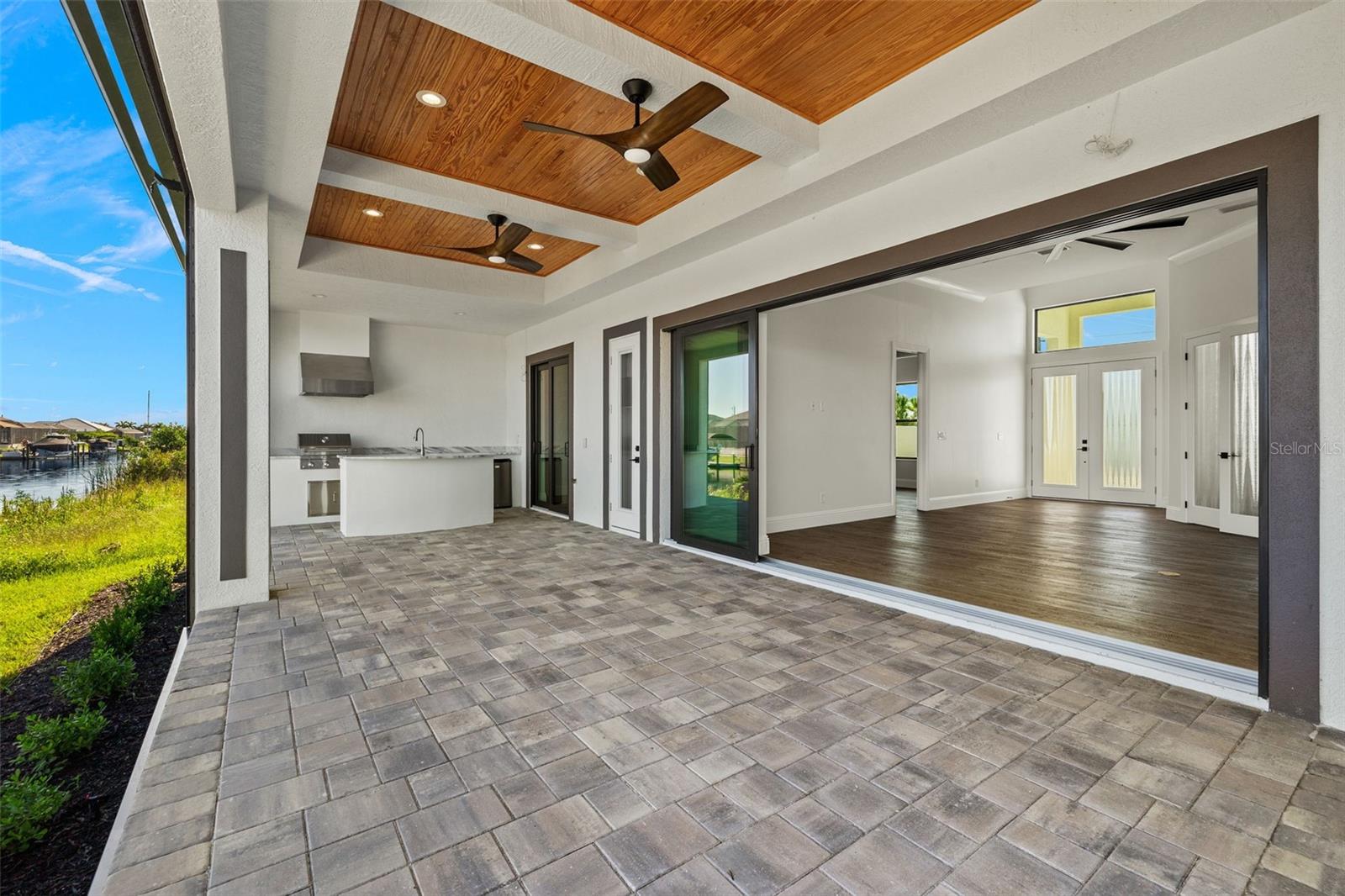 Motivated Seller Bring Offers. Seller Pays Closing Costs. Imagine waking up every day in a stunning coastal retreat that seamlessly blends modern luxury with Florida's natural beauty. This unique custom home, nestled in the peaceful South Gulf Cove community, offers an unparalleled lifestyle with sailboat access to the Myakka River and Gulf of Mexico. A well thought out floorplan comes complete with a private courtyard pool ready for your personal touch to transform it into your own oasis. As you approach the property, you'll be struck by its elegant design and tropical landscaping. Step inside and prepare to be amazed. The expansive living area greets you with soaring ceilings adorned with decorative wood beams and crown molding. Custom light fixtures and indirect lighting create a warm ambiance, while impact-rated, noise-dampening windows flood the space with natural light. The heart of this home is its stunning modern kitchen. Entertaining is a joy with top-of-the-line Samsung appliances, sleek European-style cabinets, and leathered granite countertops. A large pantry provides ample storage, while a massive bay window offers breathtaking waterfront views. Outdoor living is a breeze with the thoughtfully designed lanai. Accessible through main pocket sliders, this space features a full outdoor kitchen complete with a mini-fridge, granite counters, a grill with a full range hood, and an island bar with a sink. It's the perfect spot for al fresco dining or simply relaxing after a day on the water. Retreat to your primary suite, a true oasis of comfort. The primary bedroom boasts decorative crown molding with indirect lighting accents, while the primary bathroom features a built-in wardrobe closet, dual sinks, and a spacious rain shower. This home is not just beautiful; it's built to last. Impact and roll-down hurricane protection on the back lanai, along with other robust features, ensure your peace of mind during storm season. Additional features include a large study, indoor laundry with Samsung washer and dryer, epoxy coated garage floor with impact/insulated garage door, tankless water heater, solid core designer interior doors, multi zone irrigation system, and full gutters. This property offers more than just a home; it's a lifestyle. With its perfect blend of indoor comfort and outdoor living, it's your opportunity to enjoy resort-style luxury every day. Don't miss your chance to make this coastal modern masterpiece your own.