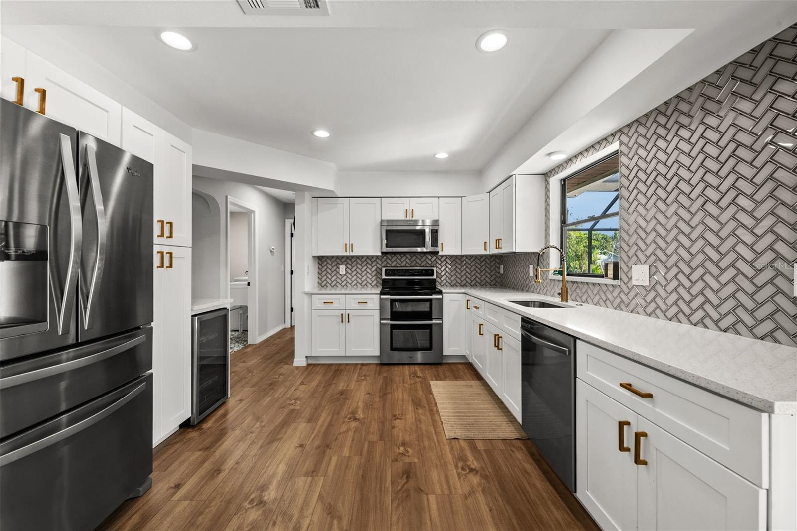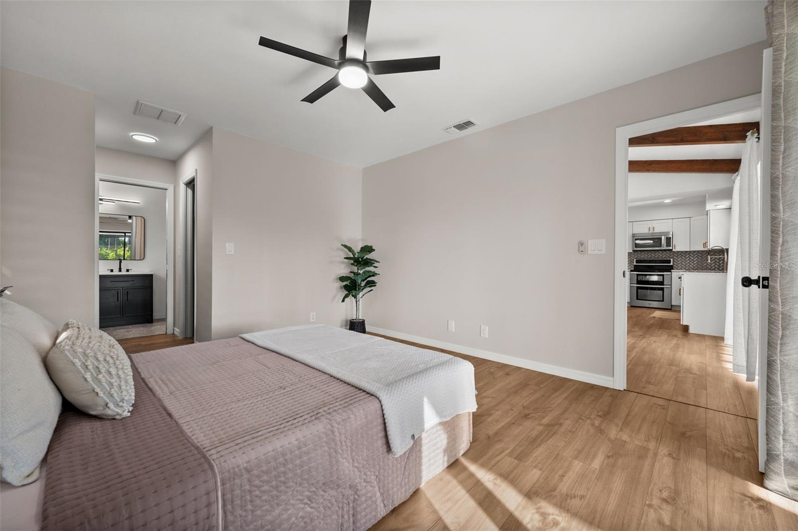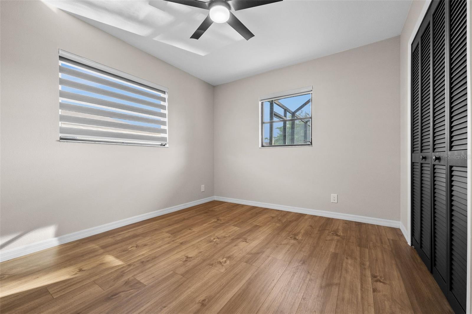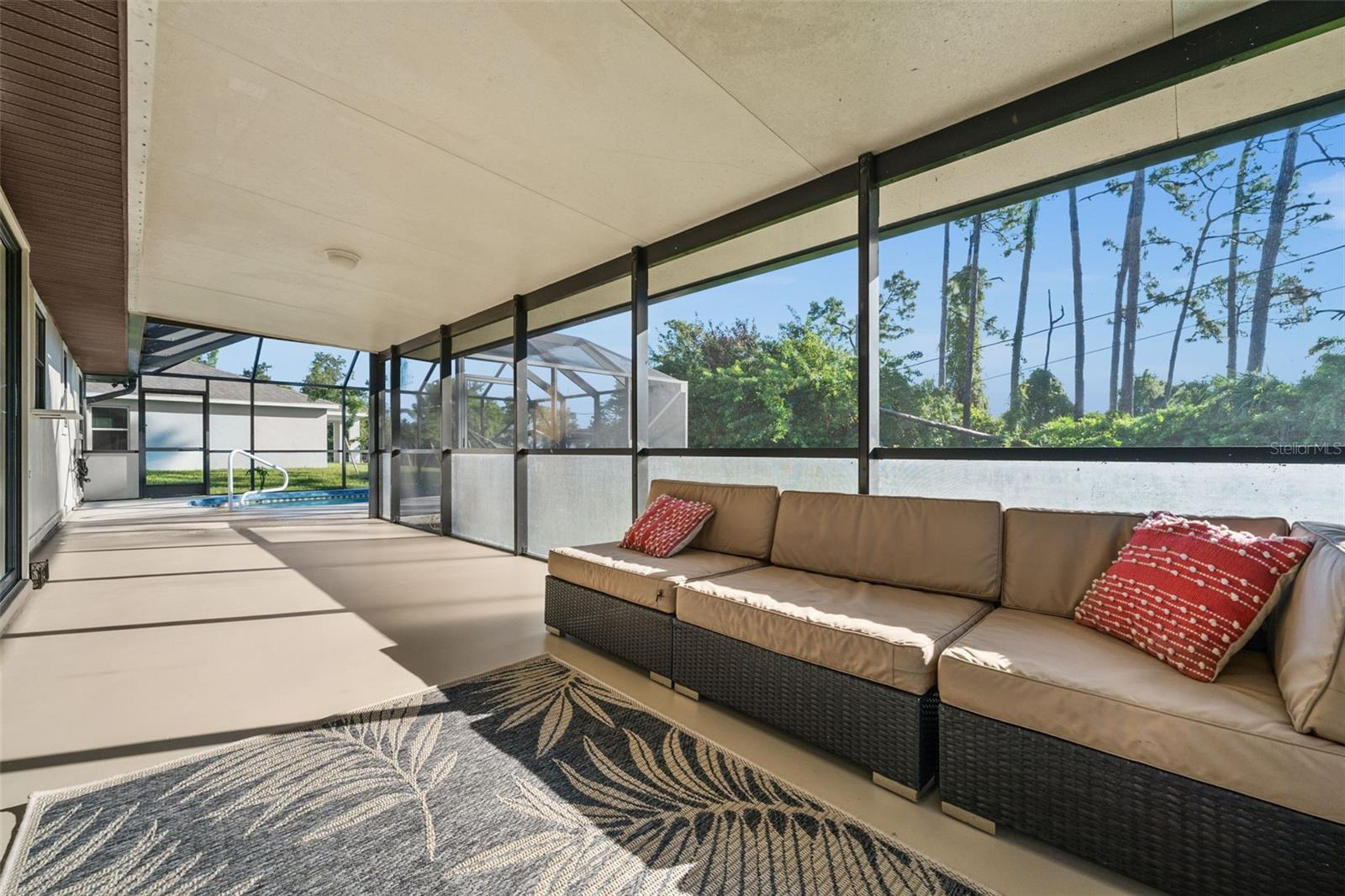 This beautifully updated home is filled with thoughtful upgrades and design features. As you enter, you'll immediately notice the higher ceilings with decorative wood beams, adding a touch of warmth and character. A brand-new roof was installed in September 2023, and the home was fully replumbed with a ManaBloc system in 2018 for added peace of mind. All appliances, including the washer and dryer, are included. The remodeled kitchen boasts a breakfast bar and opens to both the dining area and the lanai/pool, making it an ideal space for entertaining. The primary suite includes two closets—one of which is a walk-in—and an en-suite bath with a double vanity and a walk-in shower. The guest bathroom features a versatile tub/shower combo. Outside, you'll find a large, screened lanai and pool, perfect for enjoying Florida living. The home is surrounded by mature landscaping and a spacious, private backyard, great for family gatherings or gardening. Additional highlights include laminate flooring, a 2-car garage, a water heater replaced in 2018, and an A/C unit that was installed in 2014 and serviced in 2018. This home perfectly combines charm, modern updates, and comfort!