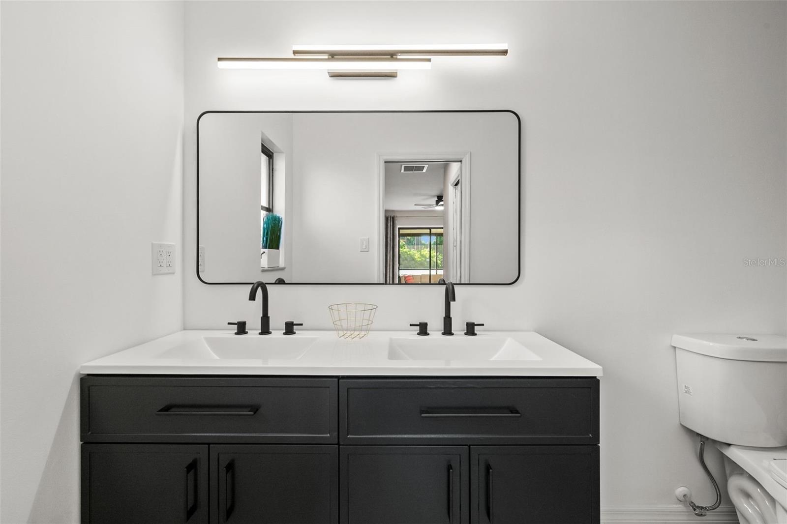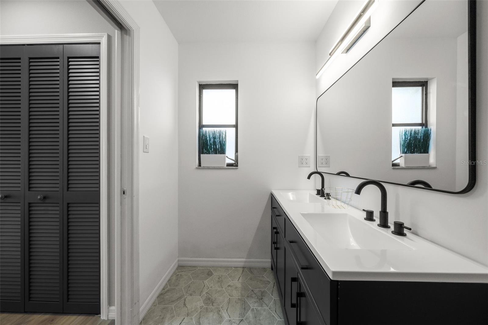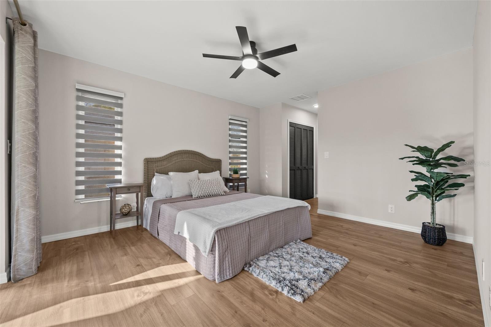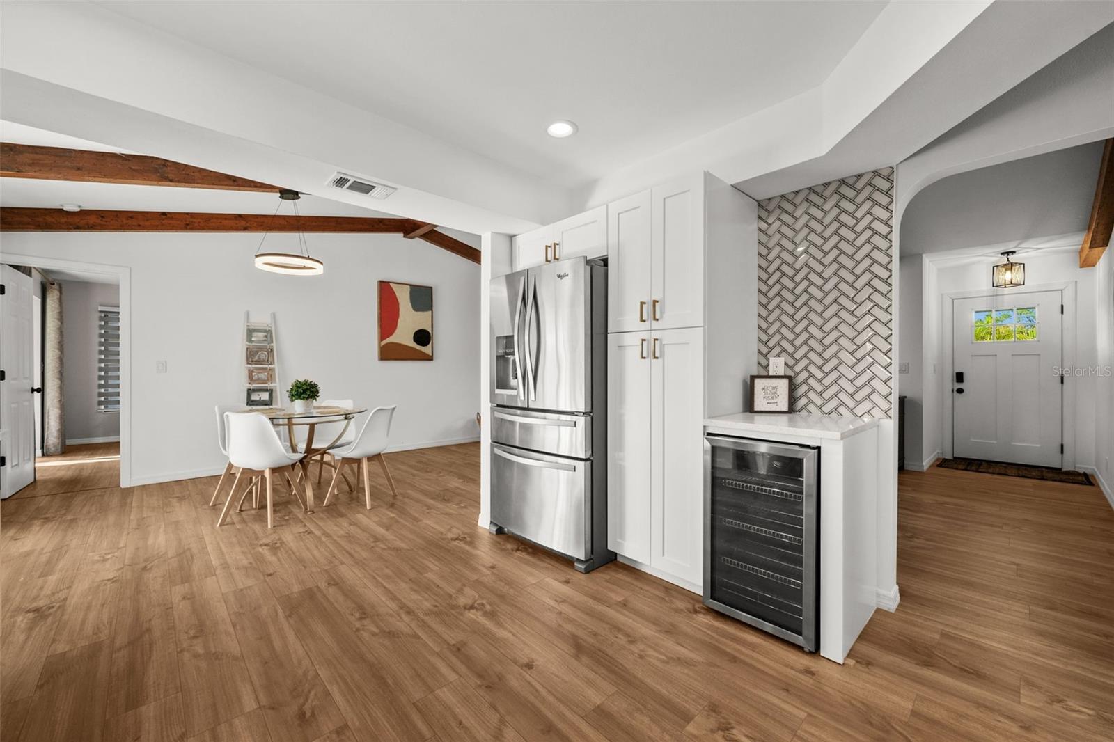 This beautifully updated home is filled with thoughtful upgrades and design features. As you enter, you'll immediately notice the higher ceilings with decorative wood beams, adding a touch of warmth and character. A brand-new roof was installed in September 2023, and the home was fully replumbed with a ManaBloc system in 2018 for added peace of mind. All appliances, including the washer and dryer, are included. The remodeled kitchen boasts a breakfast bar and opens to both the dining area and the lanai/pool, making it an ideal space for entertaining. The primary suite includes two closets—one of which is a walk-in—and an en-suite bath with a double vanity and a walk-in shower. The guest bathroom features a versatile tub/shower combo. Outside, you'll find a large, screened lanai and pool, perfect for enjoying Florida living. The home is surrounded by mature landscaping and a spacious, private backyard, great for family gatherings or gardening. Additional highlights include laminate flooring, a 2-car garage, a water heater replaced in 2018, and an A/C unit that was installed in 2014 and serviced in 2018. This home perfectly combines charm, modern updates, and comfort!