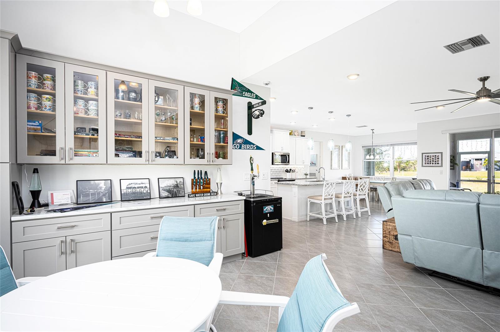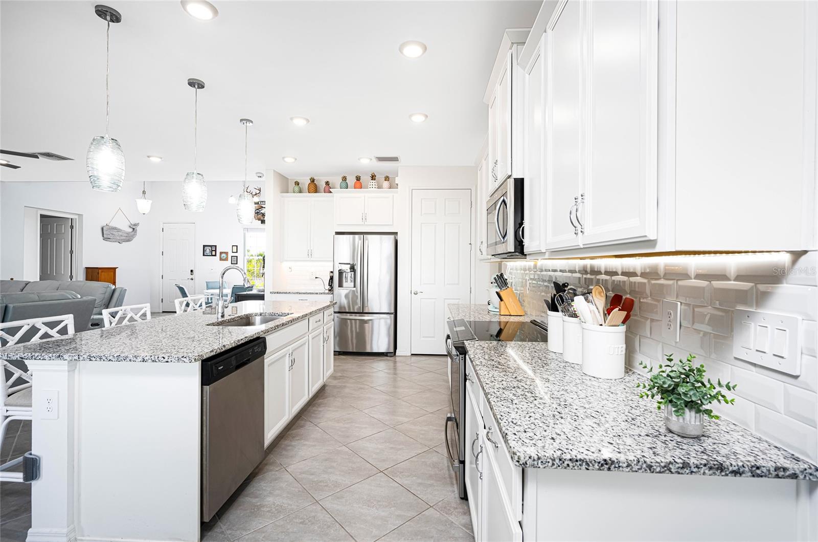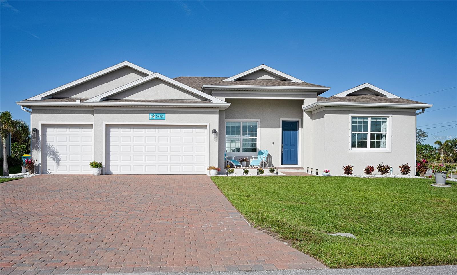 NEW PRICE – Must-See Home in South Gulf Cove! DOUBLE LOT! Welcome to 9401 President Circle, Port Charlotte, FL – a stunning 2021-built Gulf Coast home on an oversized double corner lot (over ½ acre) in the desirable waterfront community of South Gulf Cove. Featuring 4 bedrooms, 3 baths, and a 3-car garage with epoxy flooring, this home blends luxury, space, and modern Florida living. Enjoy a bright open-concept layout with 2,418 sq. ft. under air, a gourmet kitchen with granite counters, stainless steel appliances, custom backsplash, and under-cabinet lighting. The elegant dining area with built-in cabinetry and full tile flooring throughout adds coastal sophistication. Relax in the screened lanai or unwind in your private HotSpring Spa. The pavered driveway, tropical landscaping, and extra lot offer room for a pool, garden, or outdoor kitchen. Located minutes from Boca Grande, Gasparilla Island, Englewood Beach, Wellen Park, and CoolToday Park, this home is close to shopping, dining, golf, and marinas. Perfect for a primary residence, vacation home, or investment property. Schedule your private showing today—homes like this in South Gulf Cove don’t last long!