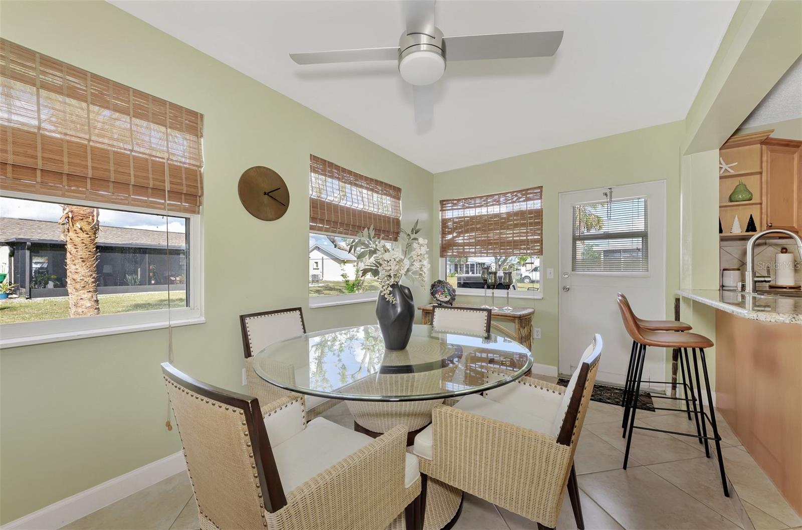 A beautifully updated single-family home in the desirable Gardens of Gulf Cove community in Port Charlotte. This move-in-ready 3-bedroom, 1-bathroom home offers a perfect blend of modern features, including tile floors throughout and a kitchen with sleek stainless steel appliances and granite work tops. As you step inside, you'll appreciate the open-concept design that maximizes space and natural light. The spacious living area flows seamlessly into the dining area, making it ideal for both everyday living and entertaining. The kitchen is a chef’s dream, with modern stainless steel appliances, ample cabinet space, and a functional layout for easy meal prep. All three bedrooms are generously sized and feature tile flooring, providing a clean, low-maintenance space that can easily adapt to your needs. The well-appointed bathroom is just steps away, offering convenience and style with the added bonus of jack and jill layout for bedroom one and two.Also bedroom two has a vanity sink within the walk in closet. Outside, you'll find a private, low-maintenance backyard, perfect for enjoying Florida's sunny weather. The Gardens of Gulf Cove community is known for its relaxed atmosphere and a very affordable annual HOA fee, which provides access to excellent amenities, including a community pool, clubhouse, and fitness gym.