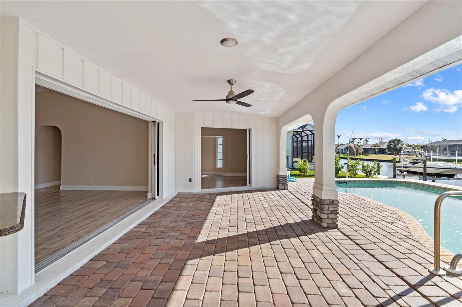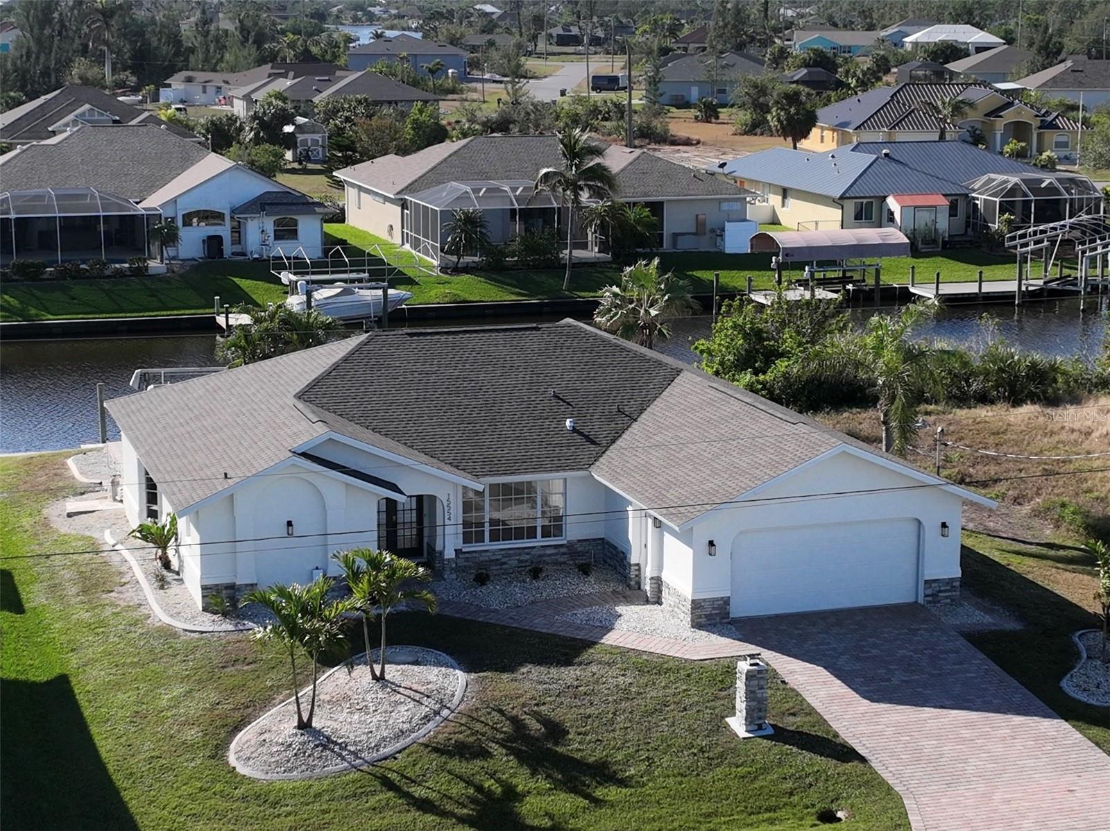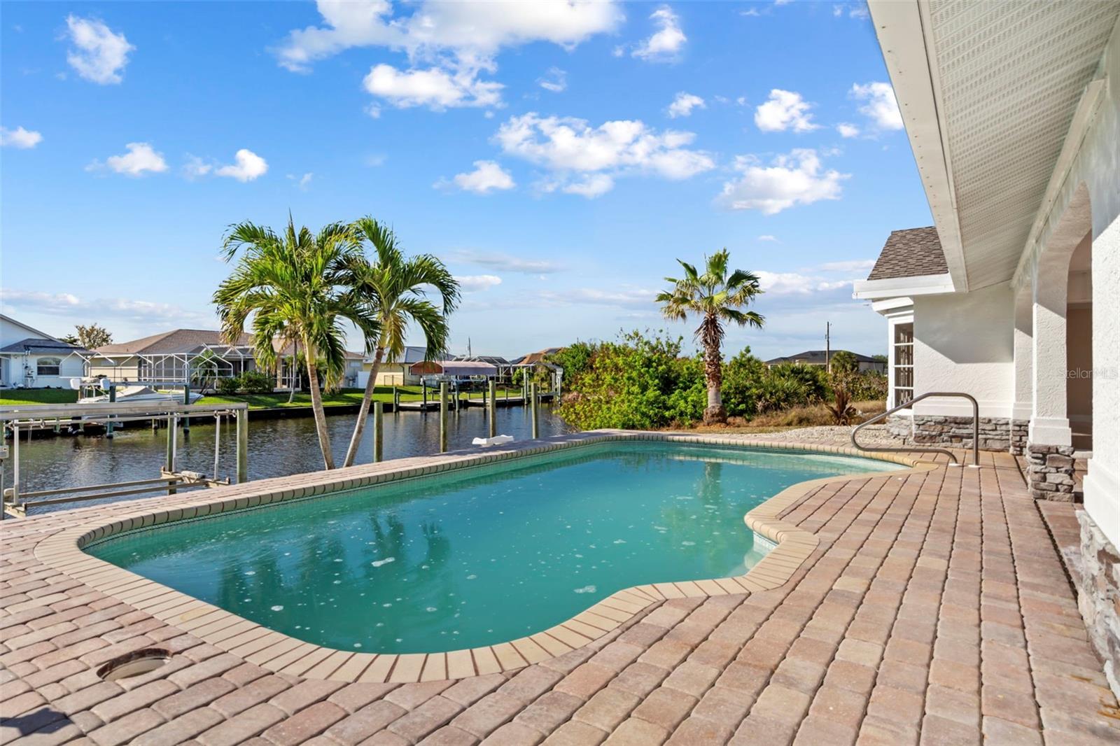One or more photo(s) has been virtually staged. Welcome to your dream waterfront oasis! This stunning 3-bedroom, 2-bathroom home has been thoughtfully renovated to blend modern elegance with coastal charm. Located in the highly sought-after South Gulf Cove community, this property offers both luxury and convenience. Nestled on a picturesque canal, enjoy a scenic boat ride to the Gulf of Mexico. Perfect for boating enthusiasts or anyone seeking a serene waterfront lifestyle or relaxing in your beautiful backyard with a sparkling pool and spacious patio, perfect for entertaining or soaking up the Florida sun. The lanai screen will be completely replaced in February. The open-concept floor plan boasts a beautifully updated kitchen with granite countertops, stainless steel appliances, and a large island overlooking the living area. The primary suite features a luxurious en-suite bathroom with dual vanities and a walk-in shower. Two additional bedrooms give ample space for family or guests. Updates include freshly painted inside and out, luxury vinyl plank flooring throughout, and updated fixtures. Community Amenities: South Gulf Cove offers a relaxed coastal vibe with optional HOA, parks, and a community boat ramp. Whether you’re sipping coffee on the dock at sunrise, entertaining poolside, or cruising to the Gulf, this home delivers the ultimate Florida lifestyle. Don’t miss your chance to own a piece of paradise!
