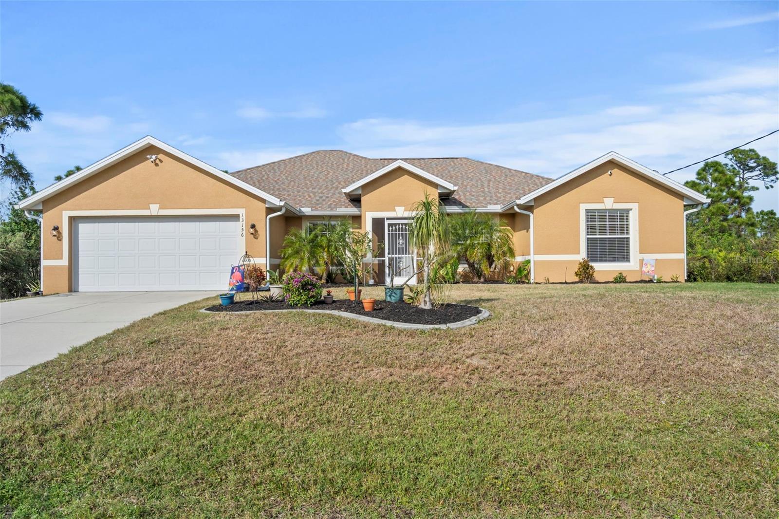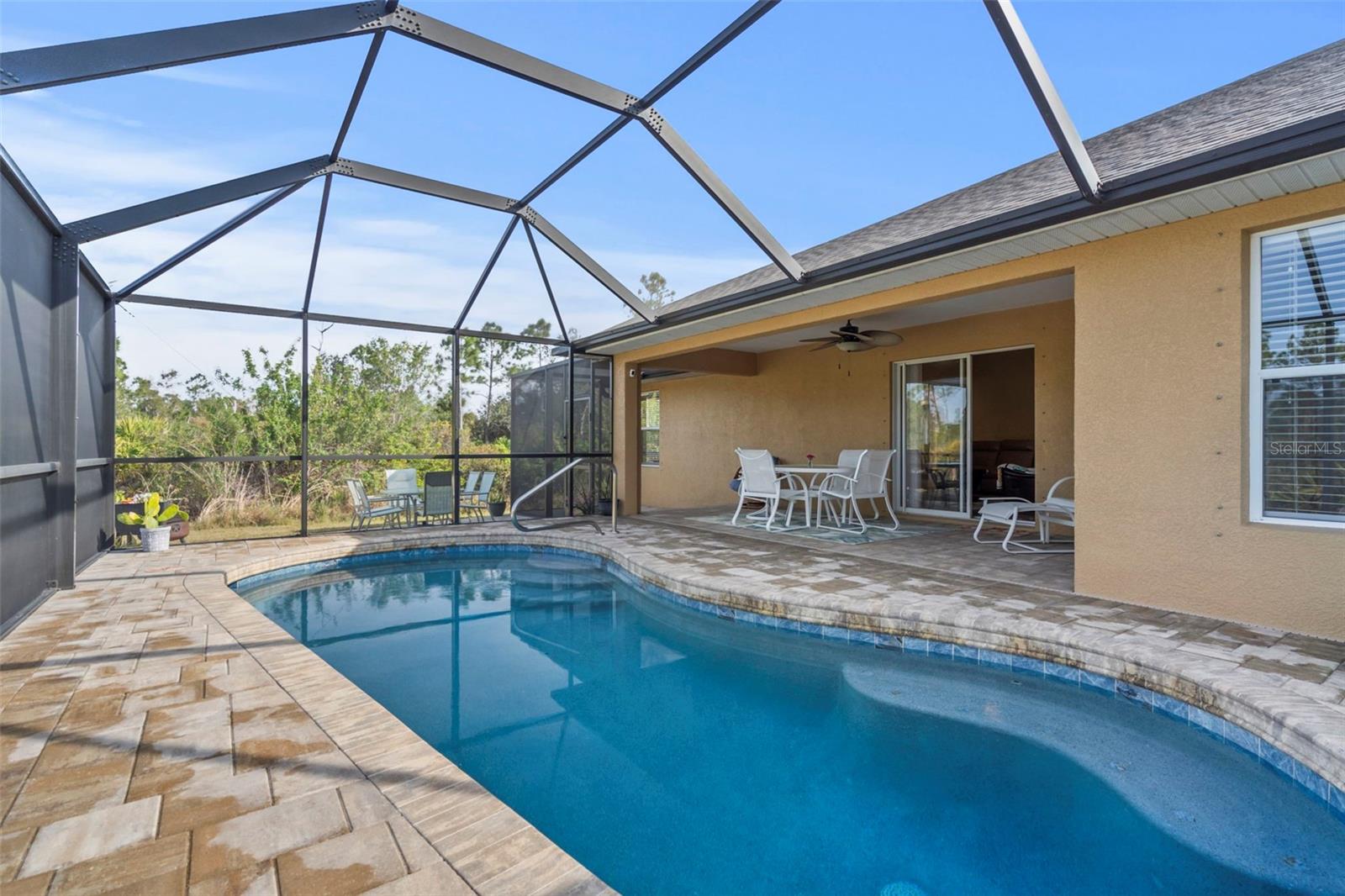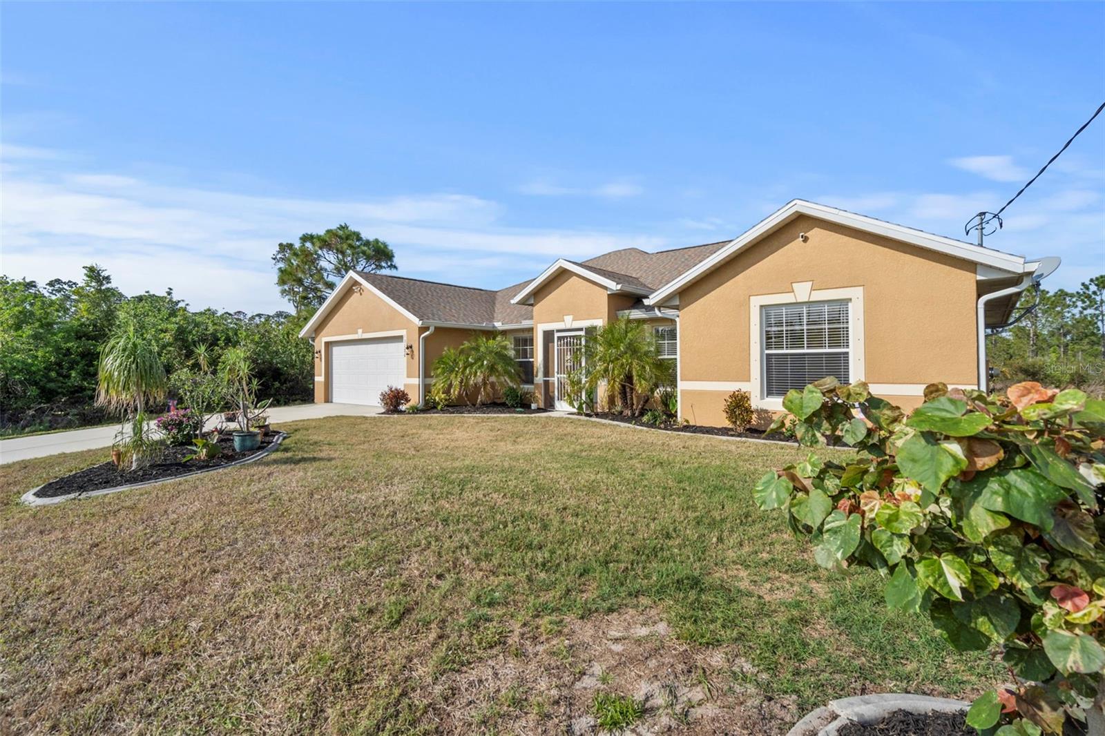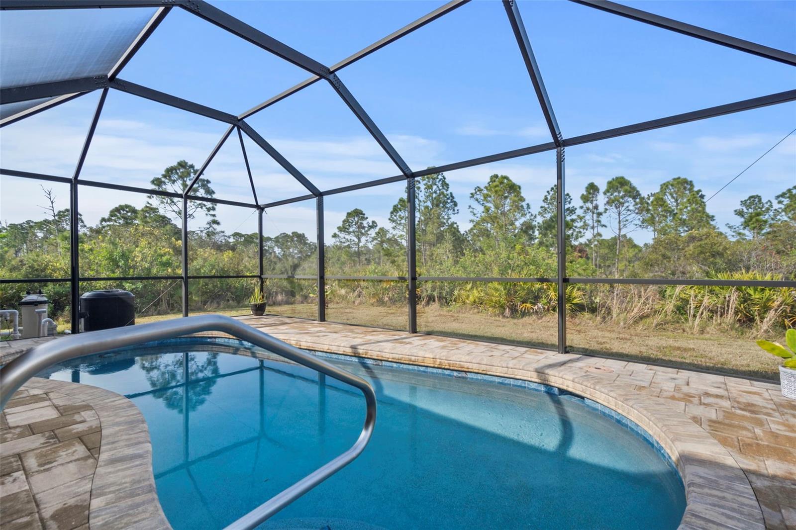 Don't pass this one by! Are you looking for a private retreat with a pool on a spacious lot? Welcome to this stunning 2017-built home, offering a perfect blend of modern amenities and serene natural surroundings. Located in a desirable area with no HOA and no CDD fees. Enjoy the tranquility of your own private preserve view from the comfort of your spacious 3-bedroom, 2-bathroom home, featuring a versatile den/office perfect for remote work or additional living space. (add a closet and you have bedroom number 4!) Step outside to your own personal oasis, complete with a sparkling saltwater pool (just resurfaced in 2022 and new pavers!) and lush greenery, ideal for entertaining or relaxing. With no carpet throughout, this home features easy-to-maintain, tile flooring, while the reverse osmosis system ensures pure, clean water for your peace of mind. An extra lot next door is included, offering additional space for potential expansion and/or outdoor activities. Park you trailer, your boat, or any other toys you may own. Owners Flood Insurance Policy is transferable! Don't miss an opportunity to own your Florida home close to shopping, beaches and restaurants. This move-in ready gem combines convenience, privacy, and modern living—schedule your showing today!