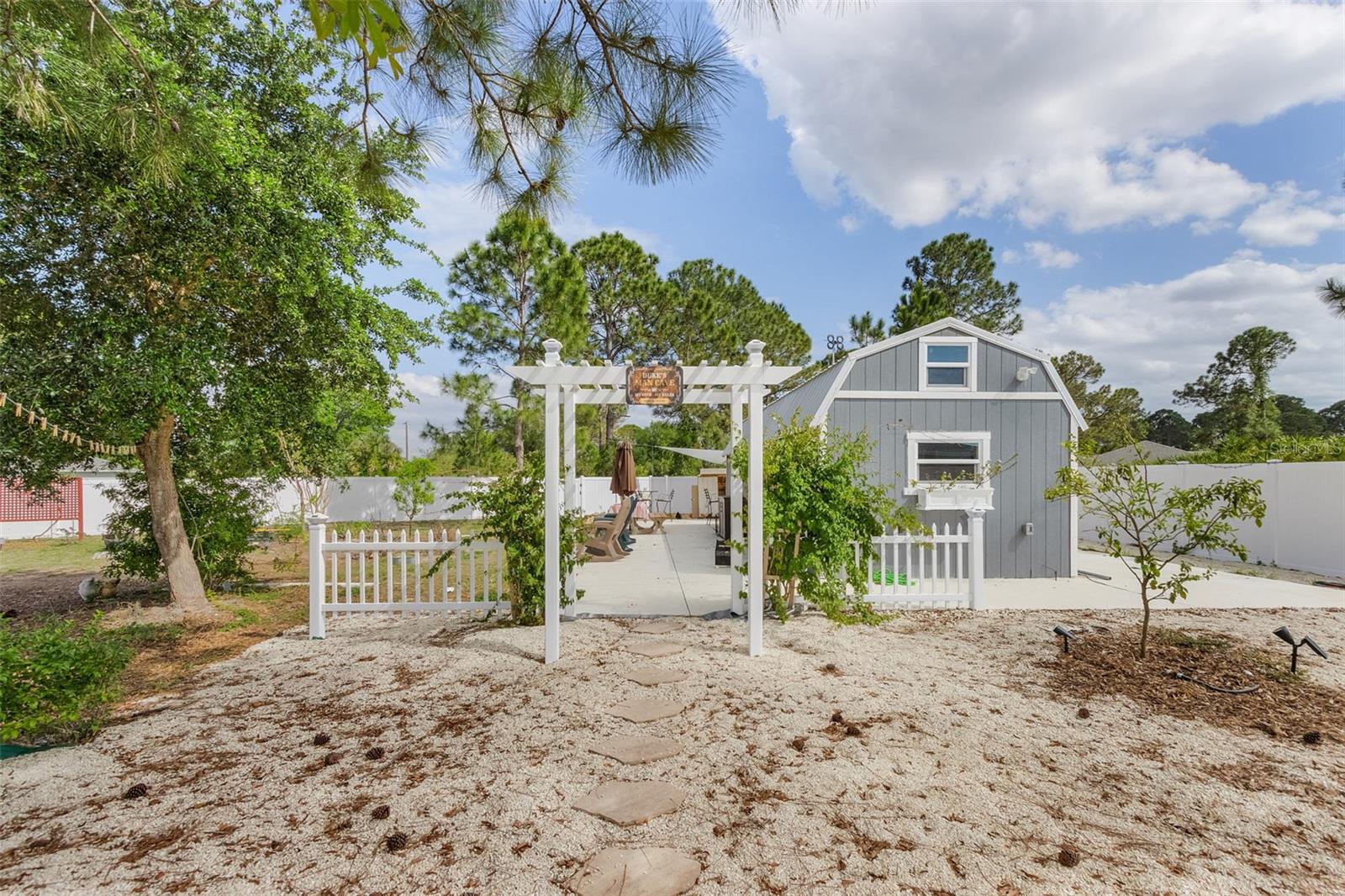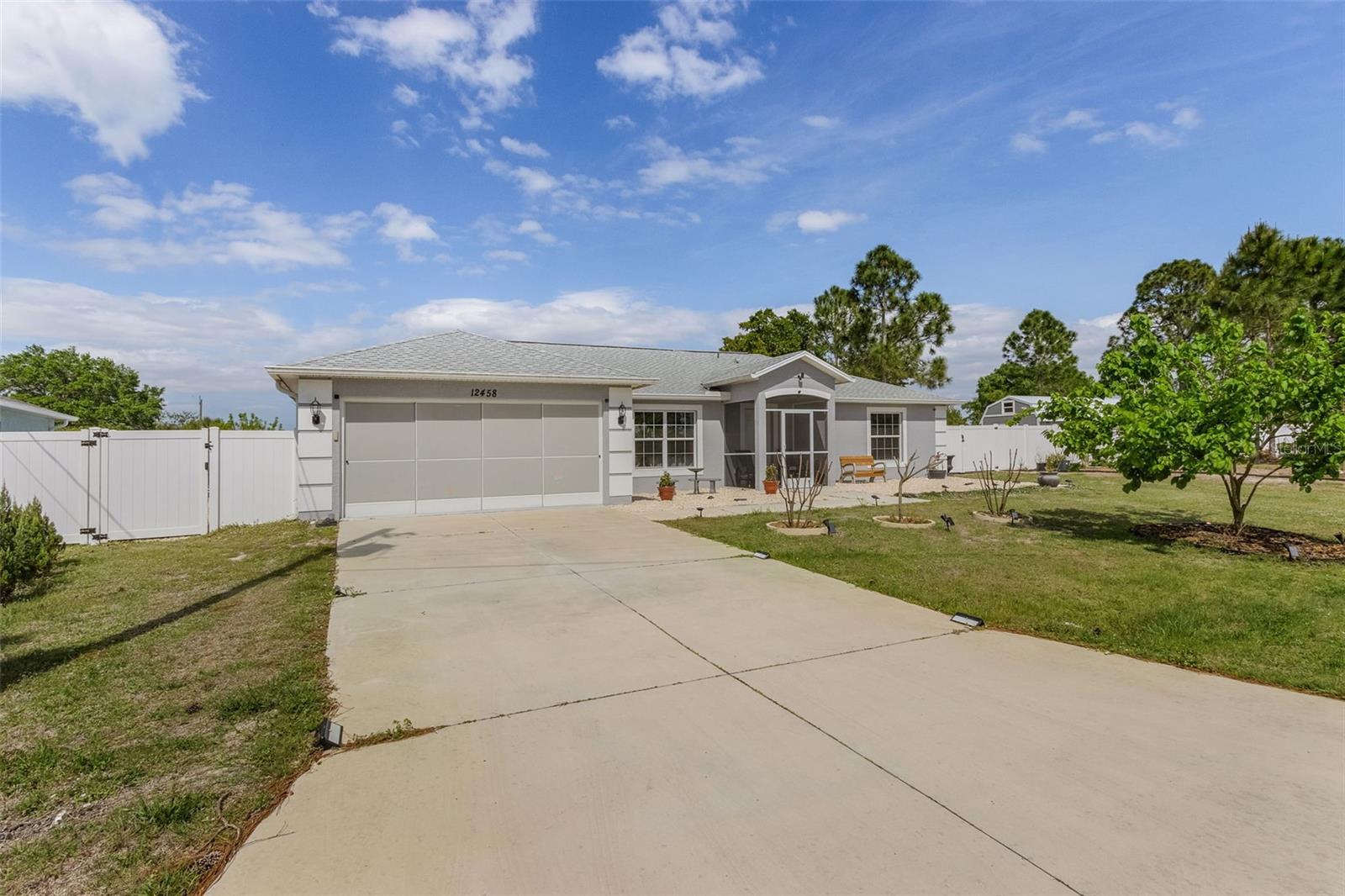 ALMOST AN ACRE OF LAND... ESTATE WITH GUEST HOUSE... NO FLOOD ZONE... CAN BE AIRBNB... YOGA STUDIO... WALKING DISTANCE TO KID'S SCHOOL... MINUTES FROM THE BEACH... GREENBELT LOT... LOW MAINTENANCE LAWN... NO HOA... NEWER ROOF... Tucked away on a peaceful greenbelt lot, this stunning Florida estate offers unparalleled privacy, endless possibilities, and ultimate flexibility. With no HOA restrictions, a prime non-flood zone location, and two separate entrances, the property is ideal for a family home, vacation rental, or personal retreat. The location couldn’t be more convenient, with a local school just a short walk away and ample space for your RV, boat, or other toys. The main house features a 2-car garage, dual electrical panels wired for a whole-home generator, and a state-of-the-art drip irrigation system to maintain your landscaping year-round. A 100 sq. ft. climate-controlled bonus room, currently used as a yoga studio, offers endless options as a home office, creative retreat, or even a sauna. The property boasts a 400 sq. ft. Barndominium guest house that can be easily expanded to 1,050 sq. ft. Fully insulated with Greenboard mold-proof drywall, it includes a lofted bed and is pre-wired and plumbed for a kitchen and bath—ideal for Airbnb income, hosting guests, or providing private family quarters. This versatile feature ensures long-term value while maintaining privacy. The location is unbeatable—just 15 minutes from the beach, 5 minutes to a community dock, and close to the Cape Haze Trail. With privacy, ample space, and incredible versatility, this property offers the best of Florida living. Whether you’re looking for a family home, investment property, or peaceful retreat, this estate has it all.