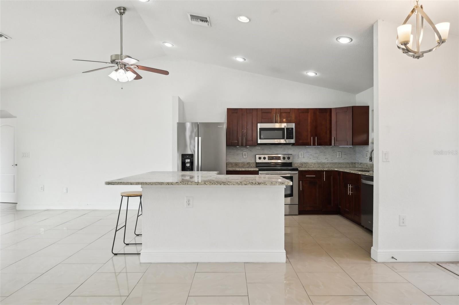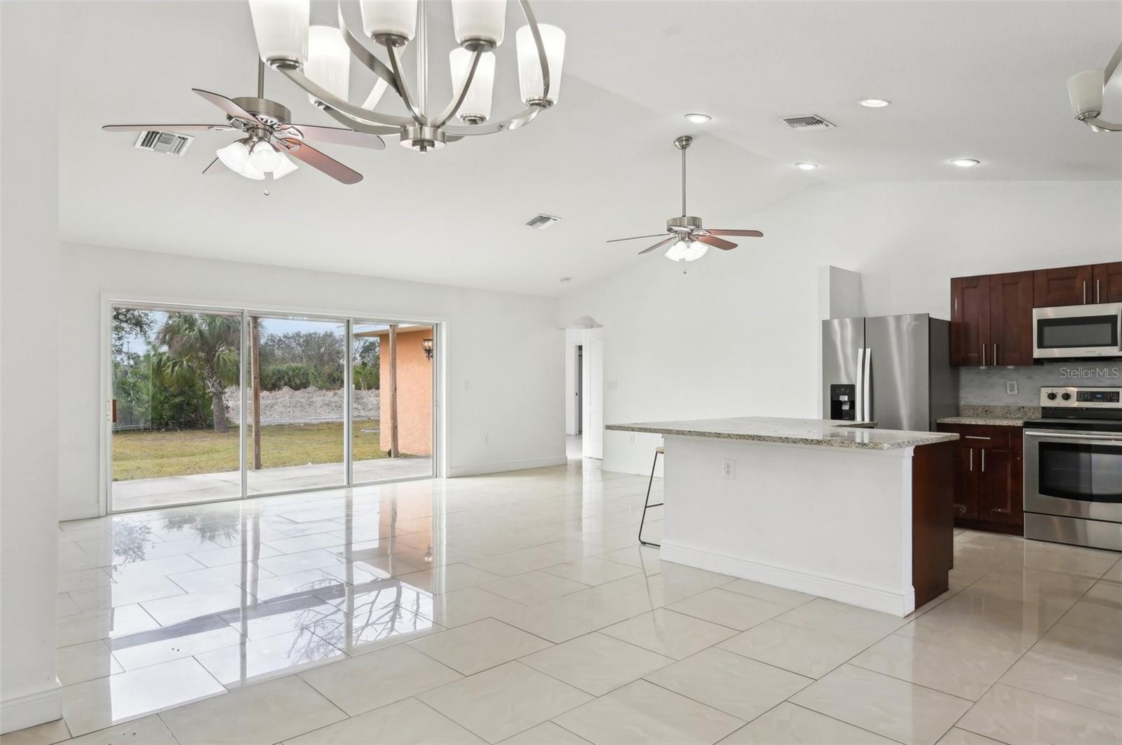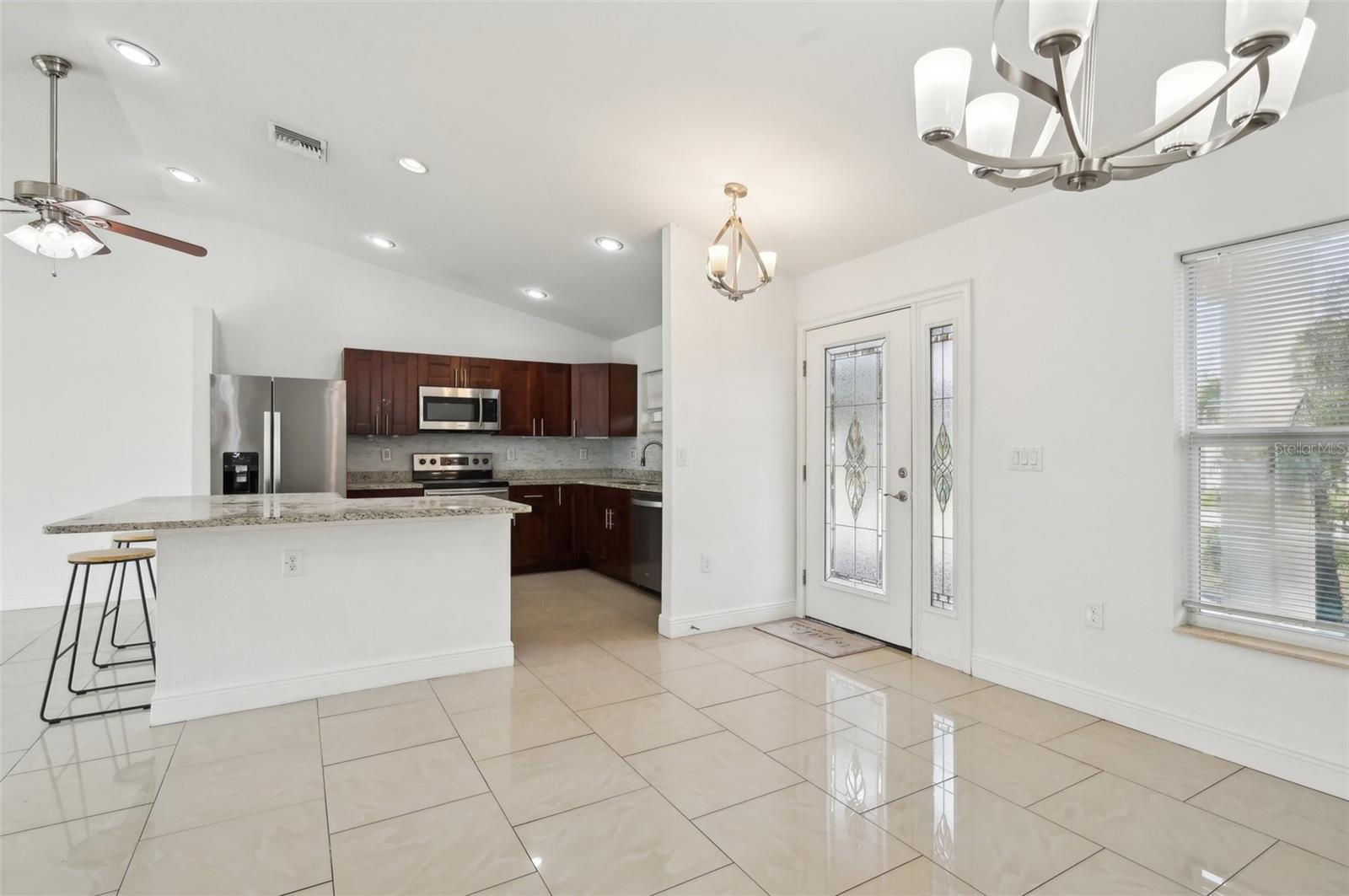 Perfect opportunity to own this 3-bedroom 2-bathroom home with attached 2-car garage located on a quiet street in the much sought after South Gulf Cove boating community. Home has 1,614 square feet of living space with a sizeable backyard which is perfect to add your lanai with screened in swimming pool. As you step inside, you'll immediately notice the well-designed open/split floor plan, providing both privacy and functionality. The high ceilings throughout the home create an open and airy ambiance, enhancing the overall sense of spaciousness along with beautiful porcelain tile throughout living space and the 3-panel slider that opens to the back patio. The heart of the home is the kitchen area with stainless-steel appliances, granite countertops, solid wood cabinets with soft close hinges, breakfast bar and overlooks your dining room and family room. The primary bedroom is a true retreat, with two walk-in closets and is complete with its own slider that open to the patio. The ensuite bathroom offers dual sink vanity with a granite countertop, and walk-in shower. The two additional bedrooms are generously sized and provide comfortable spaces for family members or guests. The second bathroom is located here ensuring everyone's needs are met. The laundry room has washer and dryer and accesses the garage with storage space, garage door opener and pull down attic. South Gulf Cove is a great boating community with optional annual HOA. Community boat ramp with access to 55 miles of canals plus Charlotte Harbor. Located just minutes away from Englewood and Boca Grande beaches, shopping, great restaurants, entertainment and if you are a golfer, Rotonda West is just around the corner, which offers 5 golf courses. Call today for your private showing.