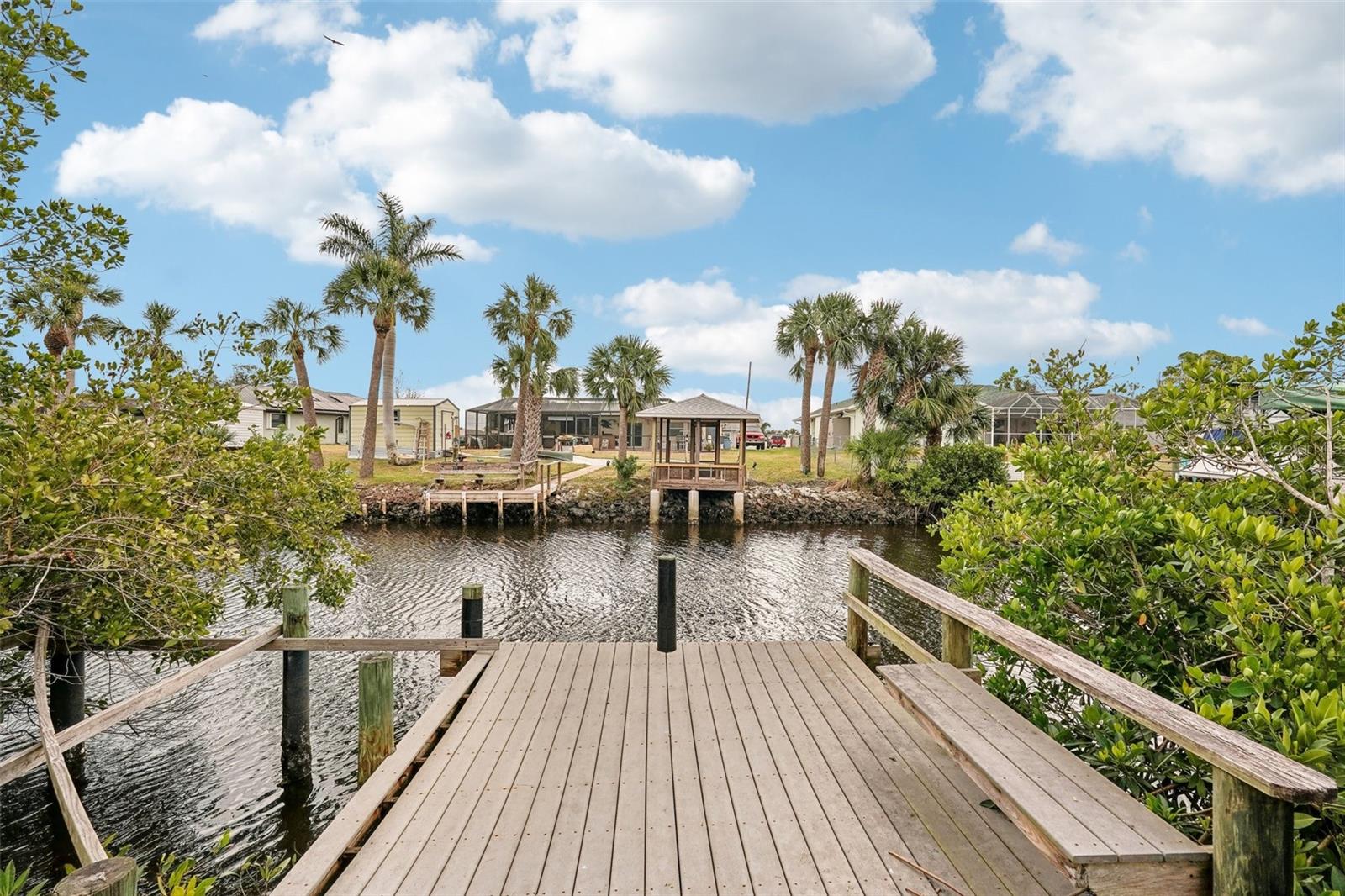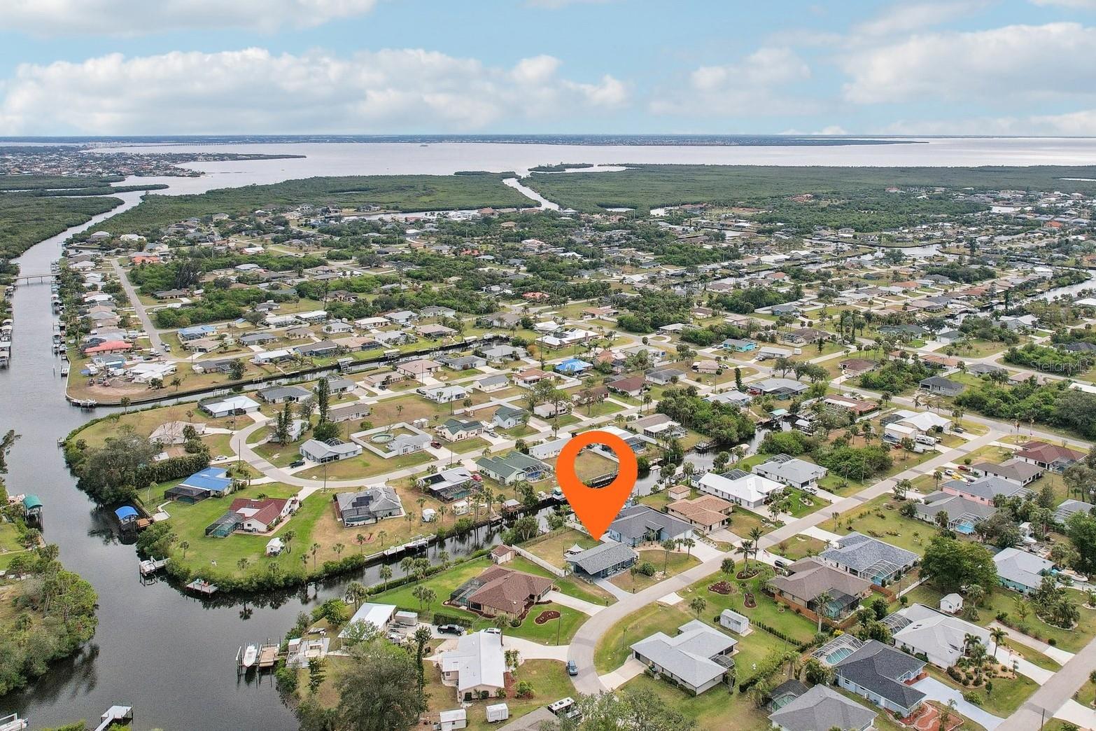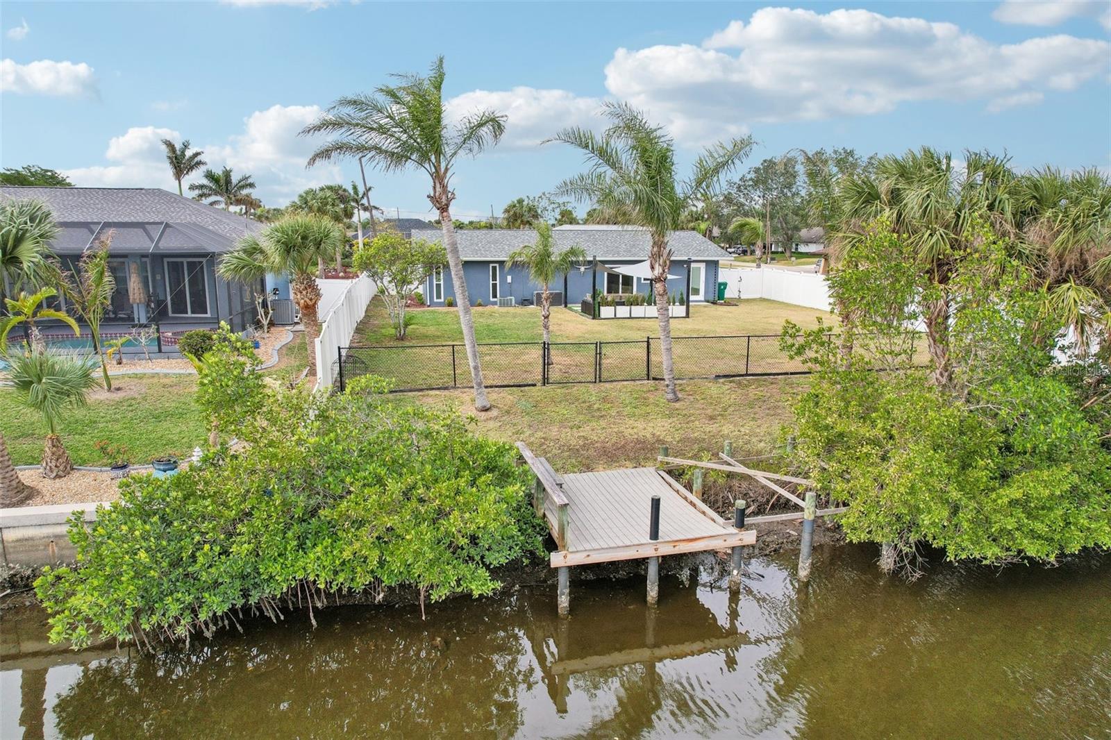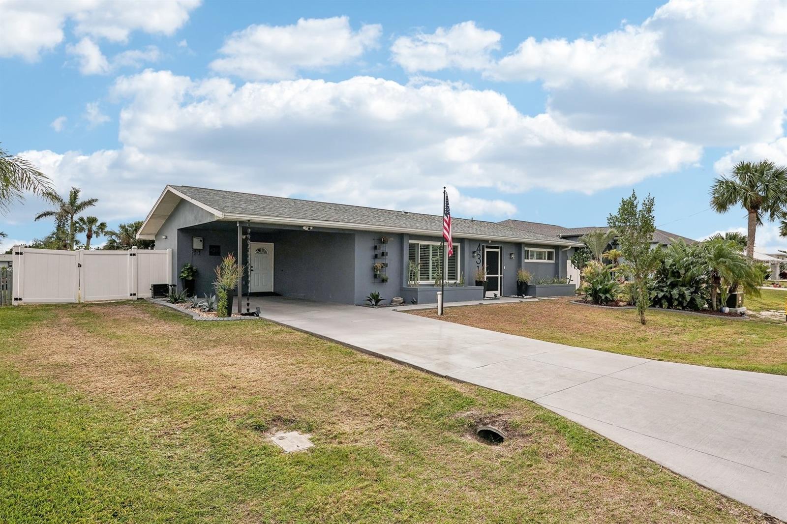 Explore this Updated 2-Bedroom, 2-Bath Waterfront Home, where one bridge is all that separates you from the vast expanse of Charlotte Harbor and the Gulf of America. Ideal for those who live for the water, this property includes a private dock for your boating and fishing pleasures. The home stands out with its Impact-Resistant Low-E Windows and Slider, ensuring safety and energy savings. A durable 50-Year Roof was installed in 2023, while inside, there's no carpet in sight—just Hardwood Floors and Tile throughout for easy maintenance and style. The bathrooms shine with Marble Countertops, Subway Tile shower, and a Luxurious Rainfall Showerhead in the master suite. LED lighting with night light functionality adds to the modern convenience. Functional upgrades include overhead PEX Plumbing in 2023, a 2021 electrical panel, Waterdrop Reverse Osmosis system for high quality H20, and a Tankless On-Demand Water Heater for endless hot water. The addition of Matte Black Fixtures and Hardware, Plantation Shutters combined with Solid Core Doors in guest bedroom and bathroom, elevates the home's aesthetic. Smart tech includes a Google Nest thermostat, video doorbell and flood lights with security cameras, ensuring peace of mind. The backyard, vast enough to add a pool, features a Contemporary Rear Patio that is both functional and stylish, infusing the home with a vibe of relaxation and outdoor living. It's ideal for gatherings, dining, or simply soaking in the outdoors in comfort. The Updated Laundry Room doubles as an office, adding versatility to the space. This home not only withstood recent hurricanes without flooding but also offers privacy with Front Plantation Shutters and a Vinyl Fence. It's the Most Affordable Waterfront Option, combining practicality with contemporary upgrades. Don't miss out on this unique opportunity to embrace waterfront living —schedule your showing today.
