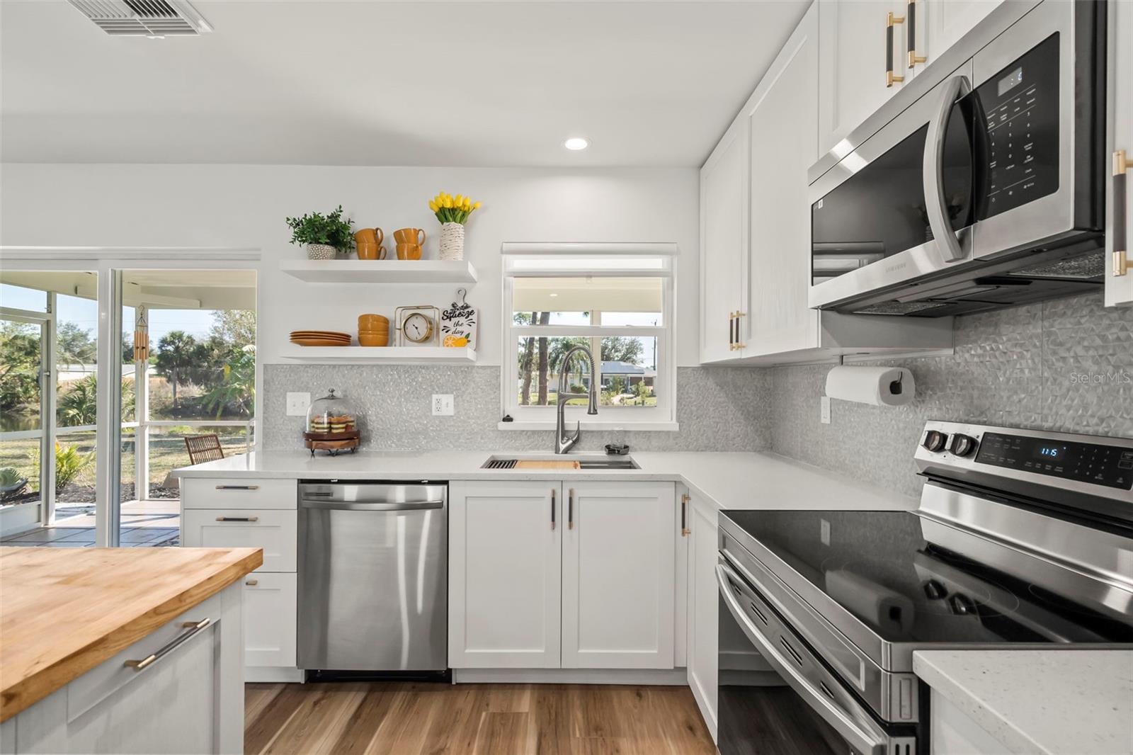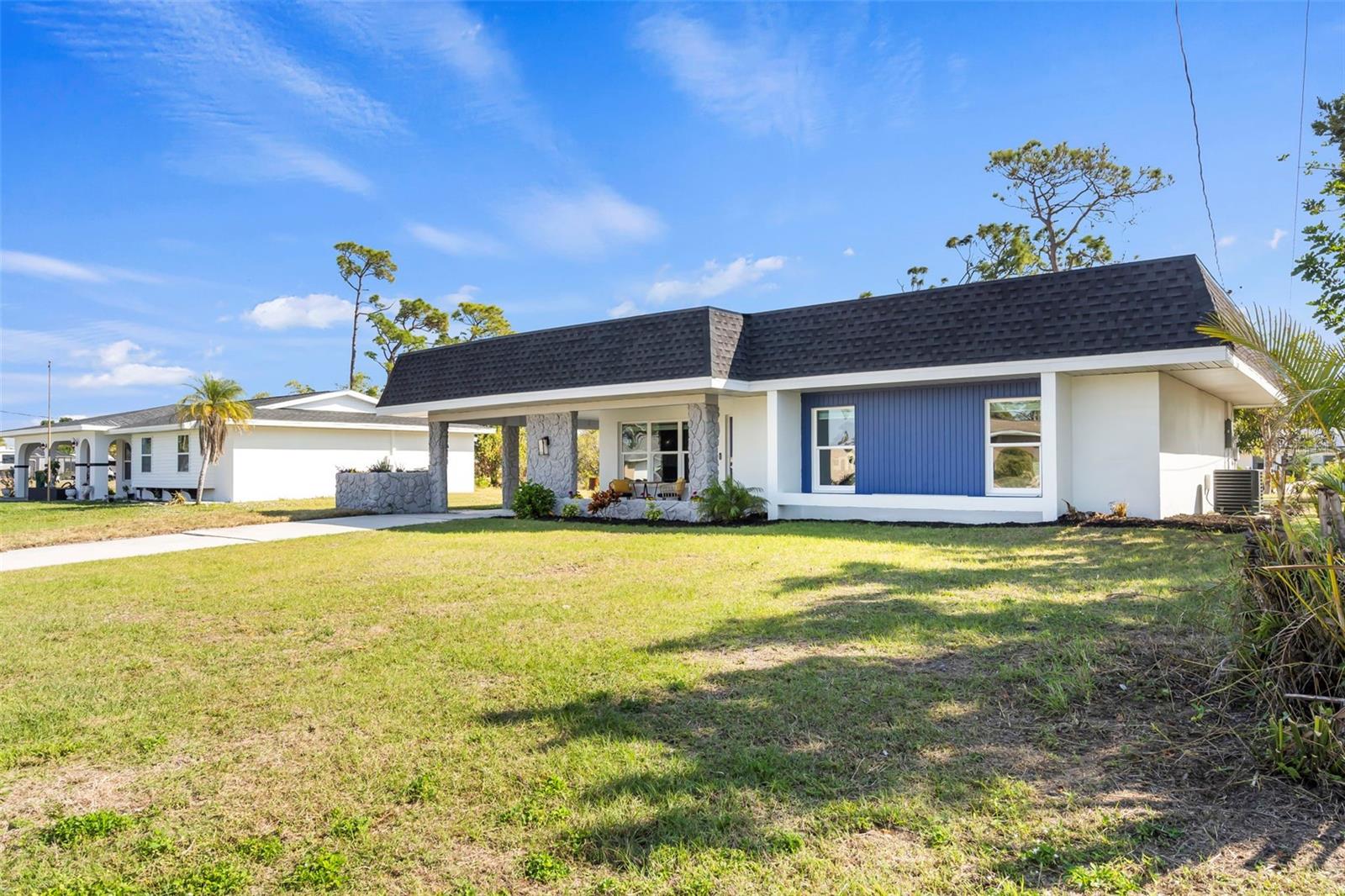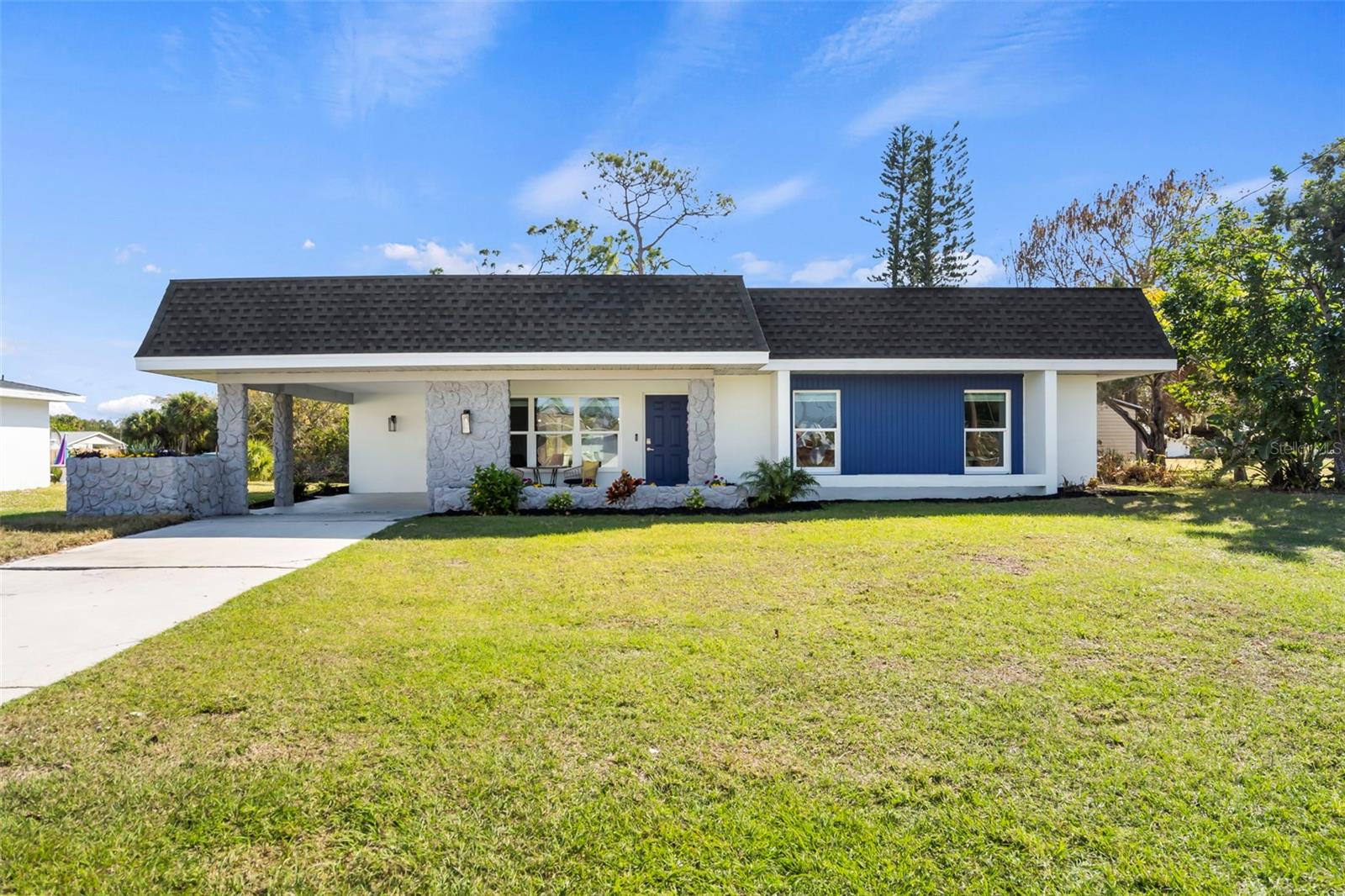 Great Price Reduction! WARM & SUNNY MOVE-IN READY MID-CENTURY MODERN WATERFRONT HOME – FULLY UPDATED & FURNISHED! This beautifully updated home is located in a terrific neighborhood just minutes from the beach and offers the perfect blend of modern updates and timeless charm in warm and sunny Southwest Florida. Major NEW infrastructure updates include NEW Roof, NEW Impact Windows & Doors, NEW Air Conditioner, NEW Electrical Service Panel, NEW Fascia & Soffits, and NEW Exterior Paint, ensuring a worry-free move-in experience. Inside, the light and bright open floor plan creates a comfortable and inviting atmosphere. The spacious open-concept living area features a sleek electric fireplace with a built-in space for a 70” screen TV, making it the perfect space to relax or entertain. Throughout the home, you'll find a fully repainted interior, resurfaced smooth ceilings, new light fixtures, updated interior doors & hardware, luxury vinyl plank flooring, and fully remodeled bathrooms with high-end finishes. The fantastic chef’s kitchen boasts high-end stainless-steel appliances, quartz countertops, custom wood cabinetry, a butcher block island, and extra counter space, making the Great Room a favorite gathering spot. Additional conveniences include a spacious indoor laundry room, great closet space in all three bedrooms, and an oversized carport for extra storage and parking. No HOA so you can store your RV or Boat at the house. The open-concept living extends outdoors to a large covered & screened lanai, where you can enjoy the beauty of nature, lush trees, Florida water birds, jumping fish, soaring ospreys, and stunning morning sunrises—all while overlooking the expansive backyard and fresh water canal. The tropical, oversized yard features multiple fruit trees, including bananas, and freshly mulched landscaping beds, creating a beautiful yet low-maintenance outdoor space. At the end of the day, unwind and take-in breathtaking sunsets from your cozy front porch. Located in a fantastic neighborhood, this home offers easy access to shopping, schools, restaurants, beaches, golf, medical facilities, I-75, and all area airports. Don’t miss this opportunity to live like you're on vacation every day!