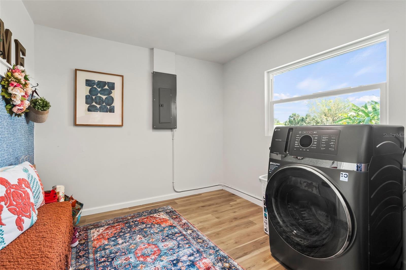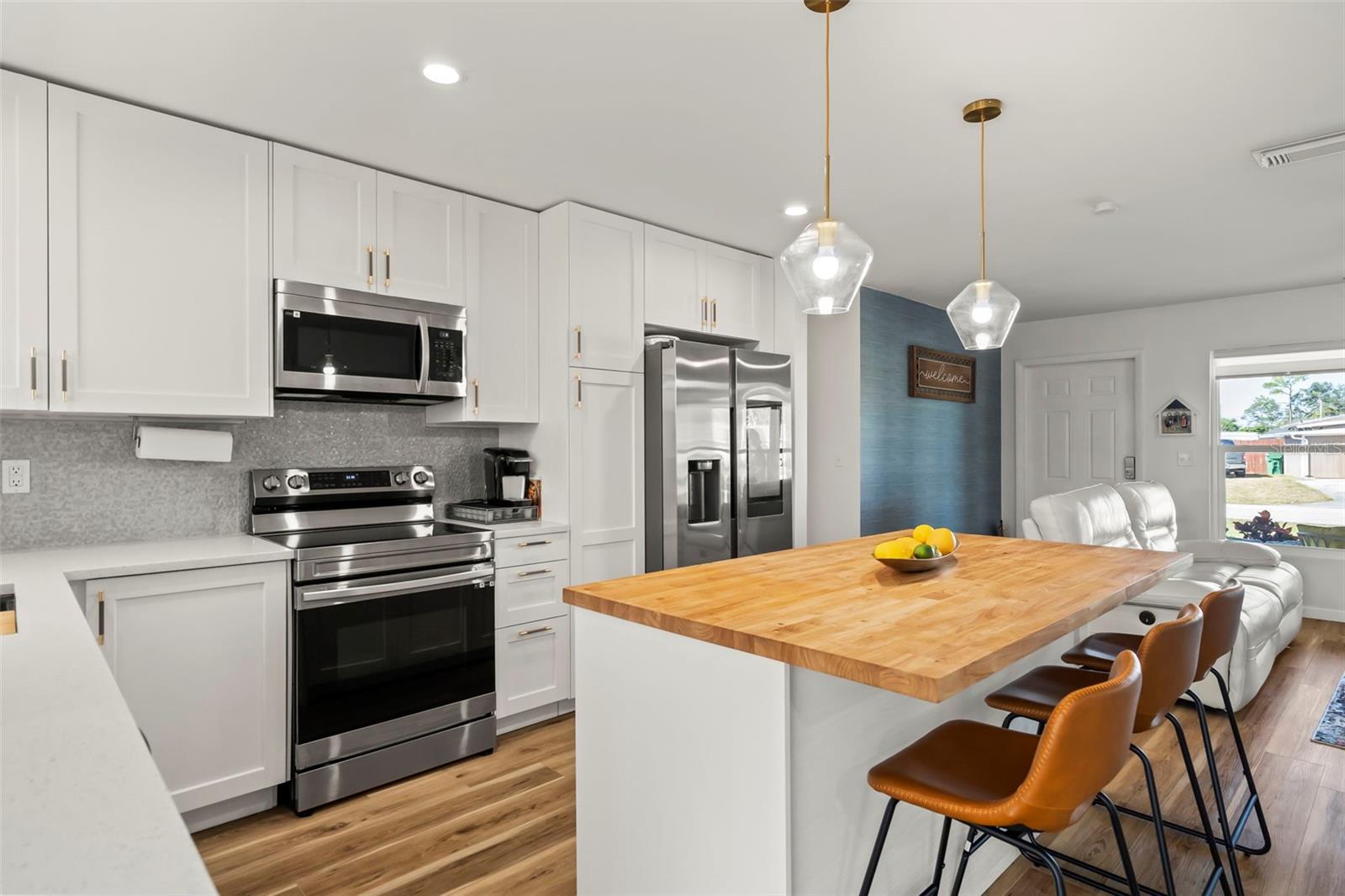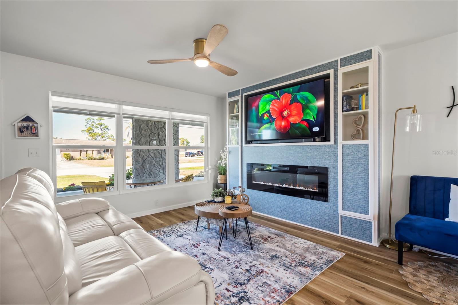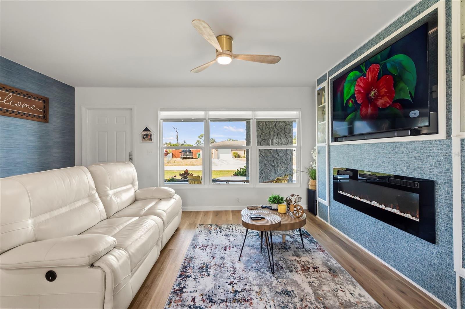 Great Price Reduction! WARM & SUNNY MOVE-IN READY MID-CENTURY MODERN WATERFRONT HOME – FULLY UPDATED & FURNISHED! This beautifully updated home is located in a terrific neighborhood just minutes from the beach and offers the perfect blend of modern updates and timeless charm in warm and sunny Southwest Florida. Major NEW infrastructure updates include NEW Roof, NEW Impact Windows & Doors, NEW Air Conditioner, NEW Electrical Service Panel, NEW Fascia & Soffits, and NEW Exterior Paint, ensuring a worry-free move-in experience. Inside, the light and bright open floor plan creates a comfortable and inviting atmosphere. The spacious open-concept living area features a sleek electric fireplace with a built-in space for a 70” screen TV, making it the perfect space to relax or entertain. Throughout the home, you'll find a fully repainted interior, resurfaced smooth ceilings, new light fixtures, updated interior doors & hardware, luxury vinyl plank flooring, and fully remodeled bathrooms with high-end finishes. The fantastic chef’s kitchen boasts high-end stainless-steel appliances, quartz countertops, custom wood cabinetry, a butcher block island, and extra counter space, making the Great Room a favorite gathering spot. Additional conveniences include a spacious indoor laundry room, great closet space in all three bedrooms, and an oversized carport for extra storage and parking. No HOA so you can store your RV or Boat at the house. The open-concept living extends outdoors to a large covered & screened lanai, where you can enjoy the beauty of nature, lush trees, Florida water birds, jumping fish, soaring ospreys, and stunning morning sunrises—all while overlooking the expansive backyard and fresh water canal. The tropical, oversized yard features multiple fruit trees, including bananas, and freshly mulched landscaping beds, creating a beautiful yet low-maintenance outdoor space. At the end of the day, unwind and take-in breathtaking sunsets from your cozy front porch. Located in a fantastic neighborhood, this home offers easy access to shopping, schools, restaurants, beaches, golf, medical facilities, I-75, and all area airports. Don’t miss this opportunity to live like you're on vacation every day!