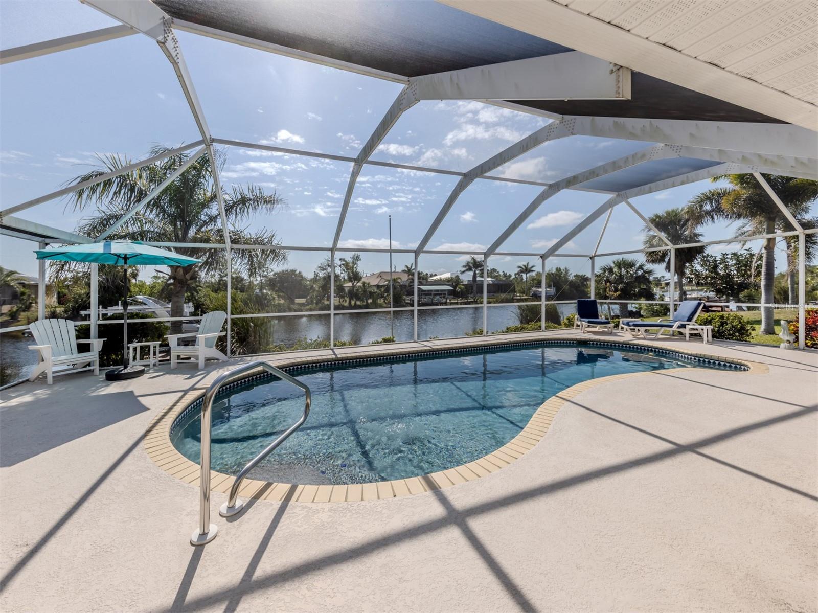 Charming waterfront home in the great location of beautiful South Gulf Cove. If you are looking for a well-cared-for pool home where you can have your boat at your dock, this is a great opportunity. Look no further! This three-bedroom, 2.5-bath home is waiting for you to call it home, boasting almost 2,200 square feet of living space. This oversized homesite offers stunning water views and features 154 feet of canal frontage. Sliding glass doors opening to the lanai make the most of Florida living and bring in the outside. Loads of natural light flow in and a beautiful view of the canal and covered area of the lanai gives a nice place to relax from the sun or rain. Plenty of room on the lanai for a dining table and lounge chairs make this a place for entertaining your guests. You can just sit by the large pool, watching the morning sun rise over the canal as wildlife passes you by. Inside the home, you’ll find the ideal great room floor plan featuring volume ceilings and amazing long-canal views. Dining, living and kitchen areas work together well, and all have easy access to the pool. Everyone can gather and all be together with this floor plan. Plenty of space for all. The kitchen features include wood cabinets, granite counters, breakfast bar and spacious laundry room adjacent to the kitchen for added convenience. This house comes with many recent updates. Some of these updates include a new roof, 10,000-pound boat lift, exterior painted, pool screens replaced, garage door screen and the list goes on. Quick boating access to the SGC Lagoon and then to Charlotte Harbor and Gulf of Mexico. You will love the convenience to historic Boca Grande, known for its beautiful beaches, shopping and dining. Medical facilities, grocery stores, restaurants and more are also within easy driving distance. South Gulf Cove offers a relaxed coastal lifestyle if you are seeking the ultimate Florida experience. Call today to schedule your private showing to see this beautiful home. You will be glad you did!