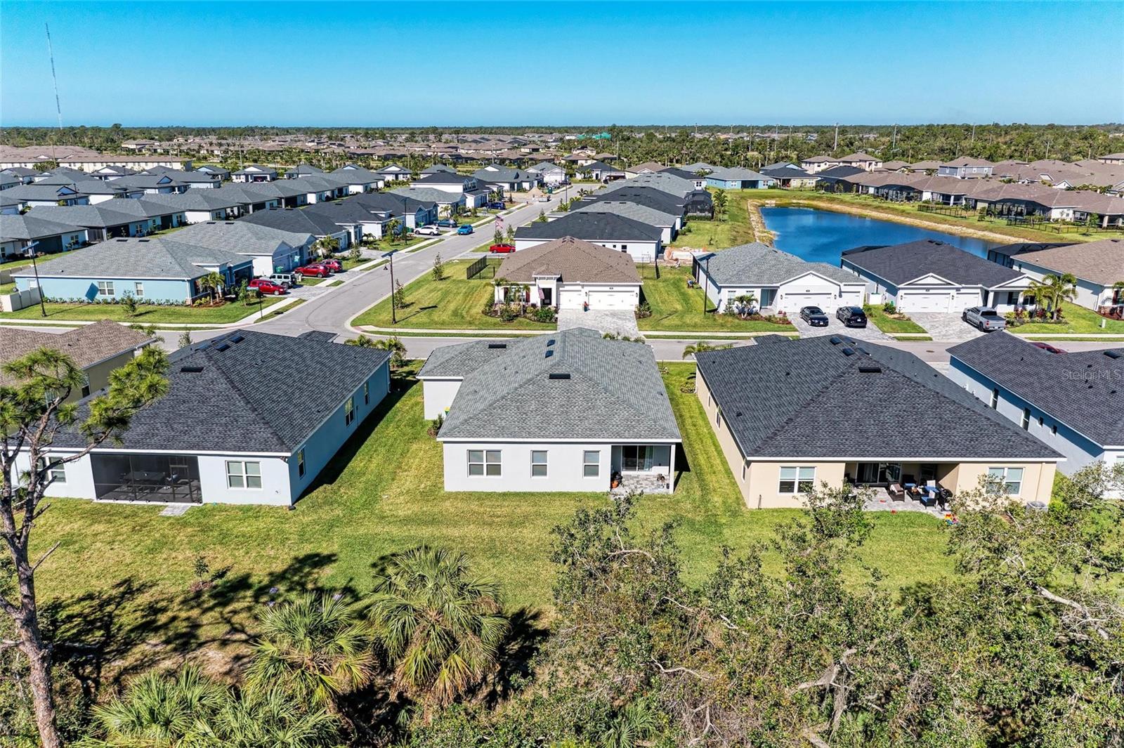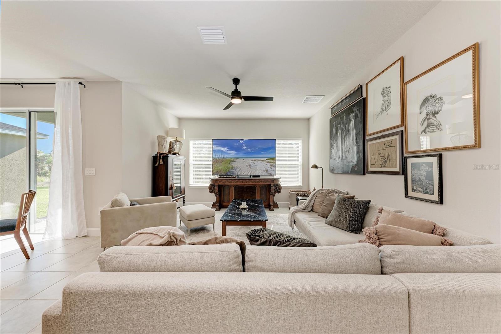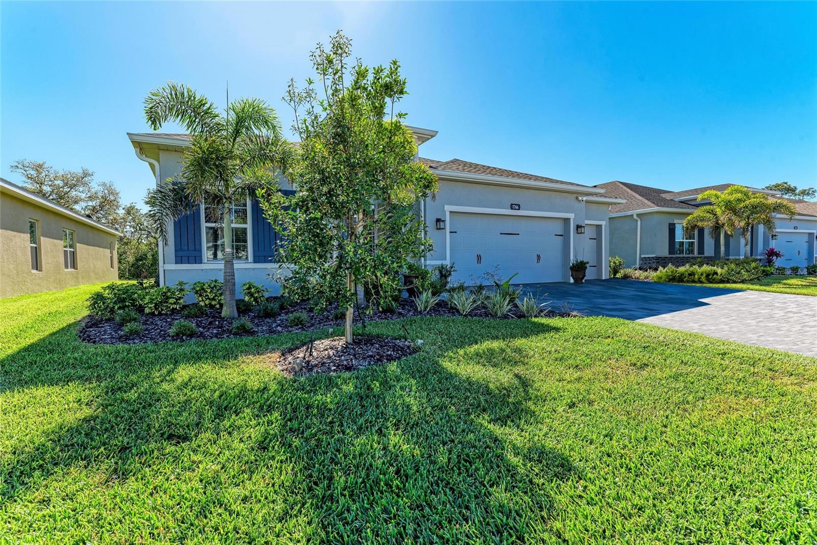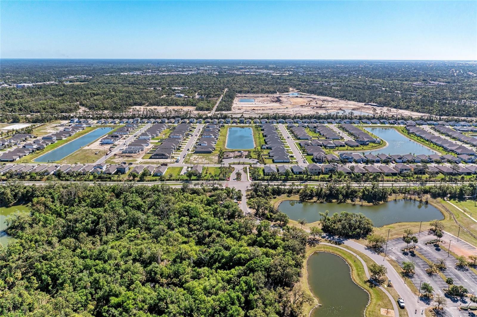 Welcome to this newly built Ryan model home, a perfect blend of modern design and relaxed Florida living in the sought-after West Port community. Constructed in 2024, this meticulously designed 3-bedroom, 2-bathroom residence with a 3-car garage offers all the advantages of new construction, paired with an inviting and functional layout. From the moment you arrive, the home's tasteful design is evident, featuring neutral colors, recessed lighting, and tile flooring throughout. The open-concept living, dining, and kitchen areas provide a seamless flow, all enhanced by recessed lighting for a bright and welcoming ambiance. The kitchen is equipped with modern appliances, including a Samsung refrigerator and a double oven, catering to all culinary needs. A spacious kitchen island adds additional seating and functionality, making it an ideal space for gatherings and everyday convenience. The adjacent dining area offers serene views of the backyard and direct access to the outdoors through sliding glass doors, allowing for effortless indoor-outdoor living. The primary bedroom serves as a tranquil retreat, featuring a generous walk-in closet and an en-suite bathroom with split vanities, ample cabinet space, above-mirror lighting, and a sleek walk-in shower. Two additional bedrooms provide plenty of space for family or guests, complete with upgraded closet storage for added convenience. A second full bathroom, mirroring the refined design of the primary bath, includes a double vanity and a tub with a shower. Additionally, a dedicated office space offers flexibility, easily adaptable to suit personal or professional needs. A separate laundry room, complete with a washer and dryer, enhances daily functionality, while the spacious three-car garage with an epoxy floor adds both modern appeal and practicality. At the back of the home, a covered and paved patio provides a peaceful outdoor space to relax and enjoy the surrounding tranquility. Adding to the appeal, this property is not in a flood zone and features a low HOA fee, offering both peace of mind and affordability. The location places Centennial Park and Recreation Center just minutes away, where residents can enjoy over 100 acres of outdoor and indoor activities, including a 50-meter competition lap pool, multi-purpose gymnasium with basketball and volleyball courts, pickleball, soccer fields, an 18-hole disc golf course, a fishing lake, playgrounds, and scenic nature trails. With Charlotte Harbor just a short drive away, along with nearby parks, shopping at Port Charlotte Town Center just three miles from home, and easy access to beautiful Gulf beaches, this exceptional property offers the perfect balance of convenience and embodies the best of Florida living.